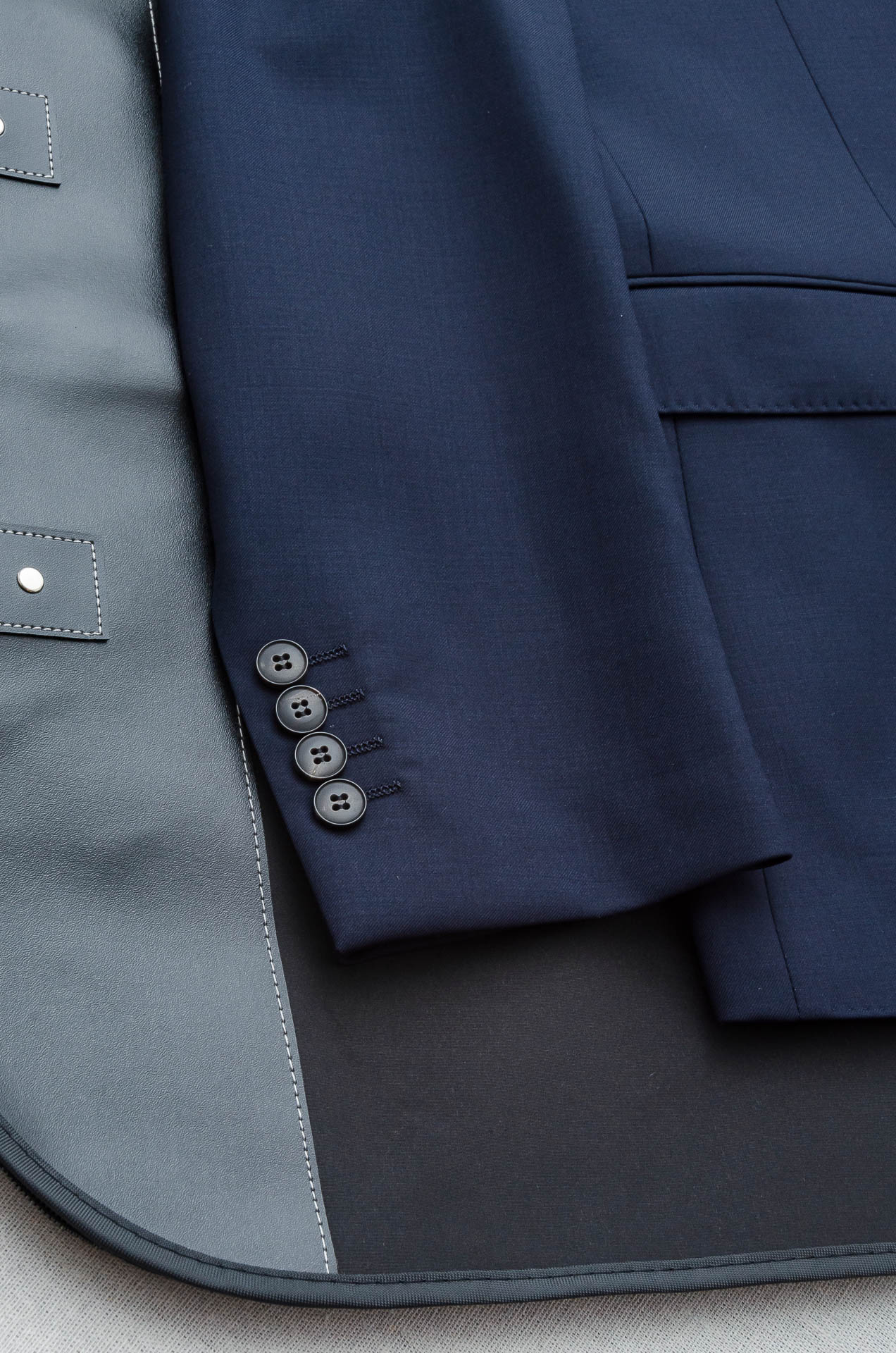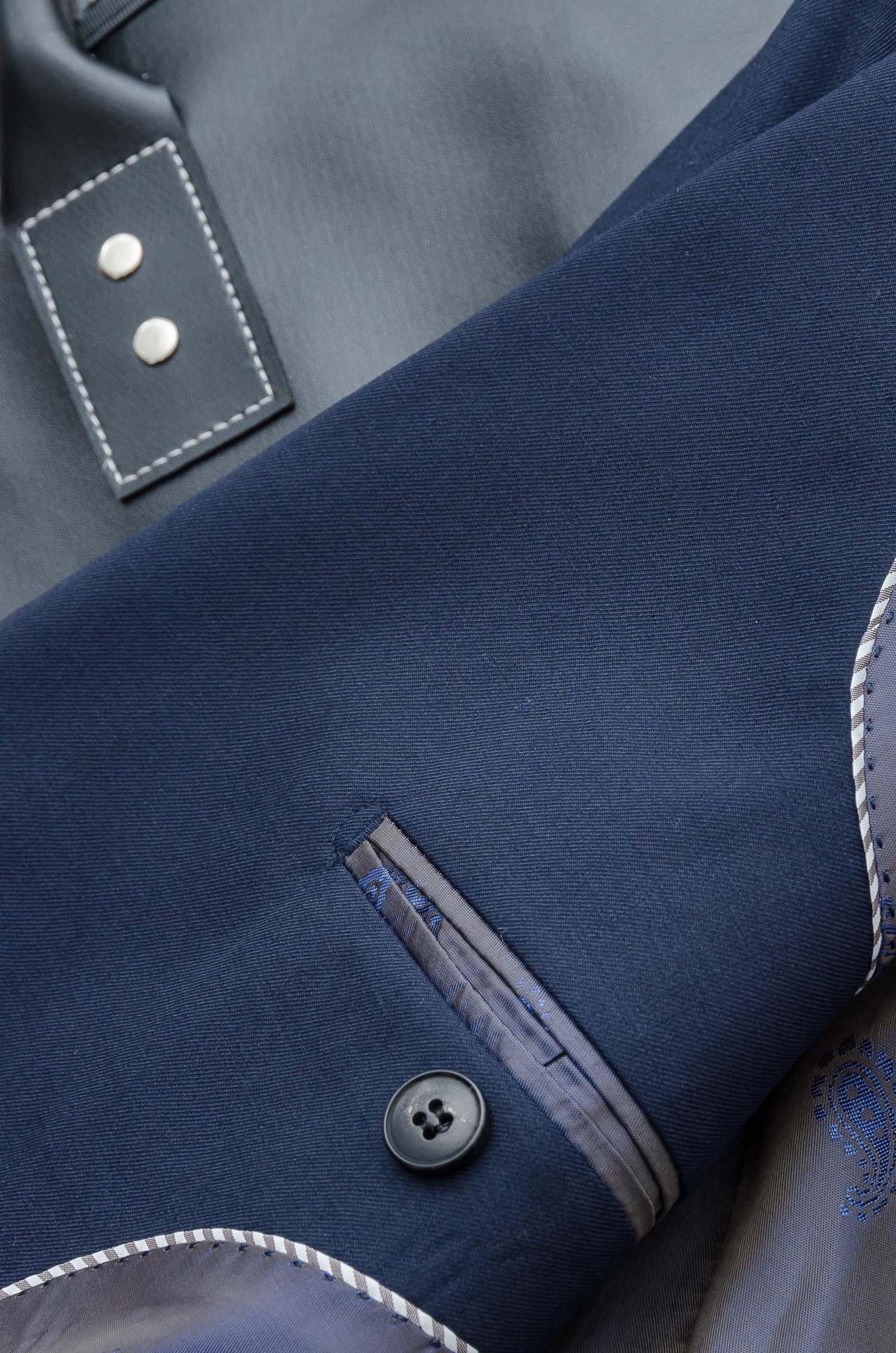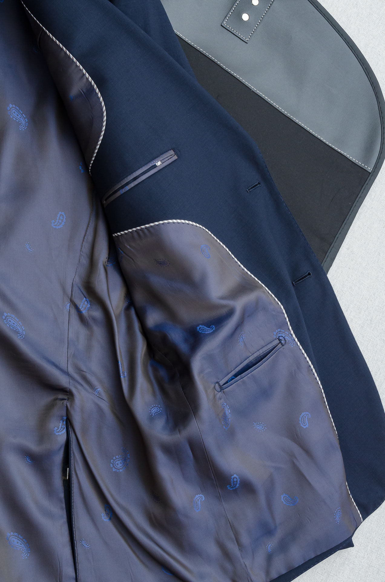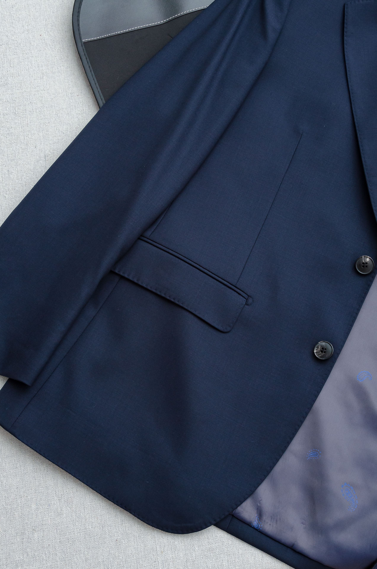 Details: Luxurious wool suit with a fine texture, a unique pattern, and a stylish design