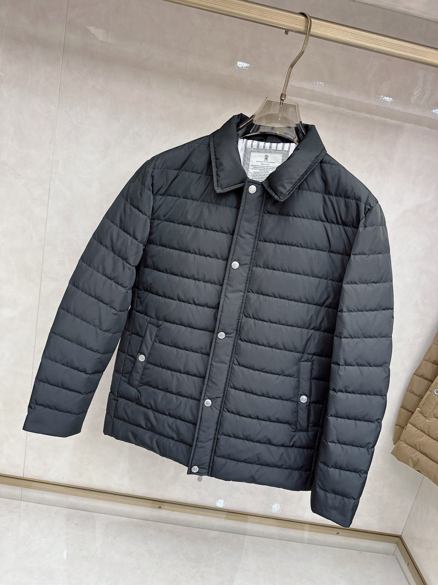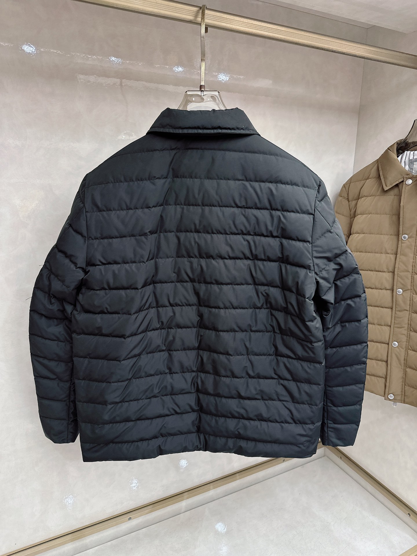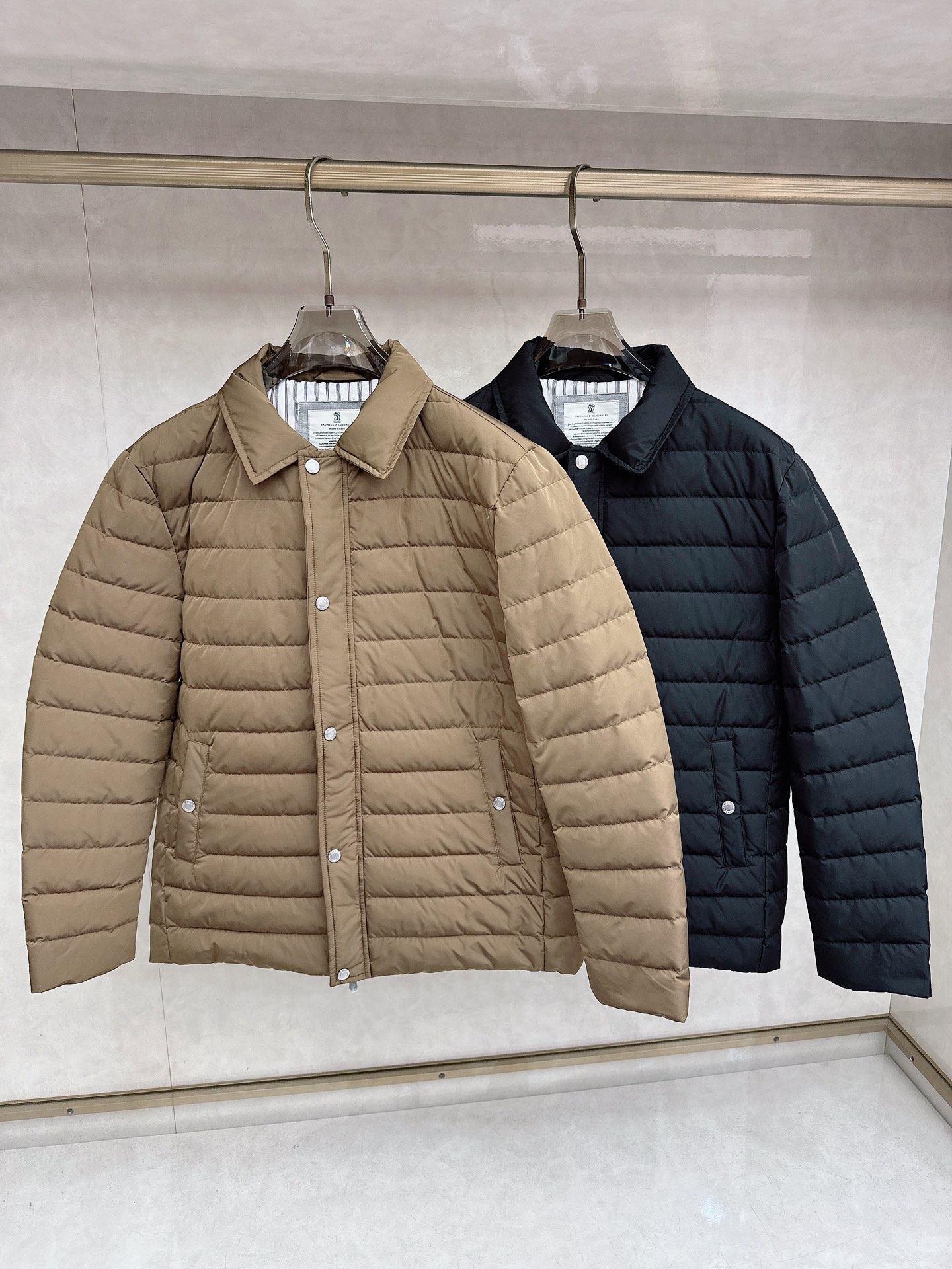 Details: Down Jacket: 90% Goose Down, Solid Fabric, Loose Fit, Available in Black and Brown