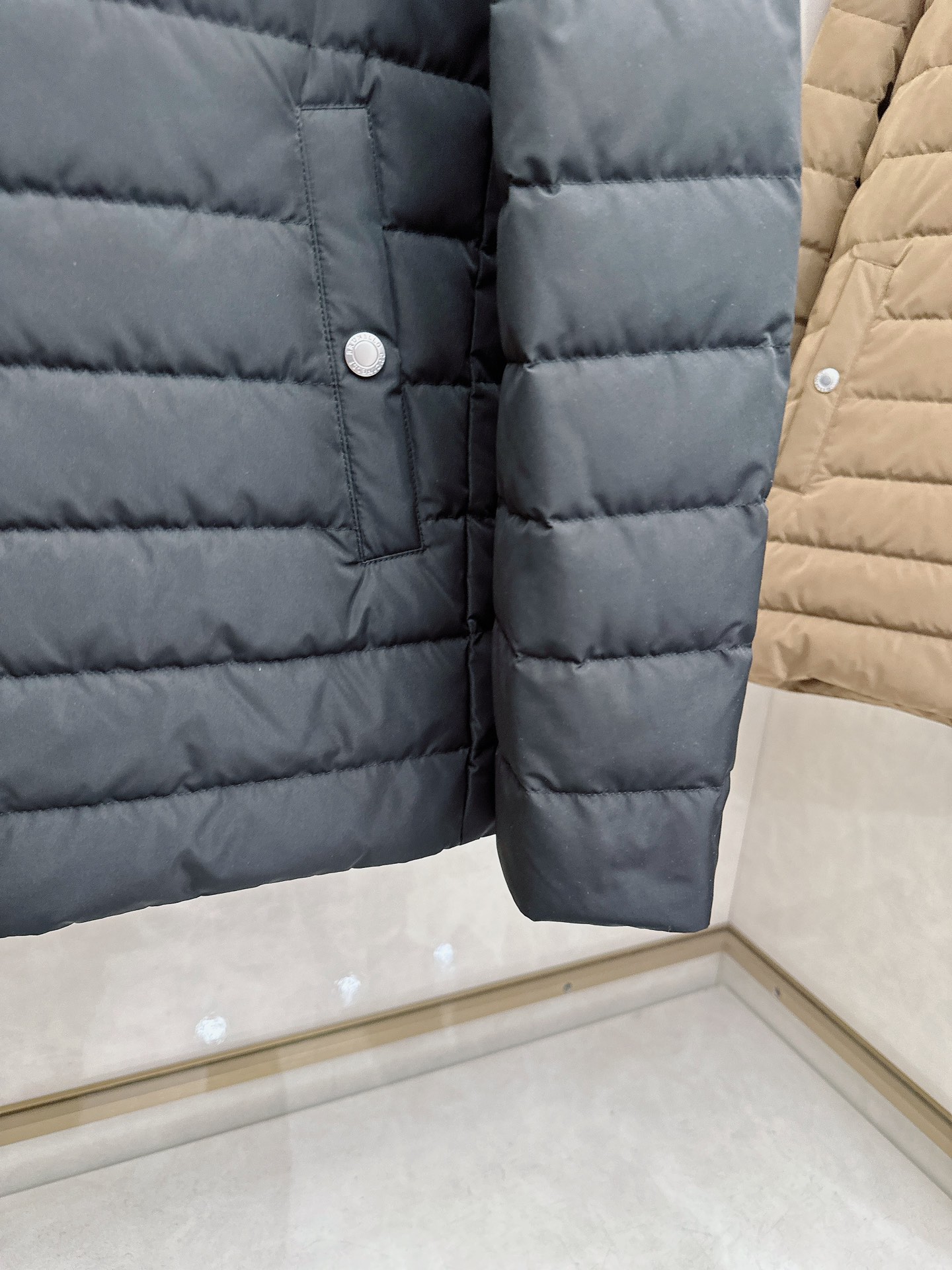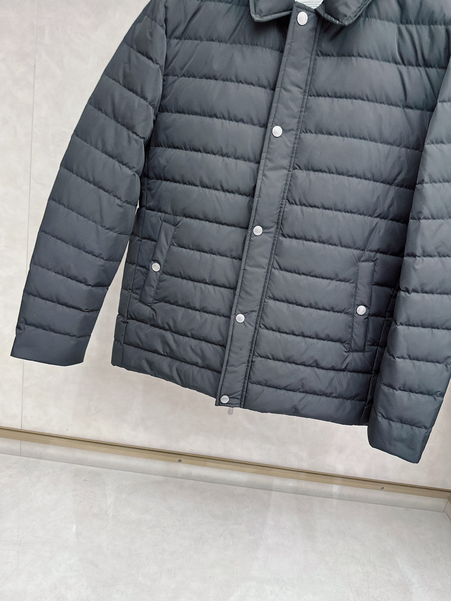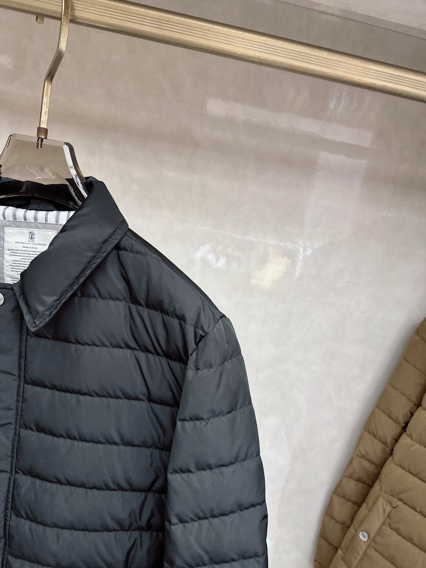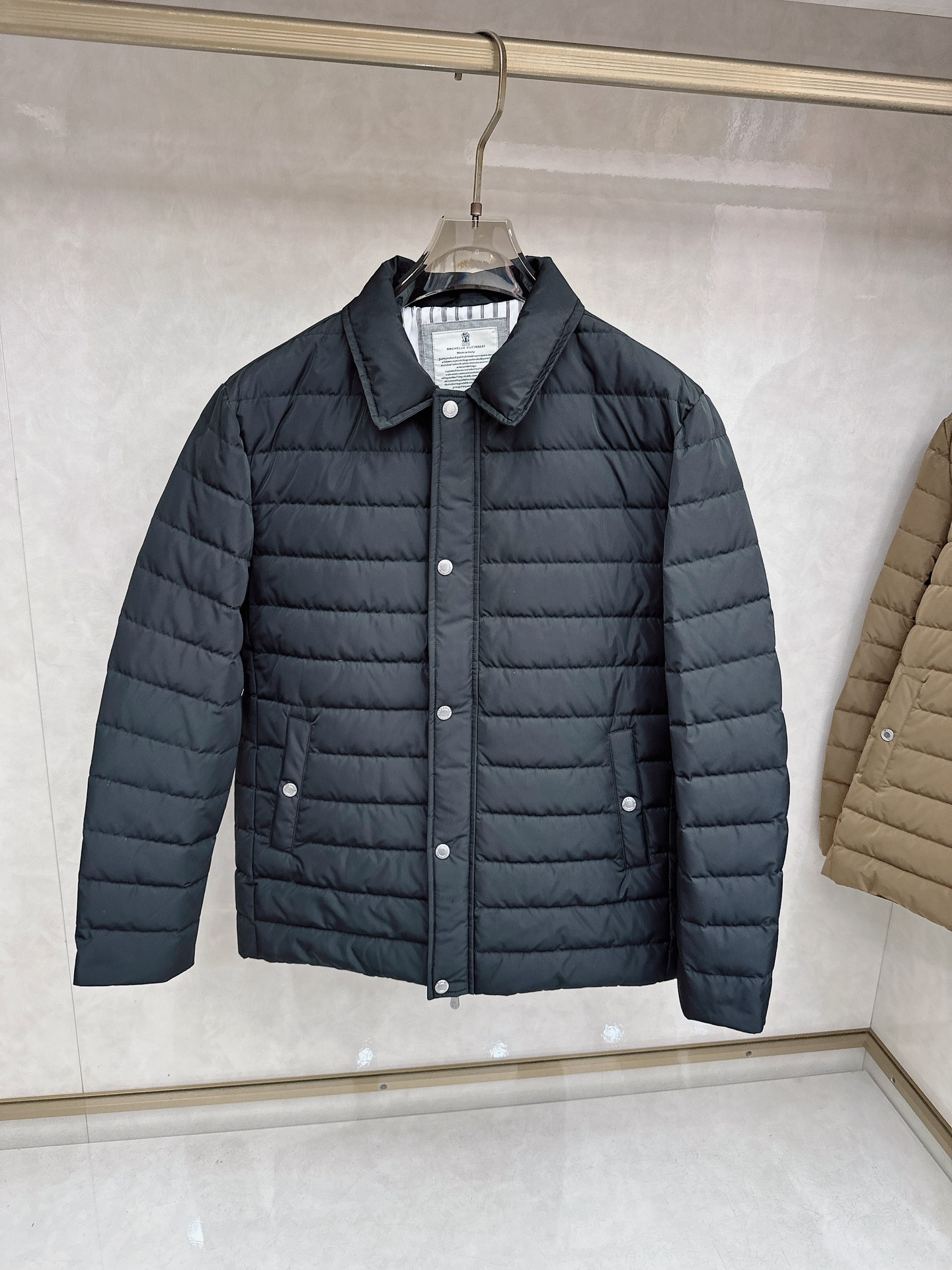 Details: Down Jacket: 90% Goose Down, Solid Fabric, Loose Fit, Available in Black and Brown