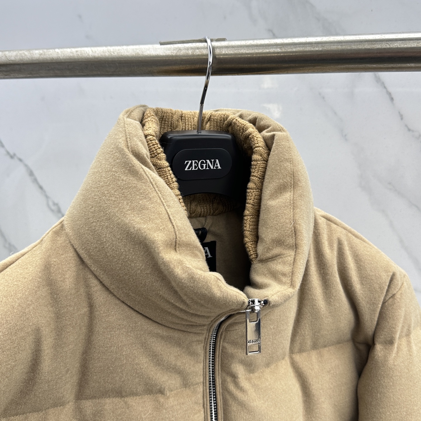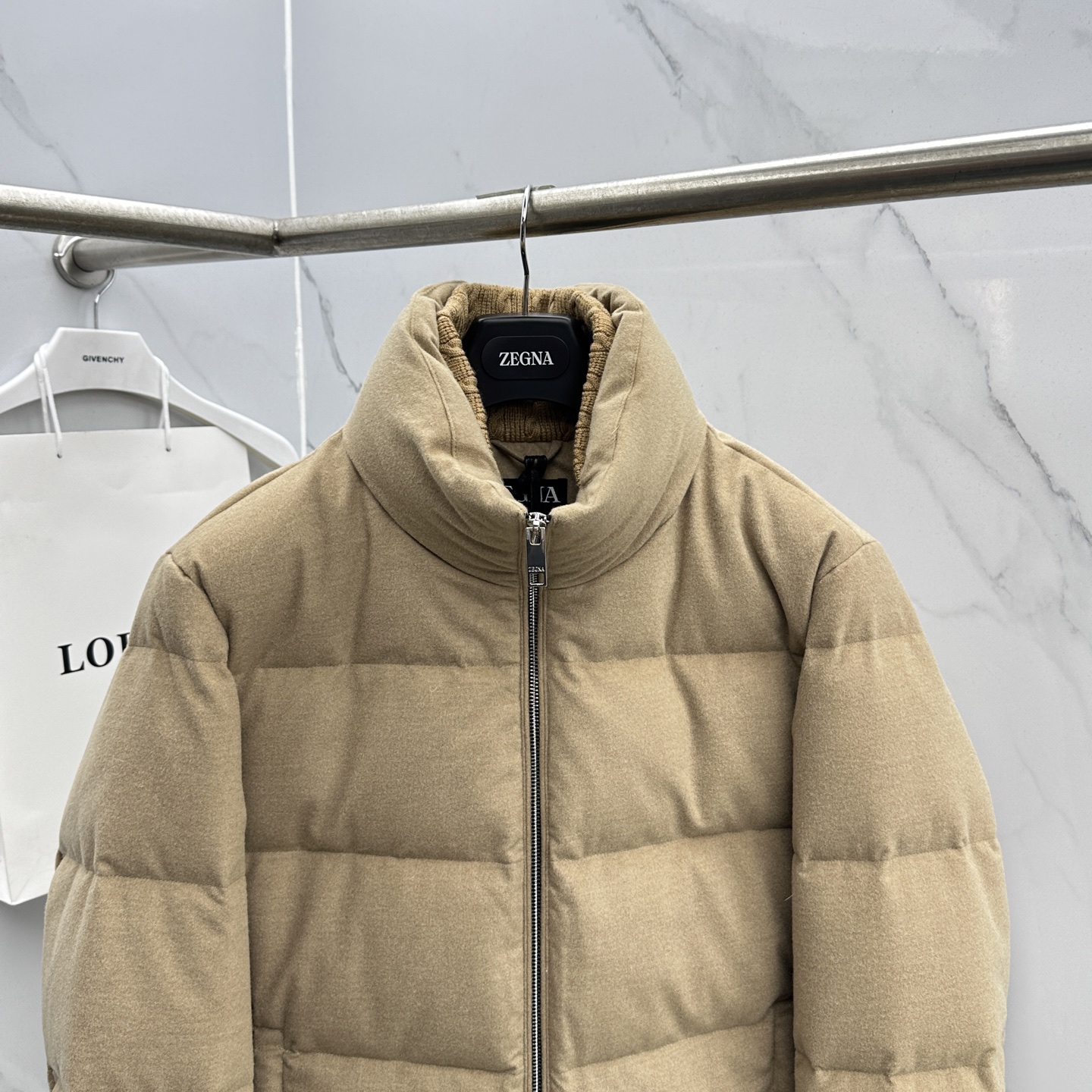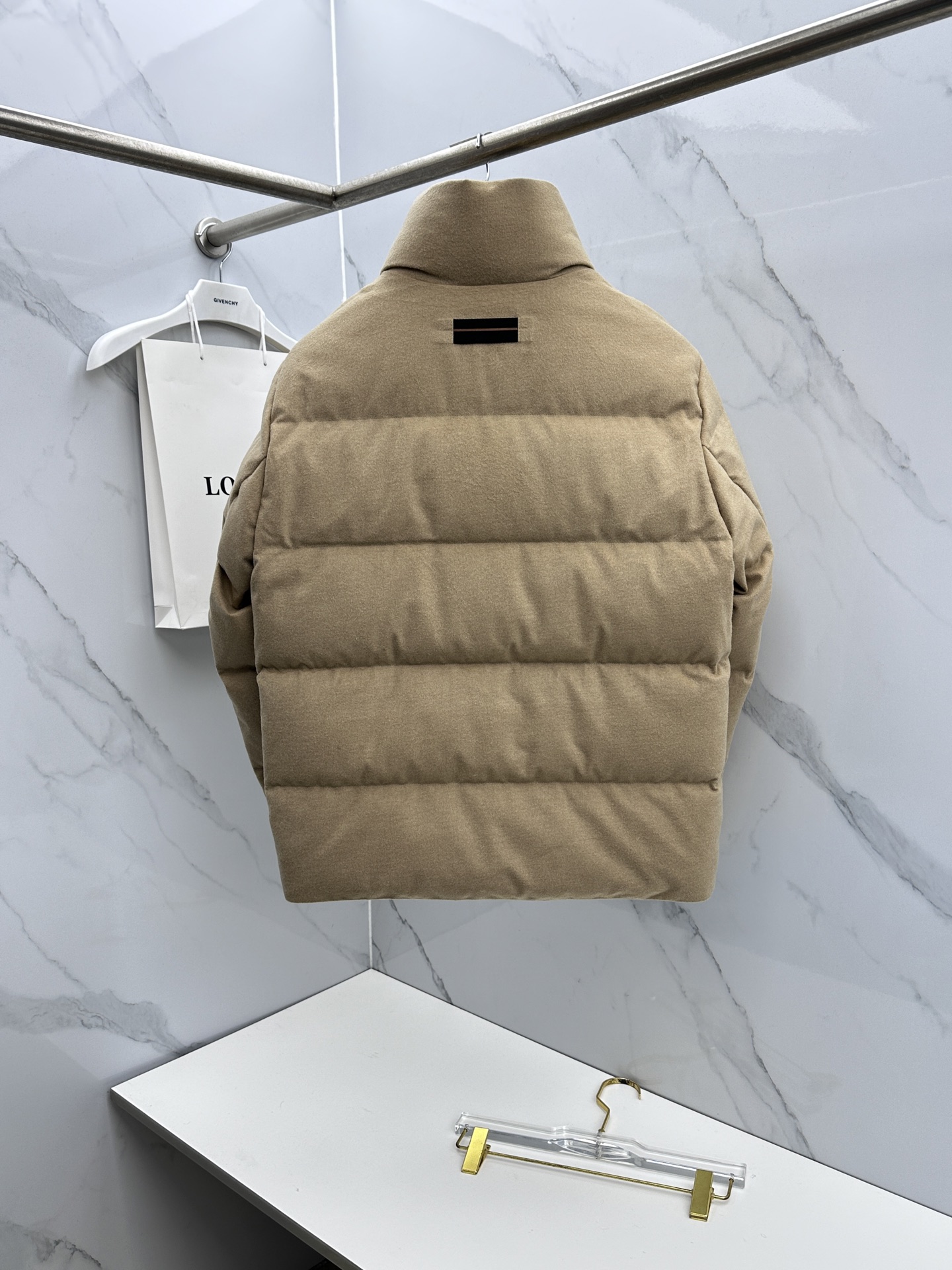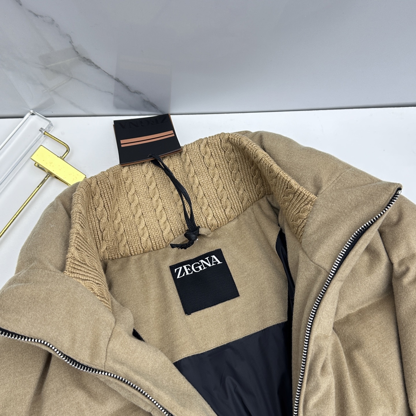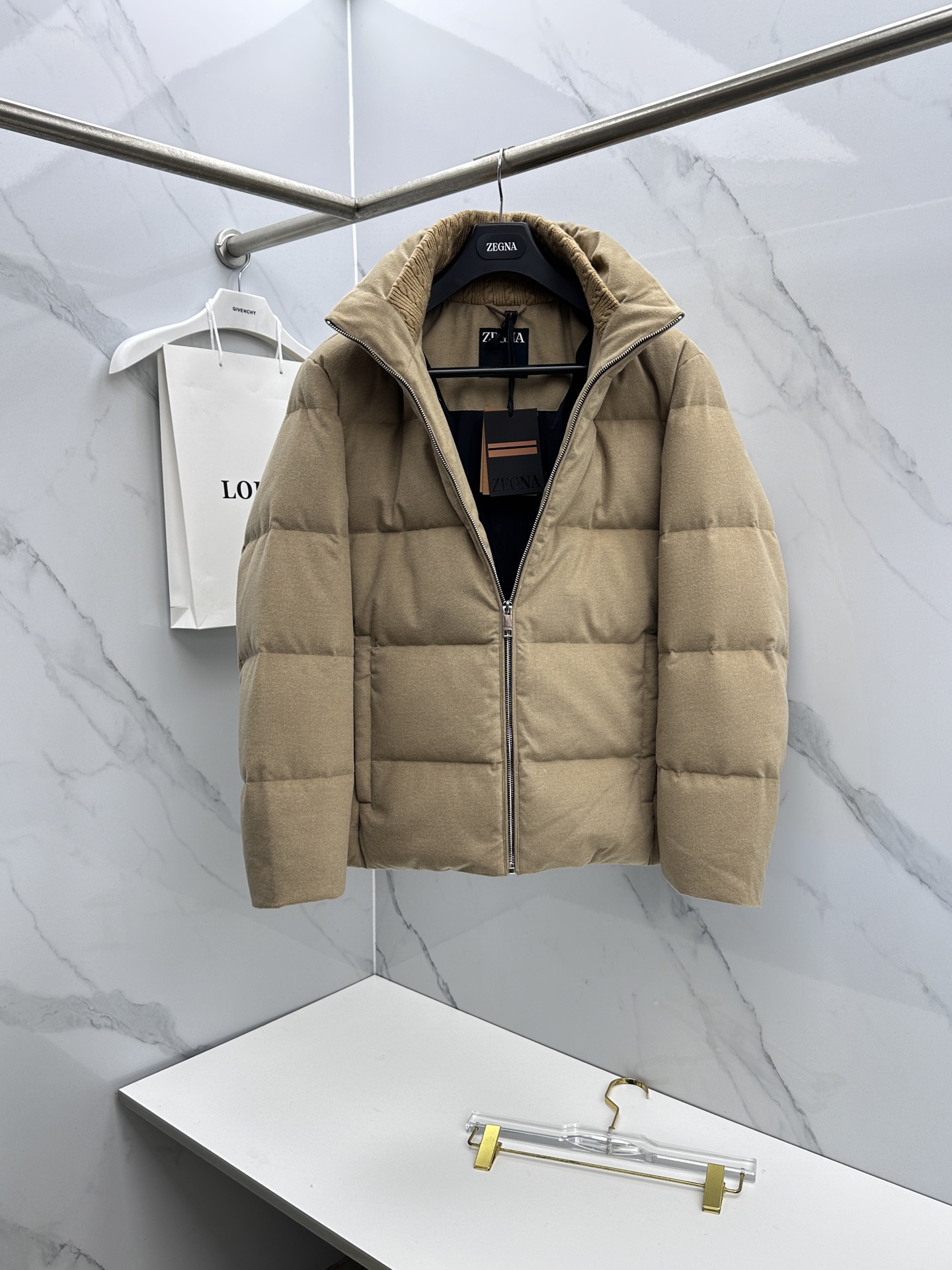 Details: Stylish stand-collar down jacket filled with 90% white duck down, expertly tailored