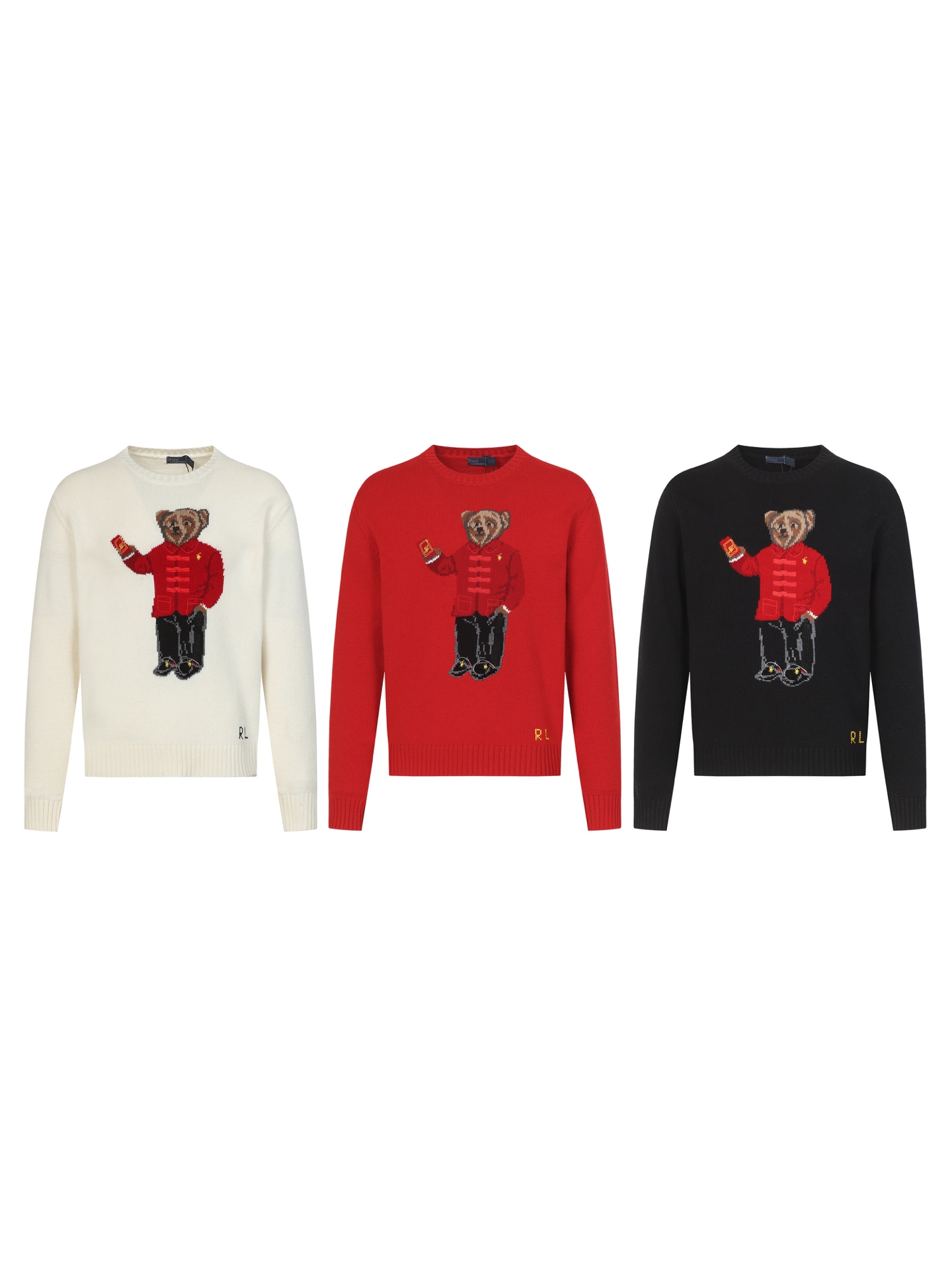 Details: Wool blend sweater with cute bear embroidery, classic round neck, versatile and festive