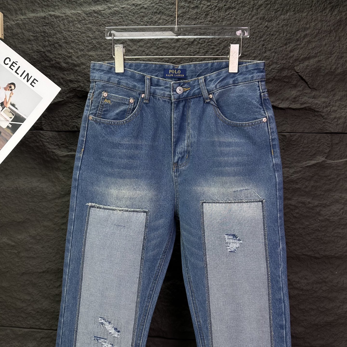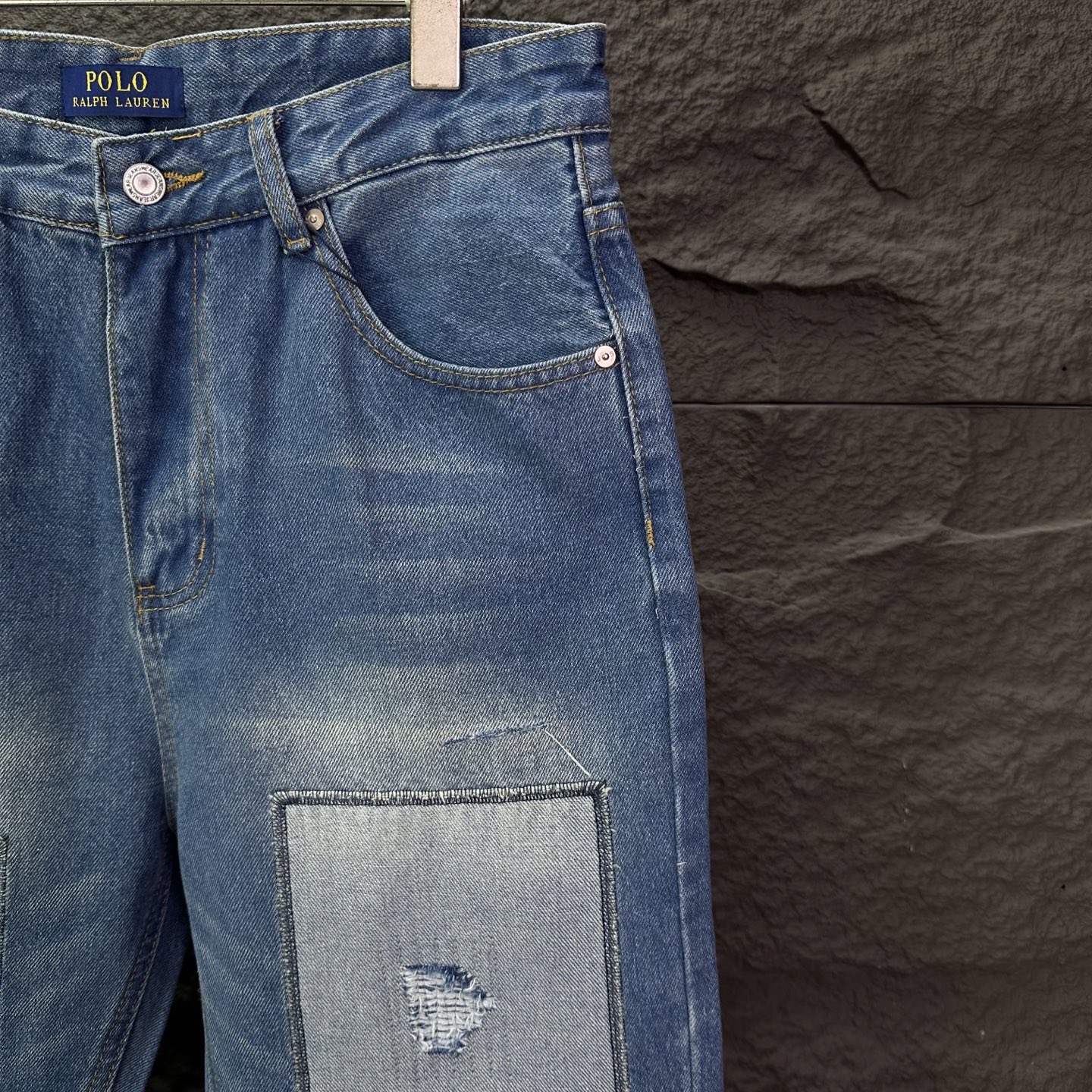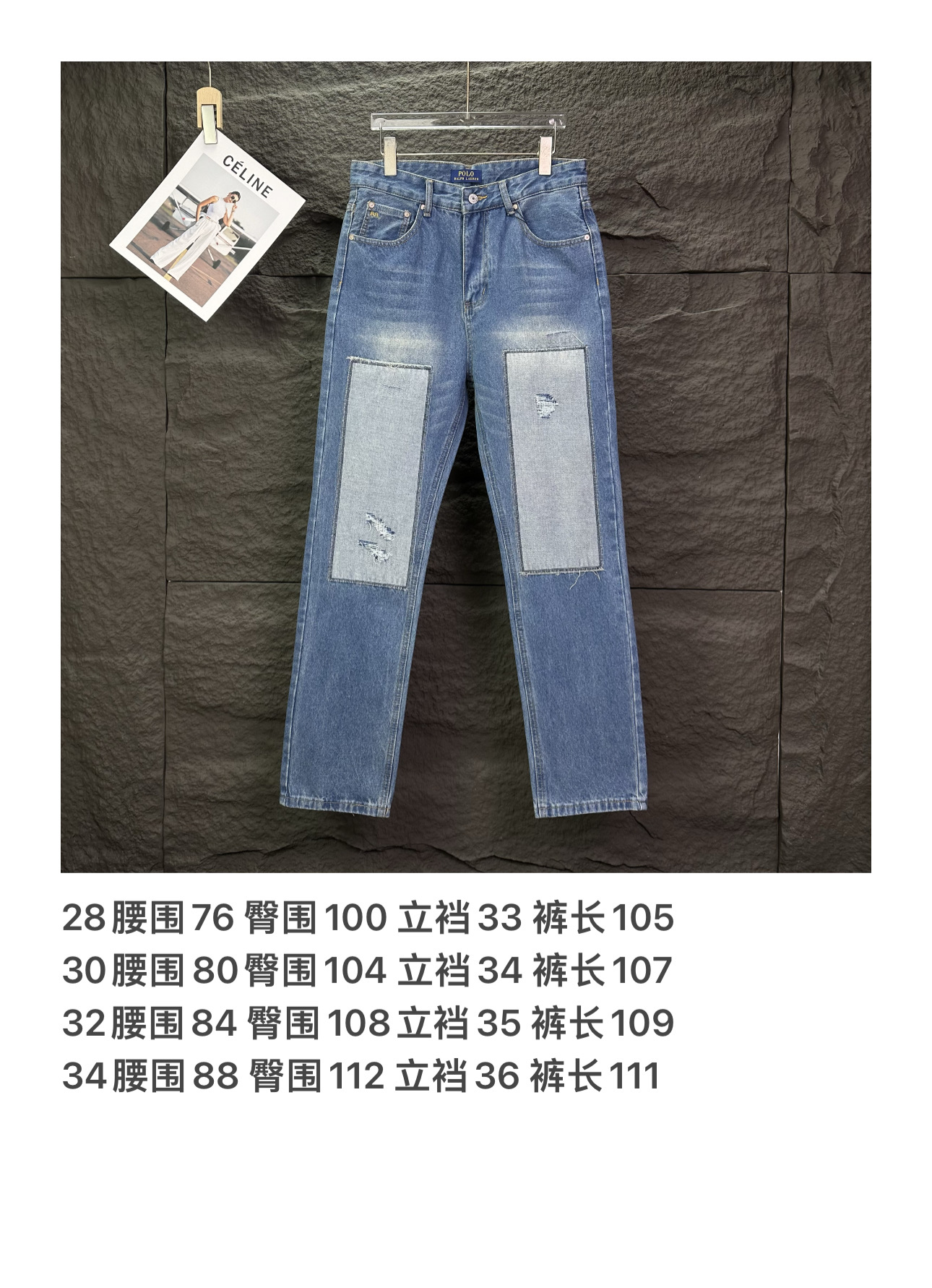 Details: New vintage distressed jeans with patchwork. Straight fit, versatile length, soft and textured fabric