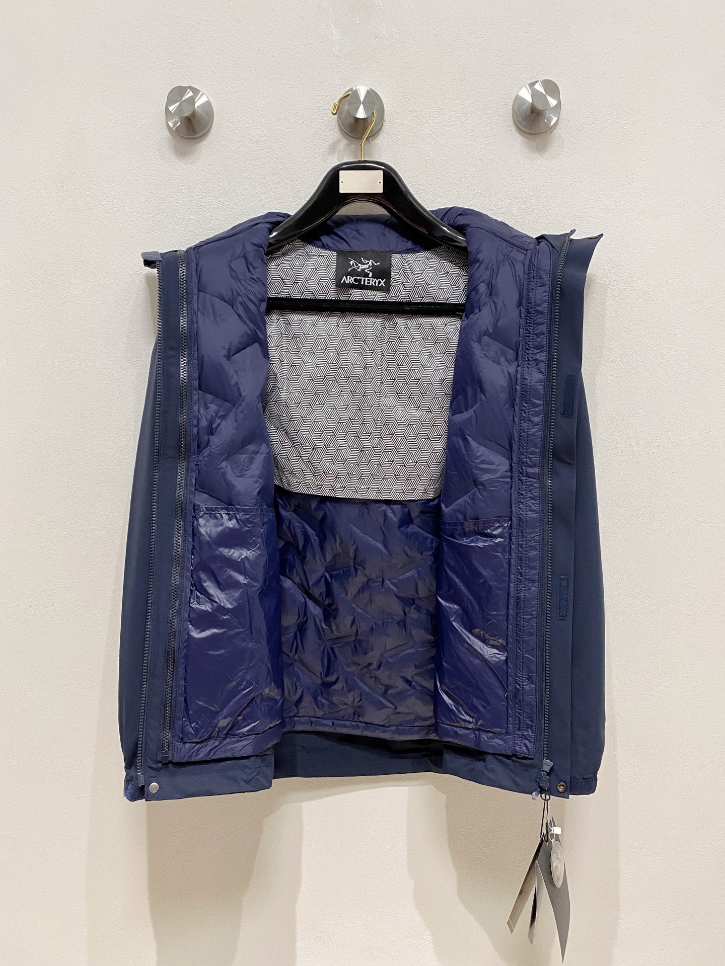Details: Detachable down jacket with embroidery, made of renewable materials