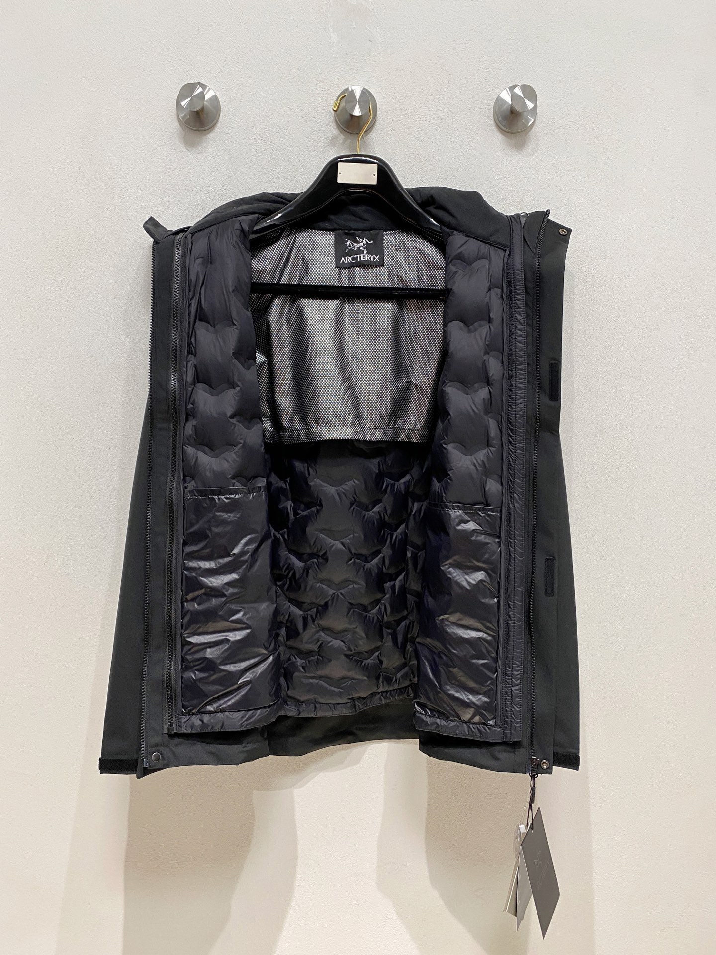 Details: Three-in-one detachable down jacket with embroidery, made of 70% renewable materials