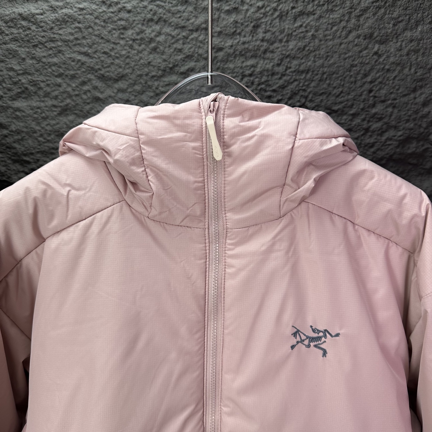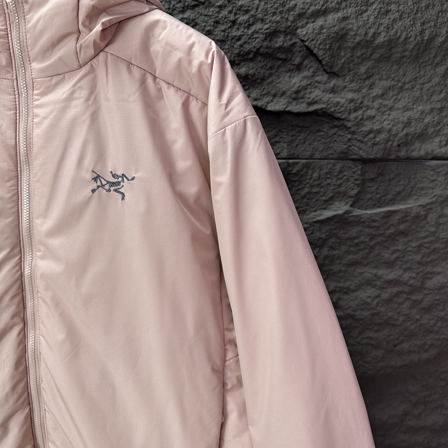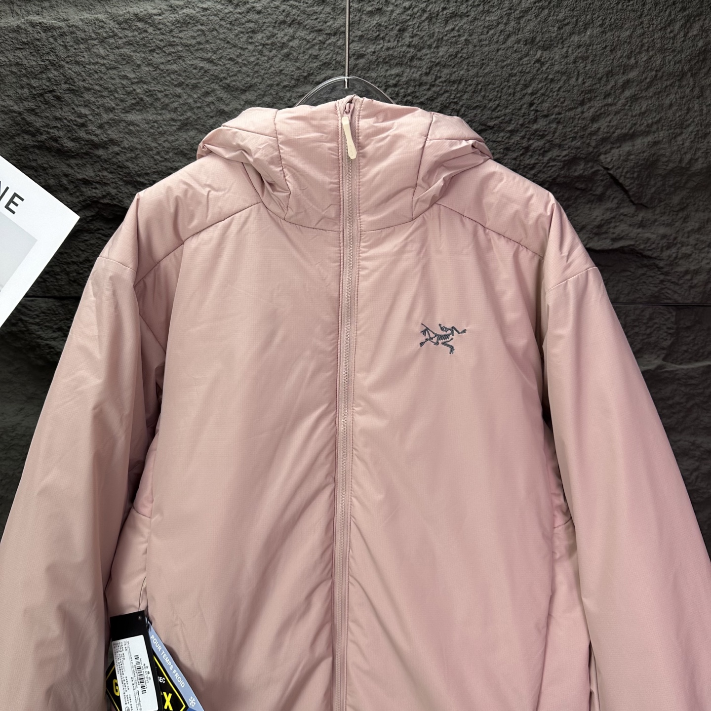 Details: Embroidered logo hooded cotton jacket, waterproof, available in black, light grey and pink