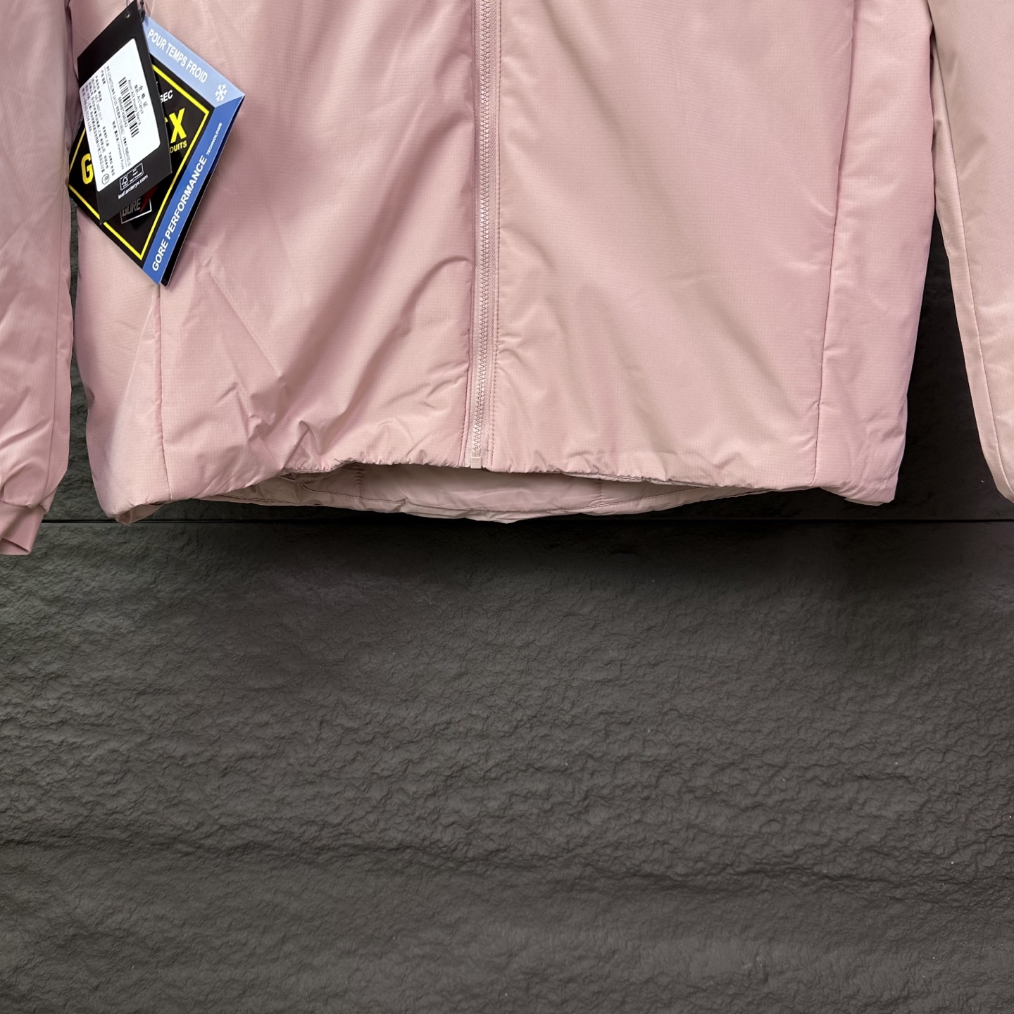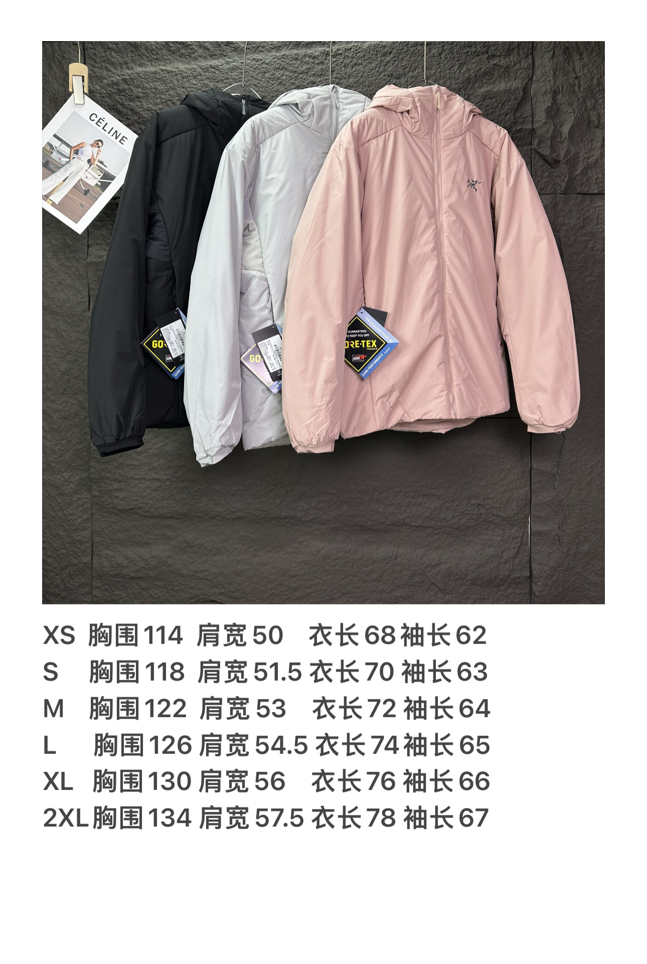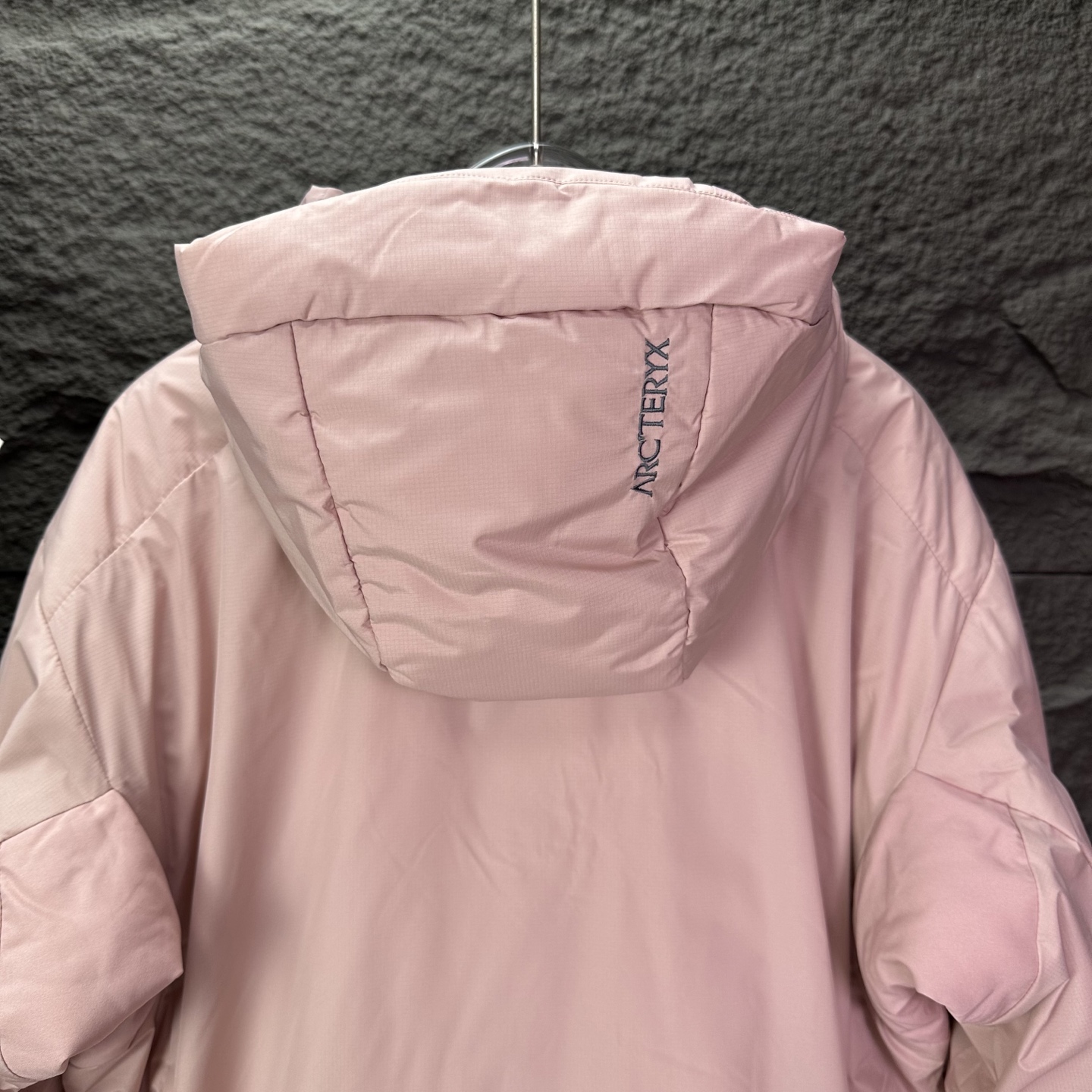Details: Embroidered logo hooded cotton jacket, waterproof, available in black, light grey and pink