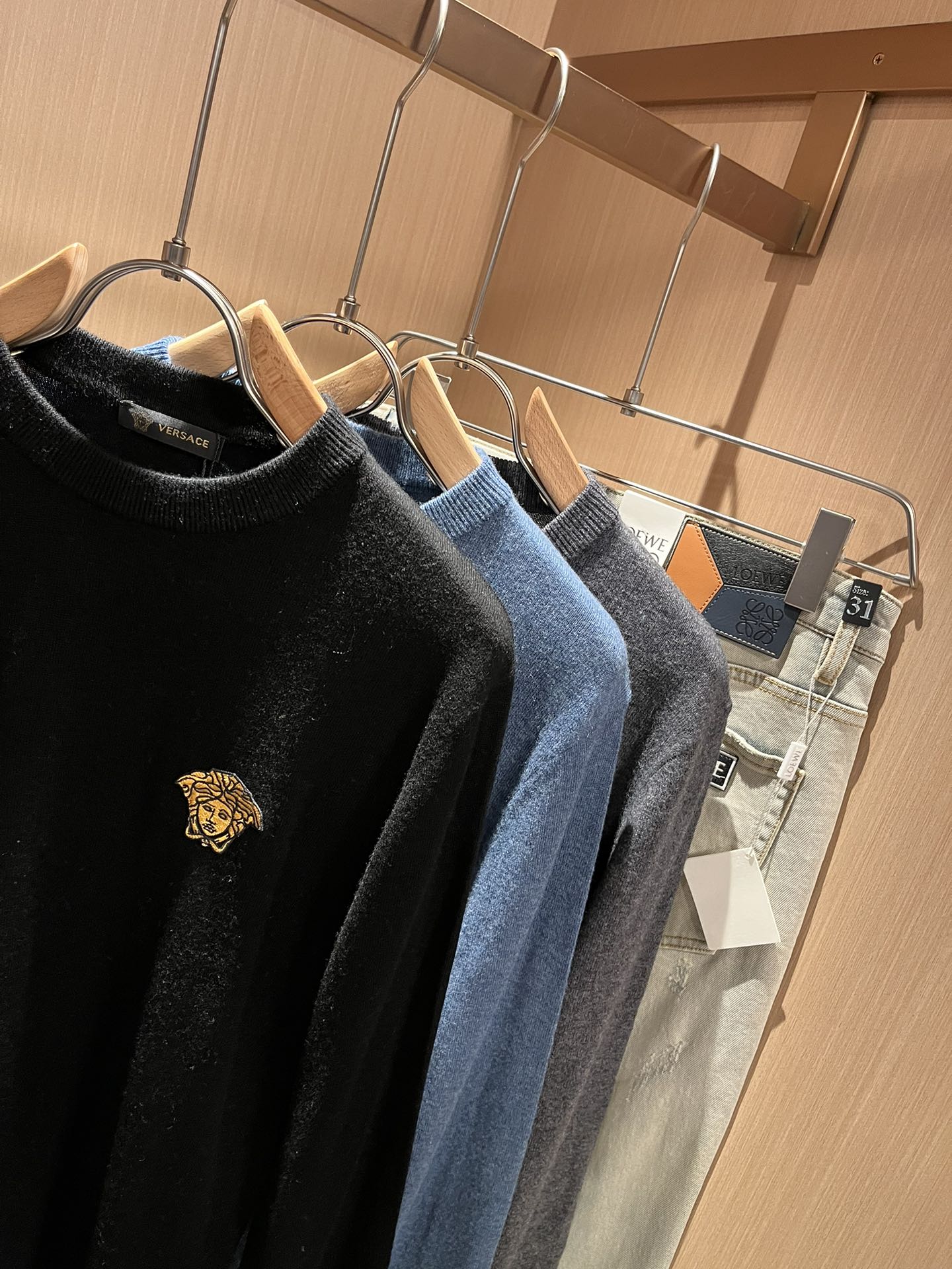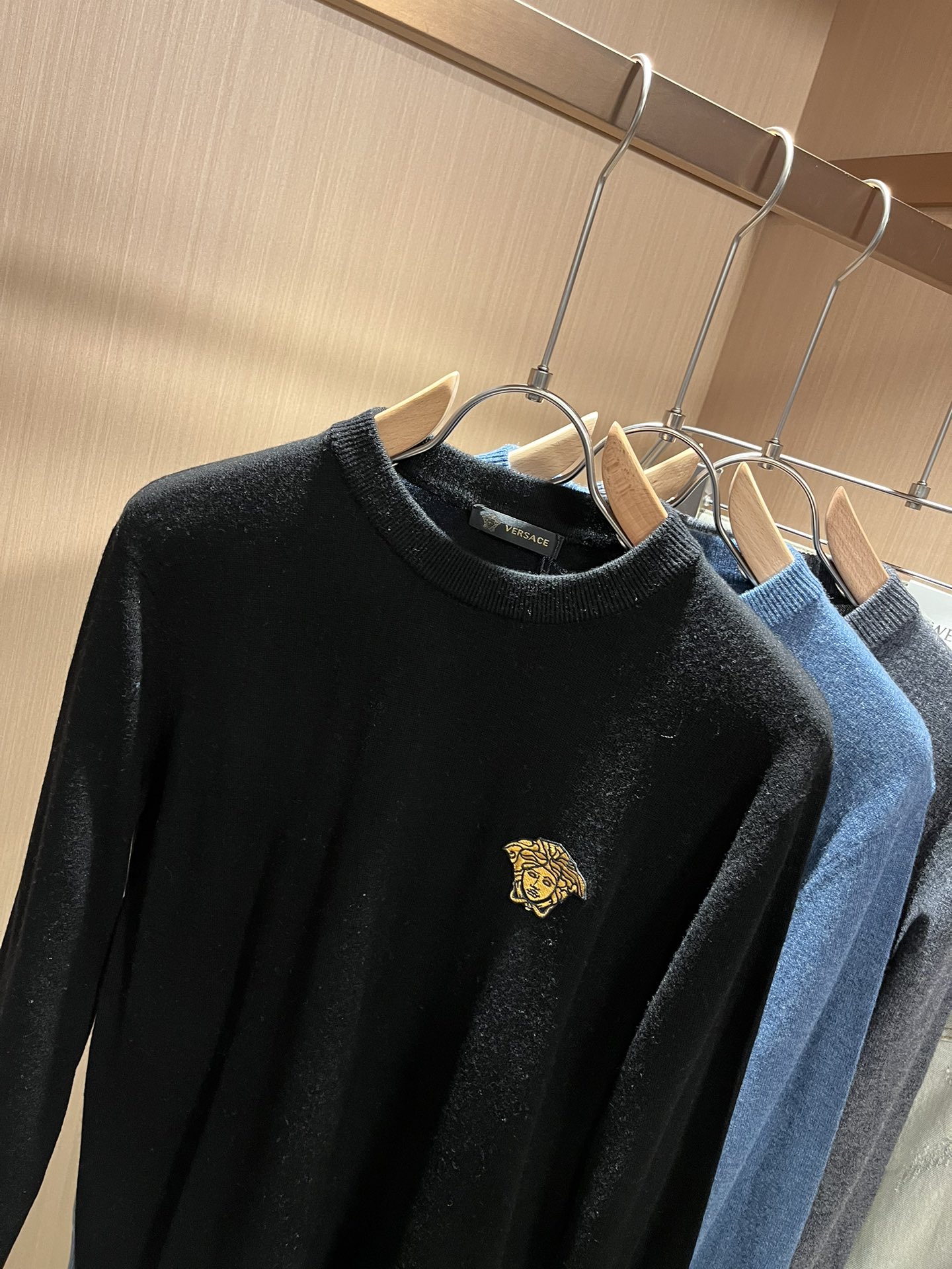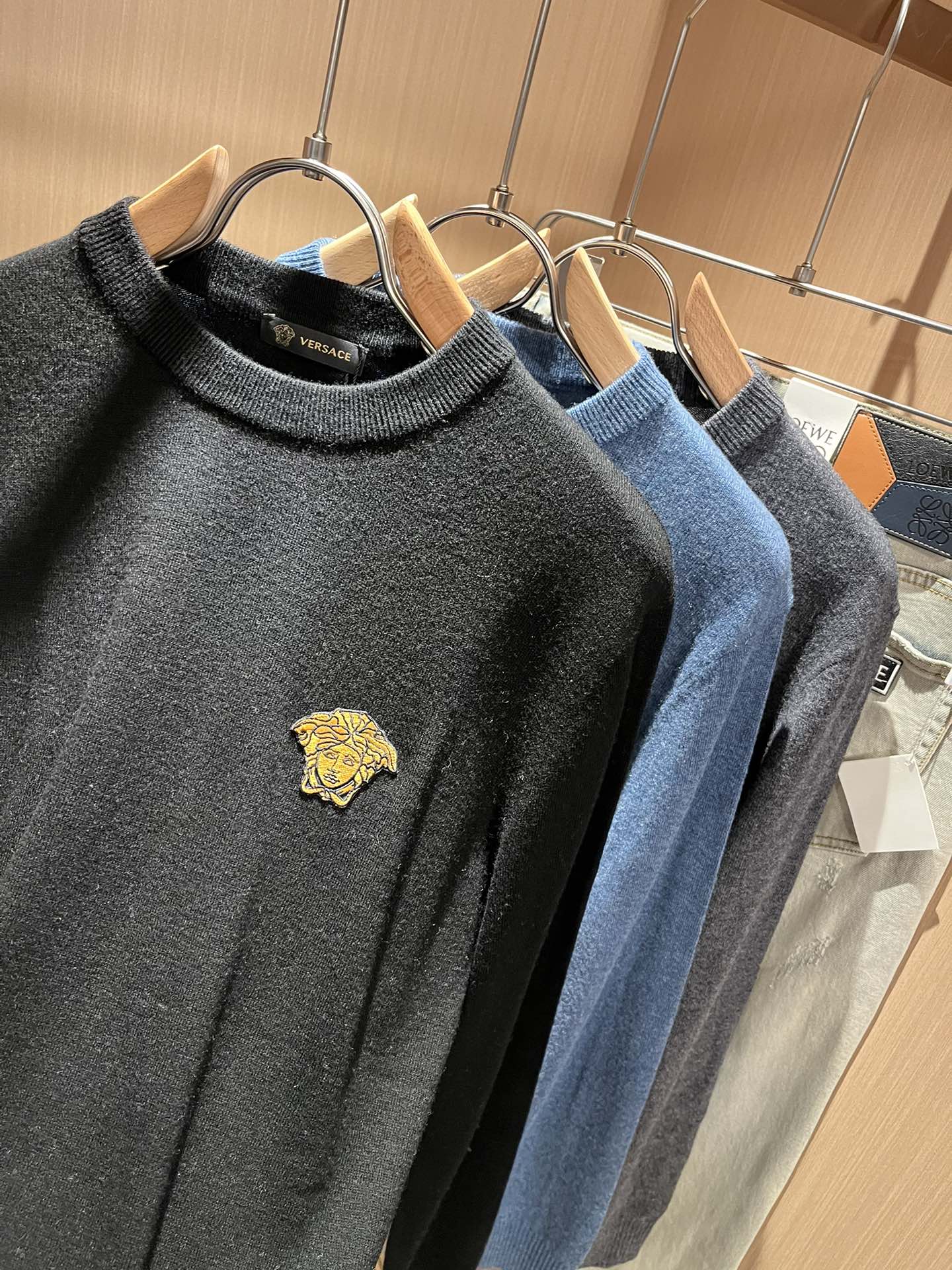 Details: Round - neck woolen sweater with stunning logo embroidery and Premium craftsmanship