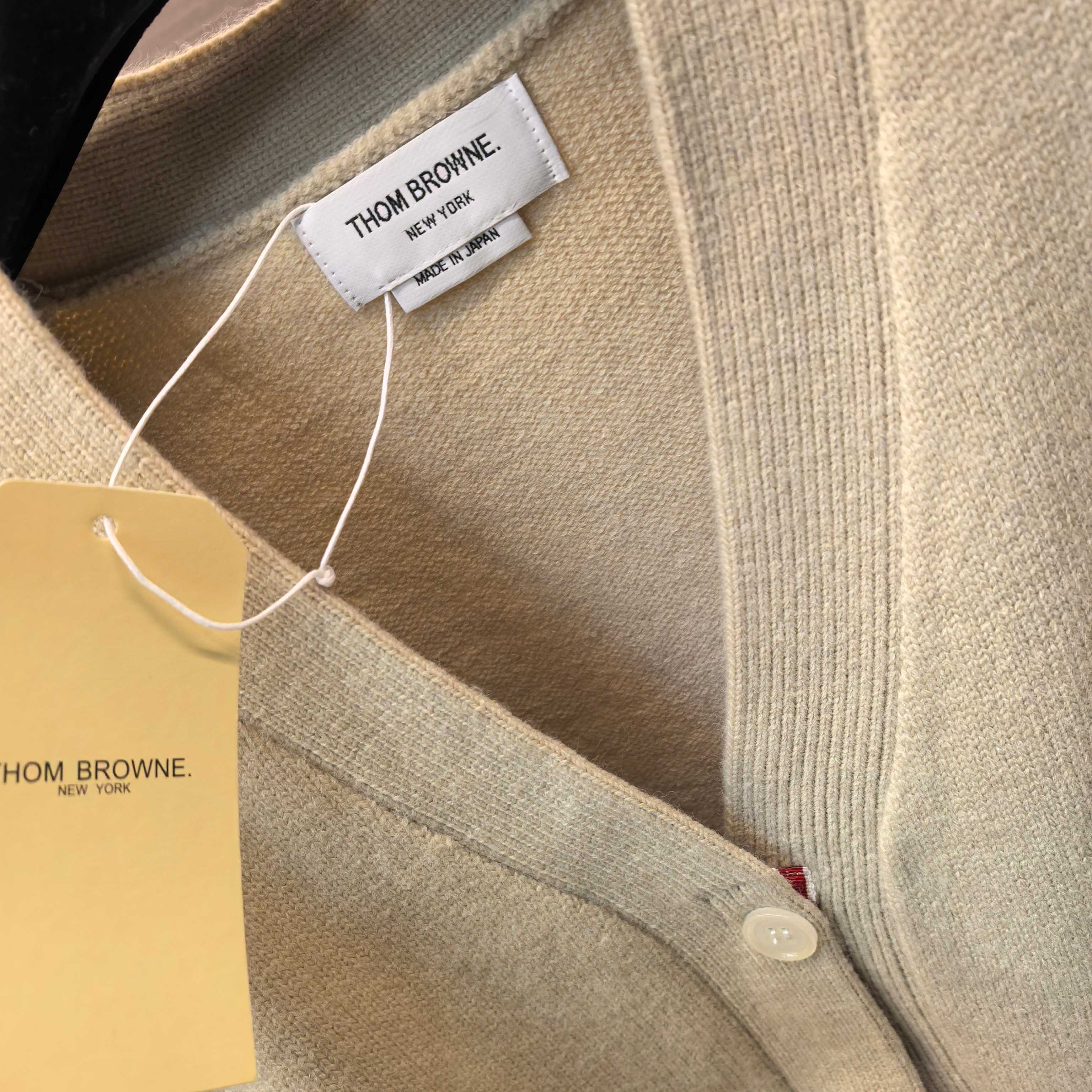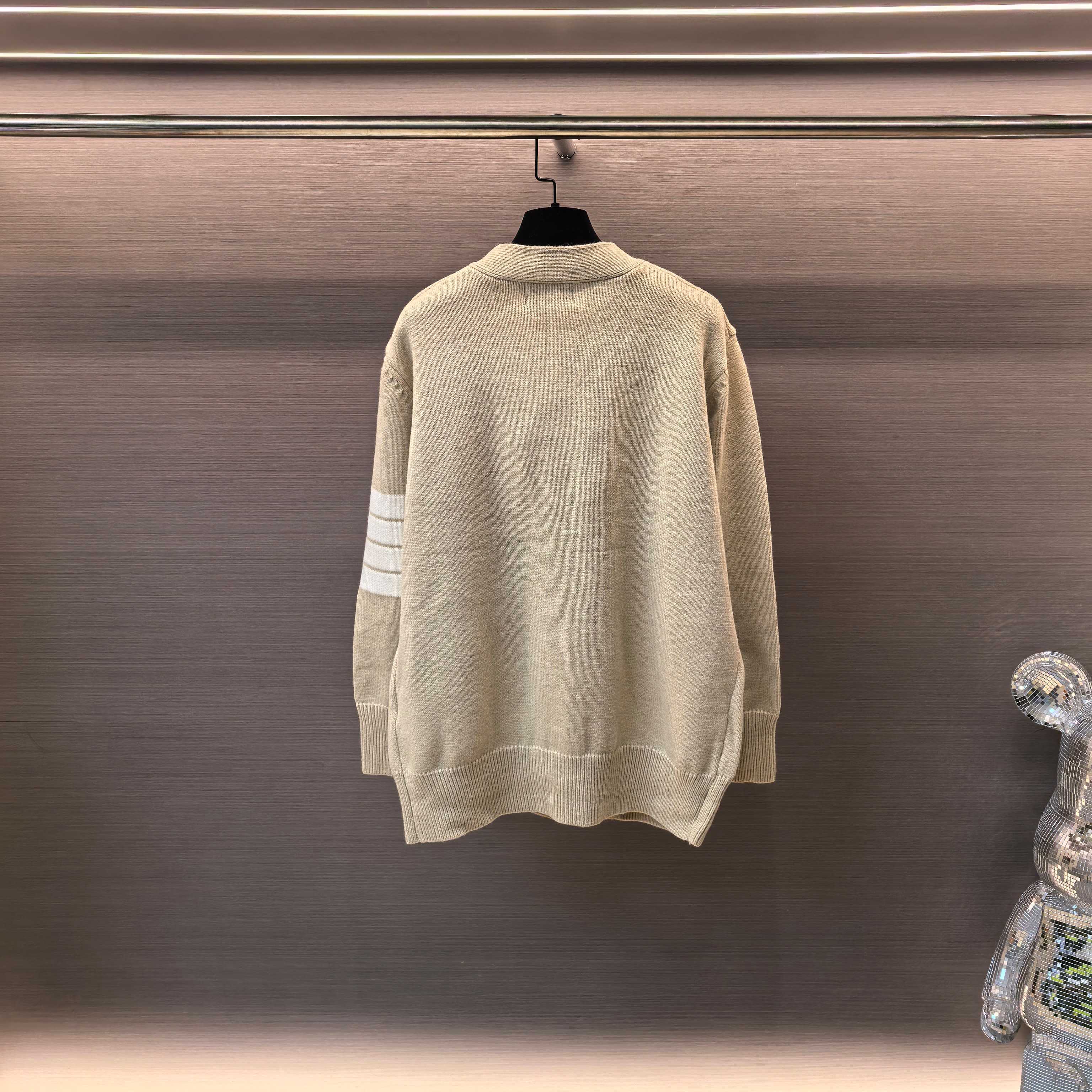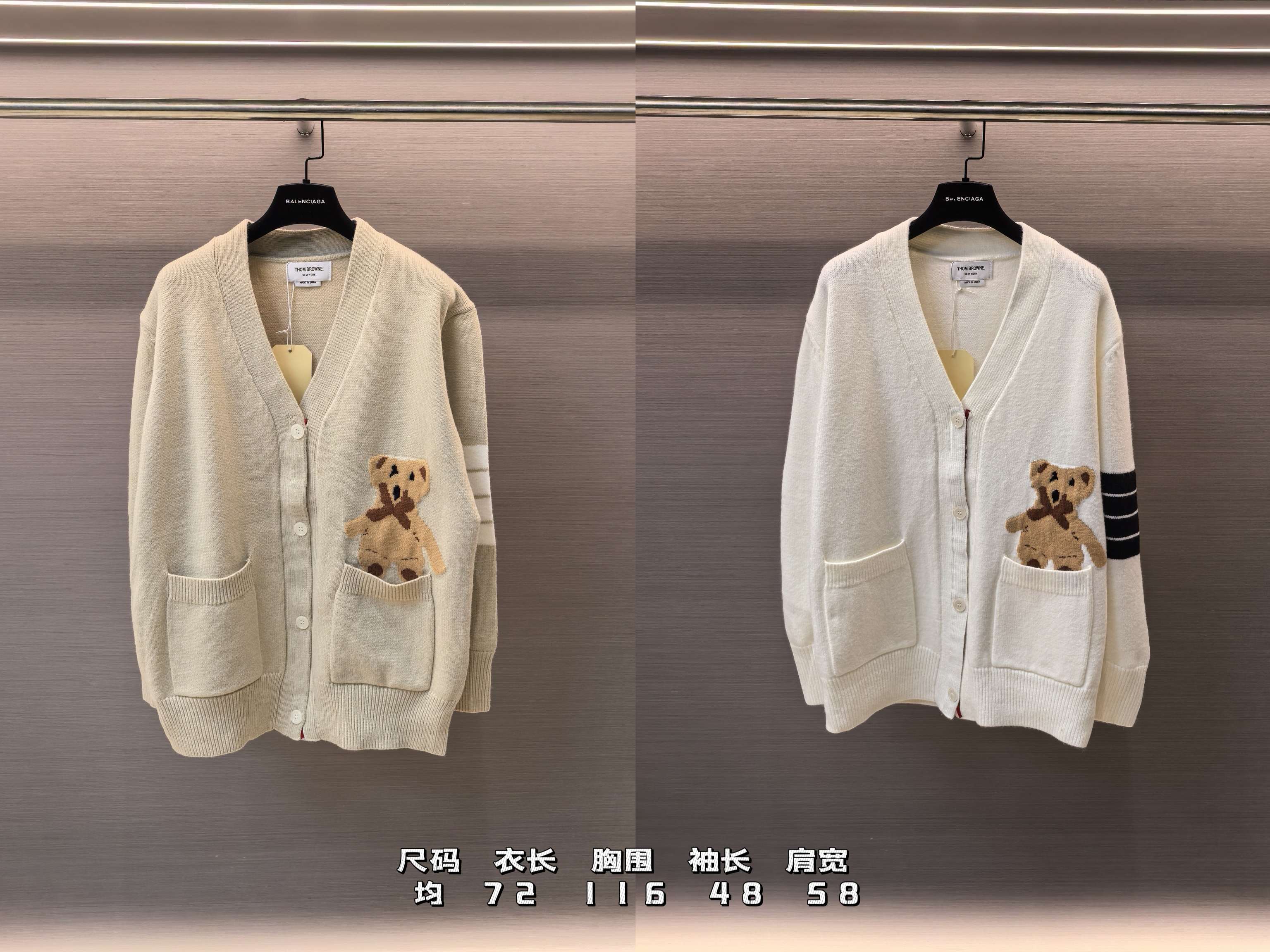 Details: Cartoon Bear Four-Stripe Alpaca Wool Cardigan, Oversized Fit, Available in White and Gray, with Mother-of-Pearl Buttons