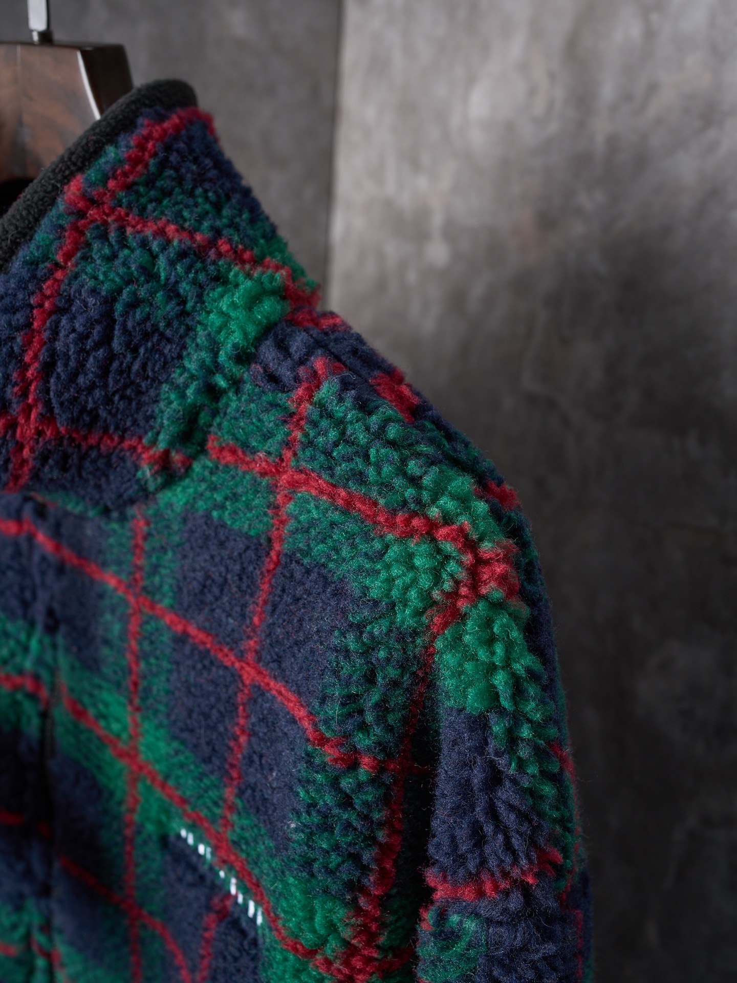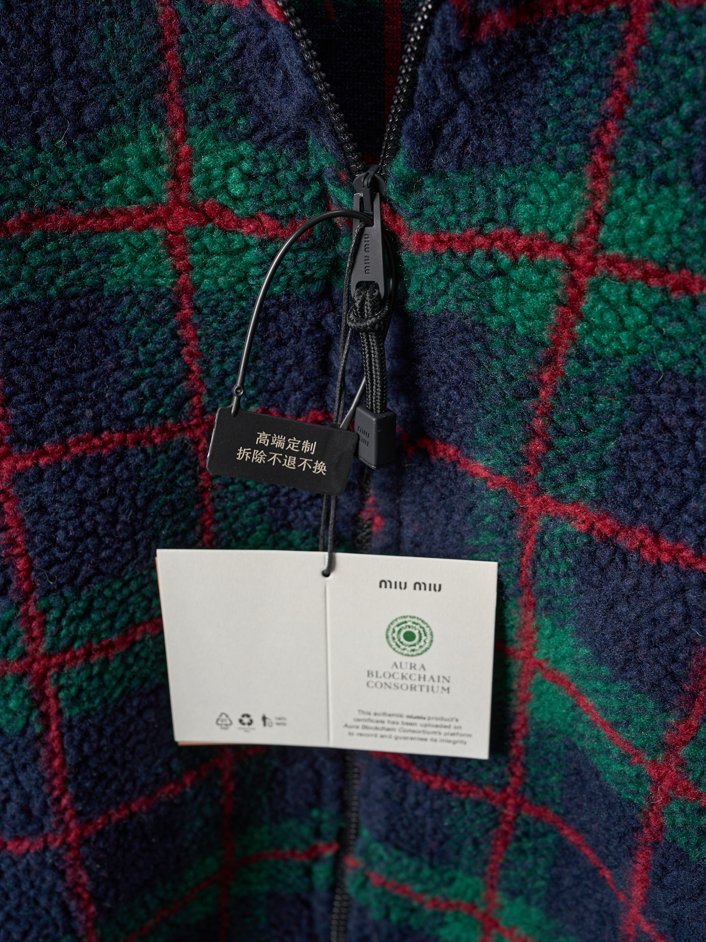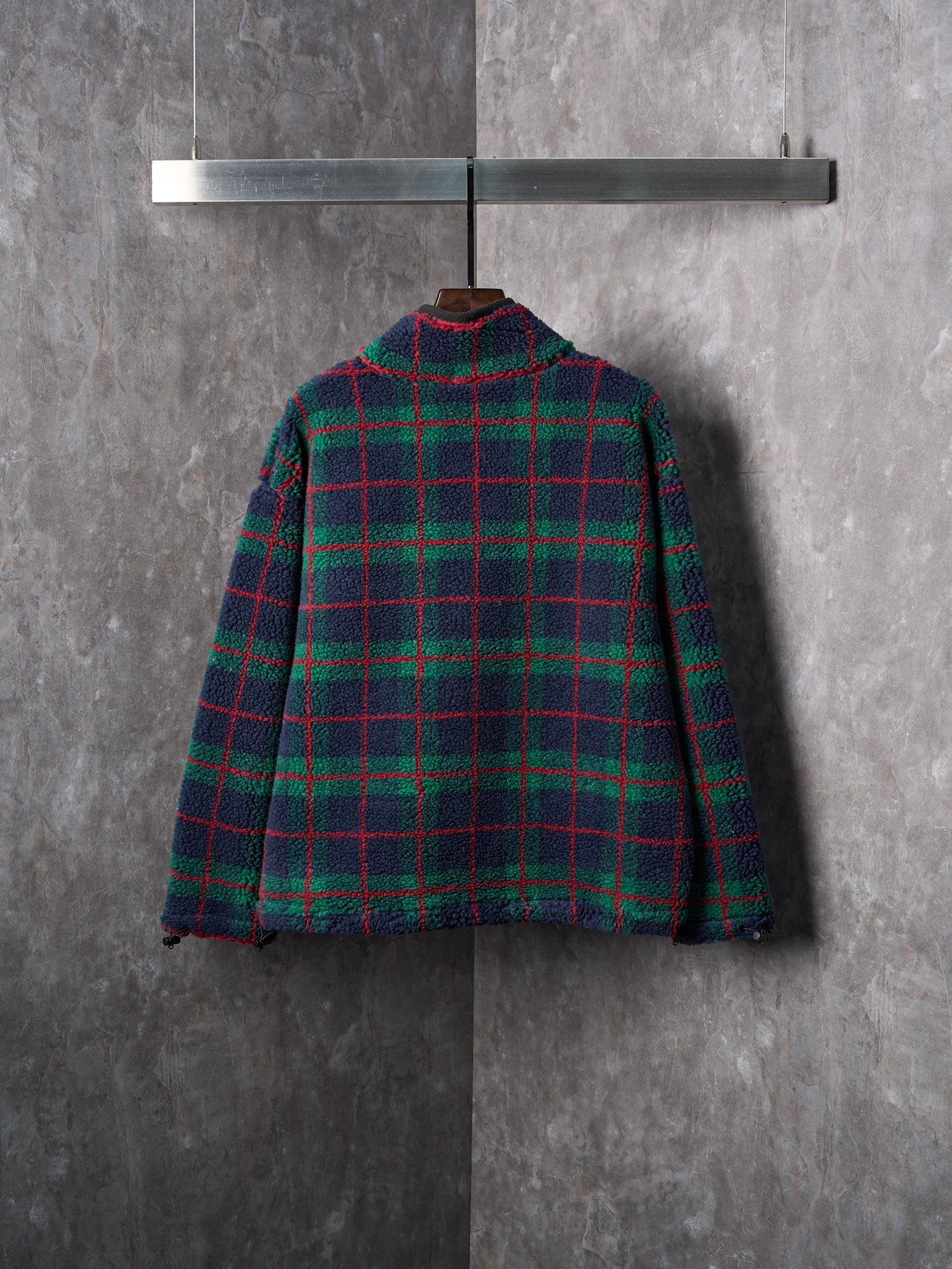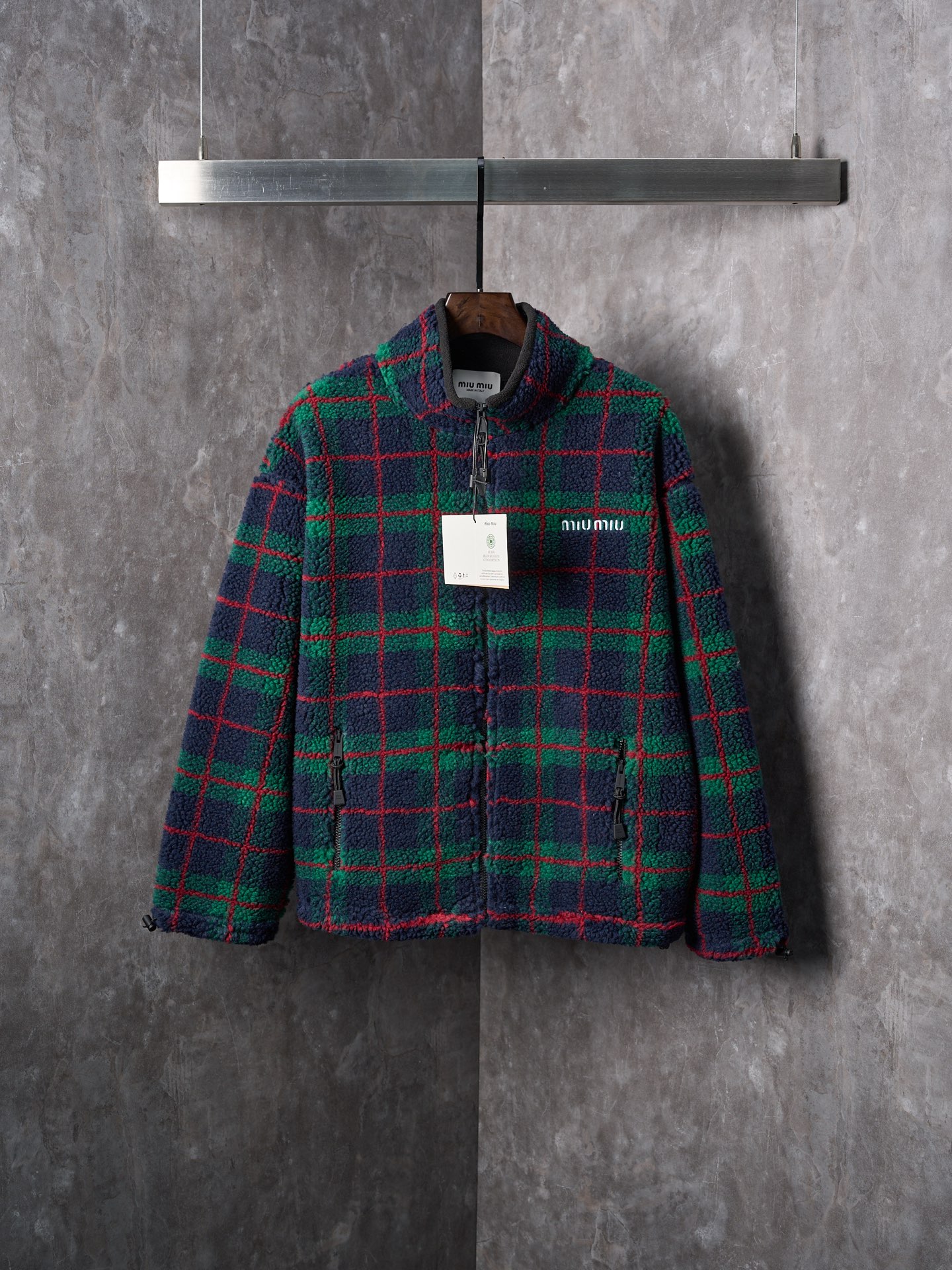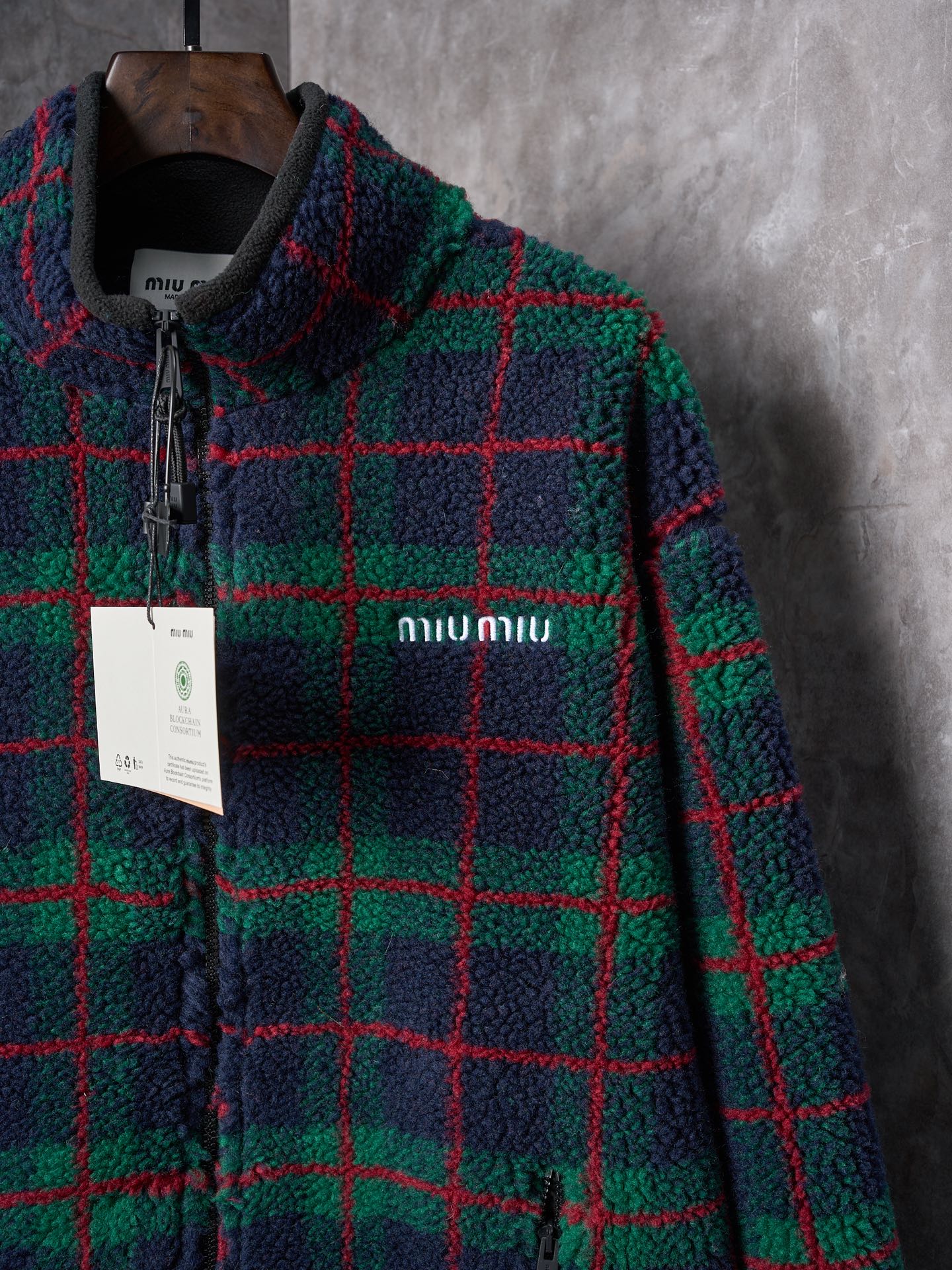 Details: Lamb wool grid - embroidered zipper coat, available in green or grey, soft and stylish