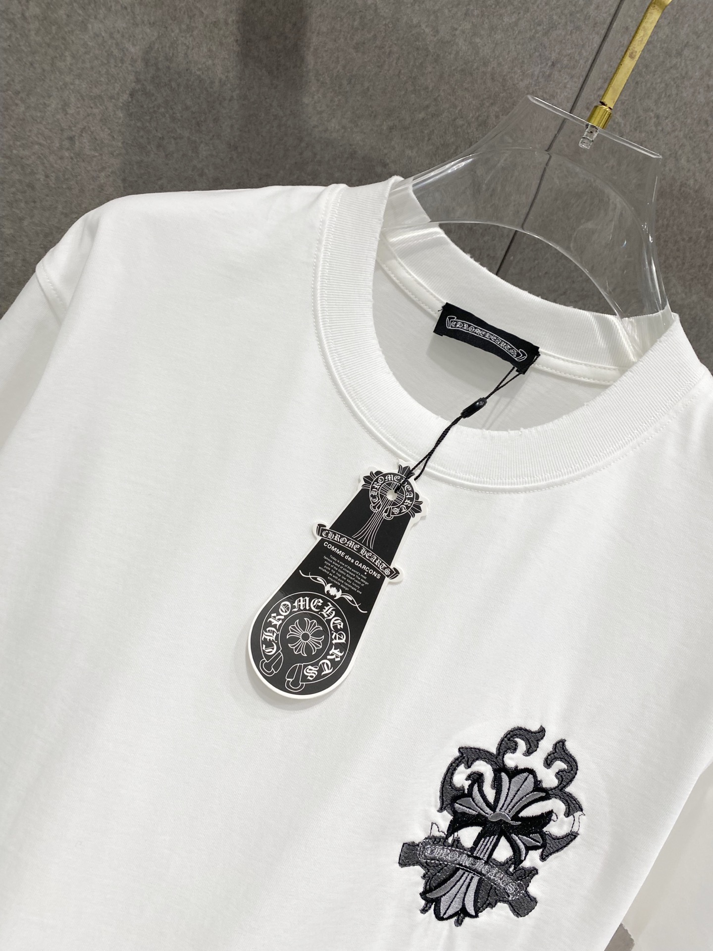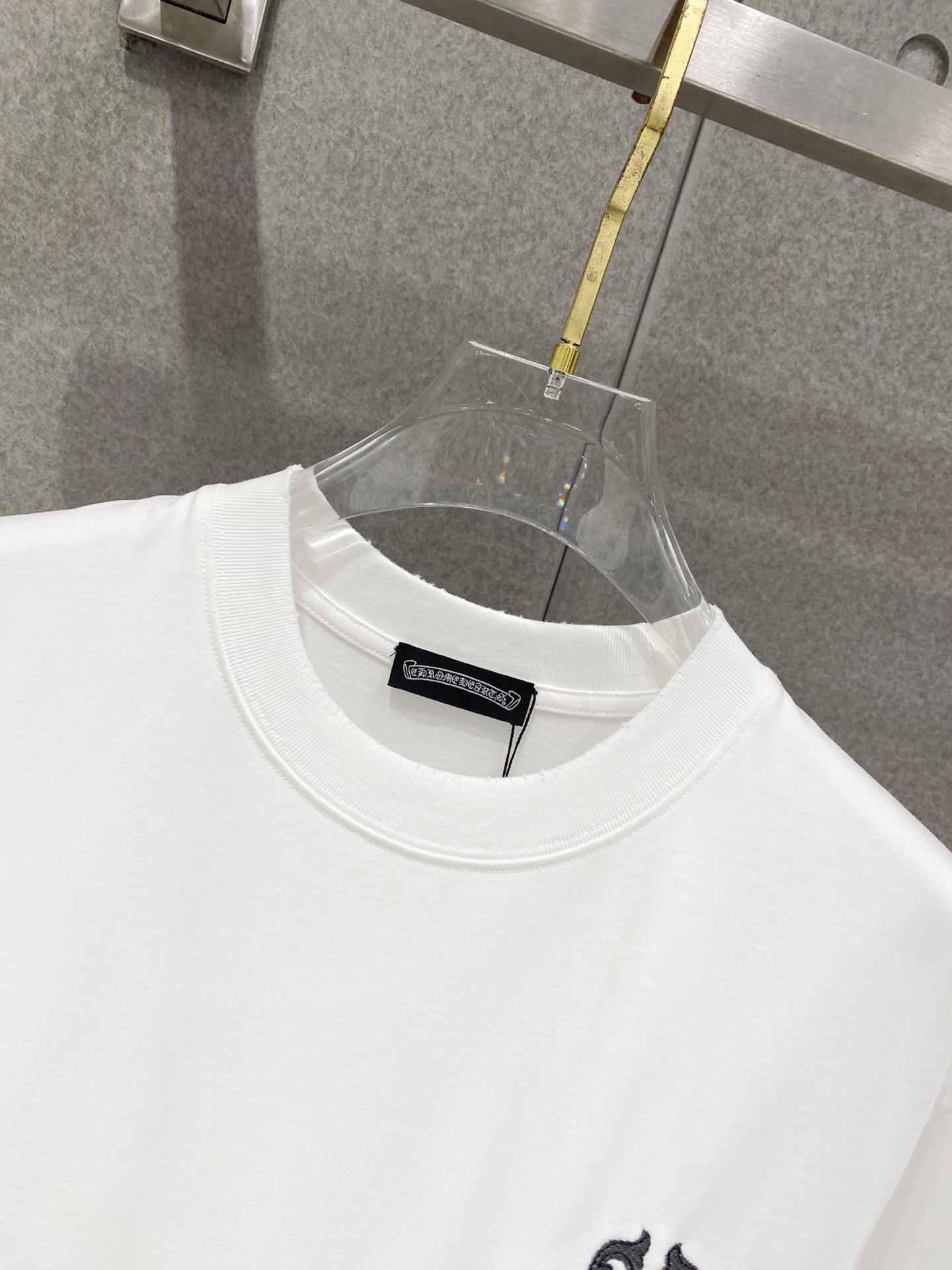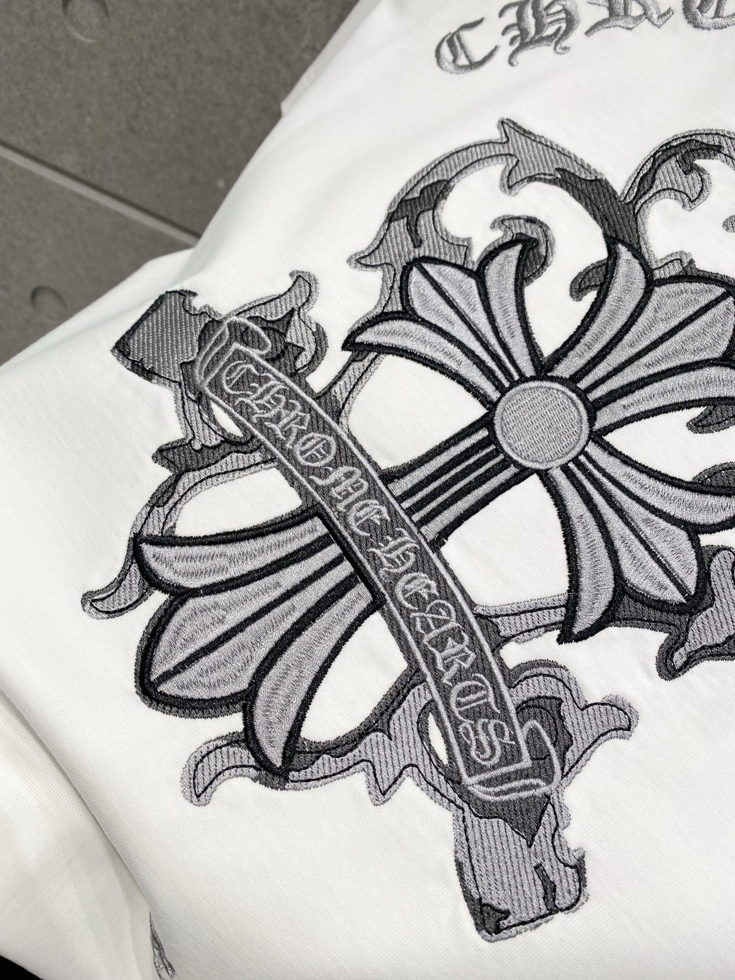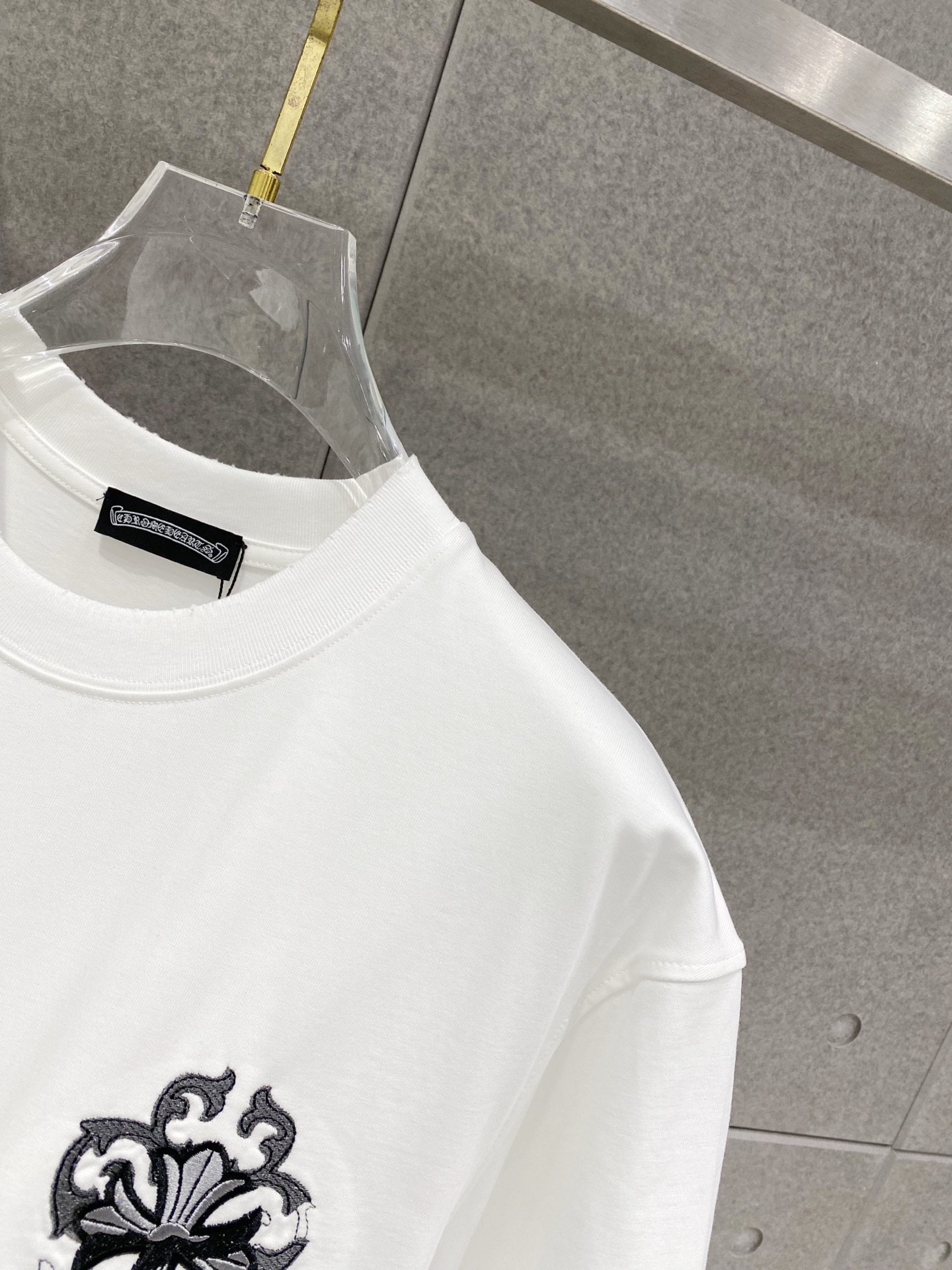 Details: Double-needle stitched neckline, large embroidered logo, distressed edges, and high-quality imported cotton fabric.