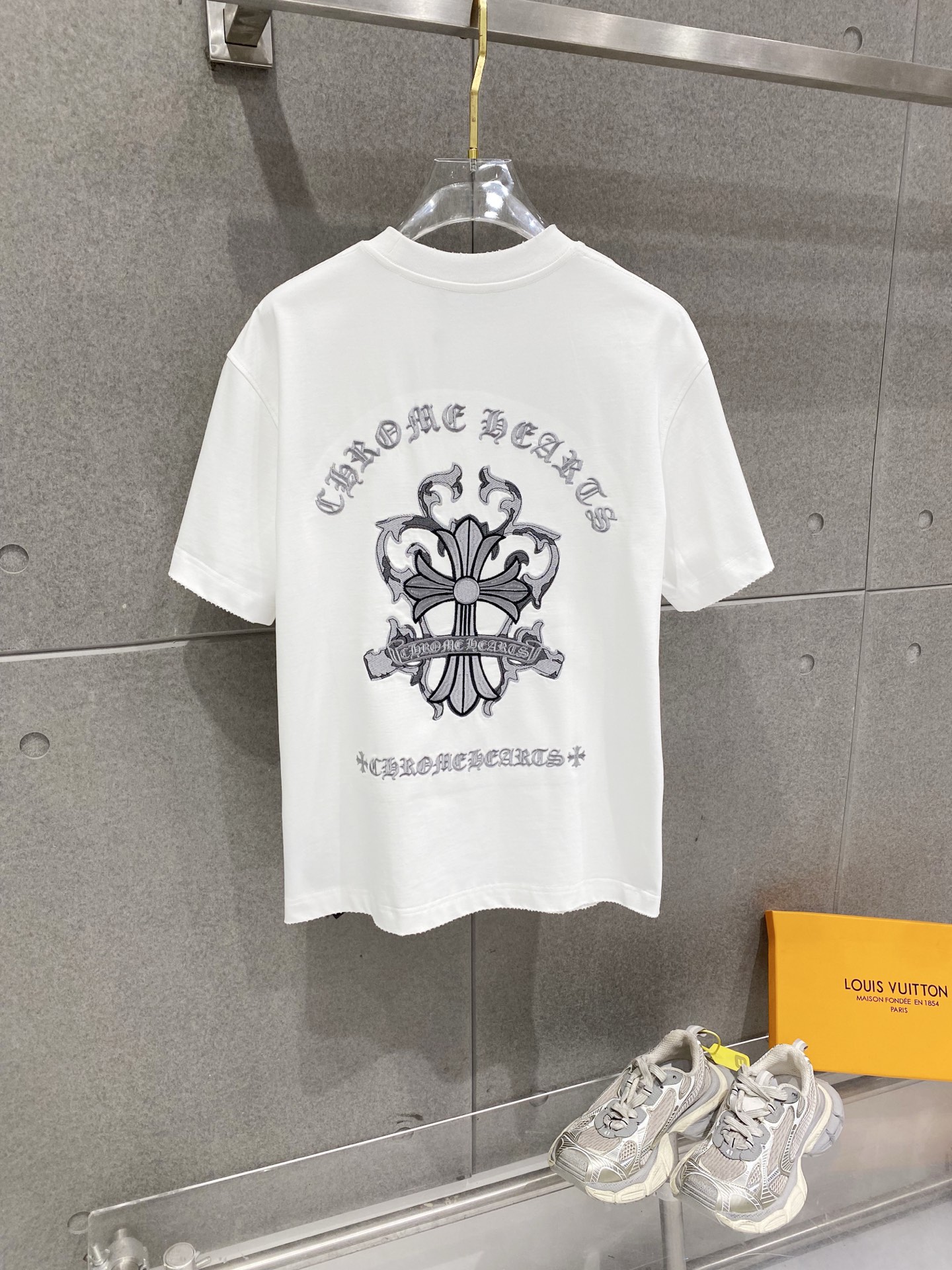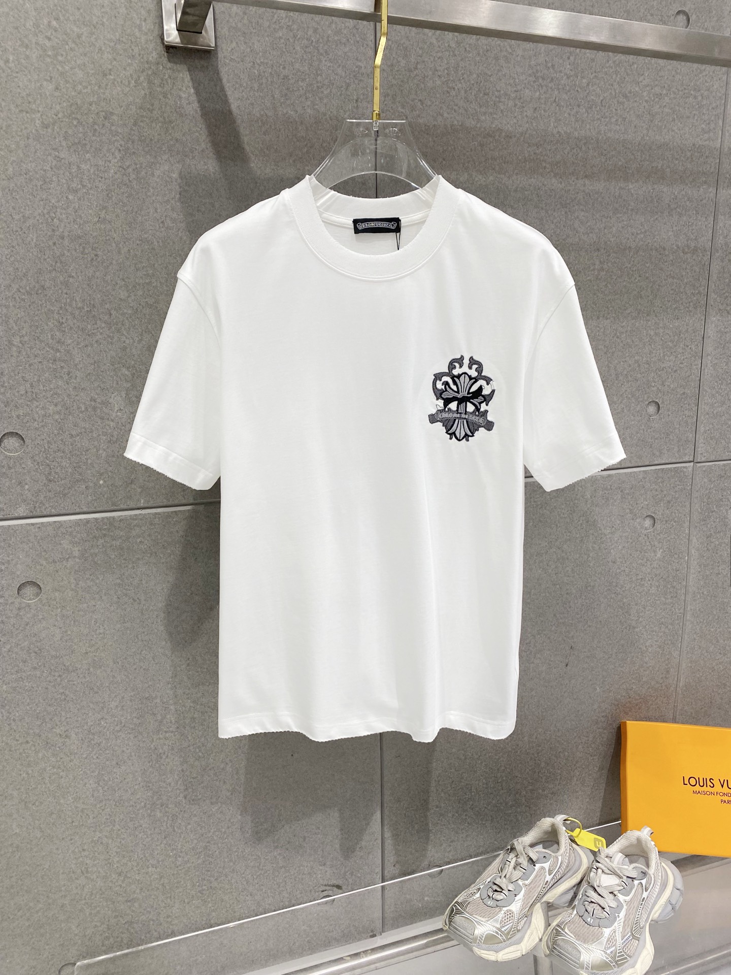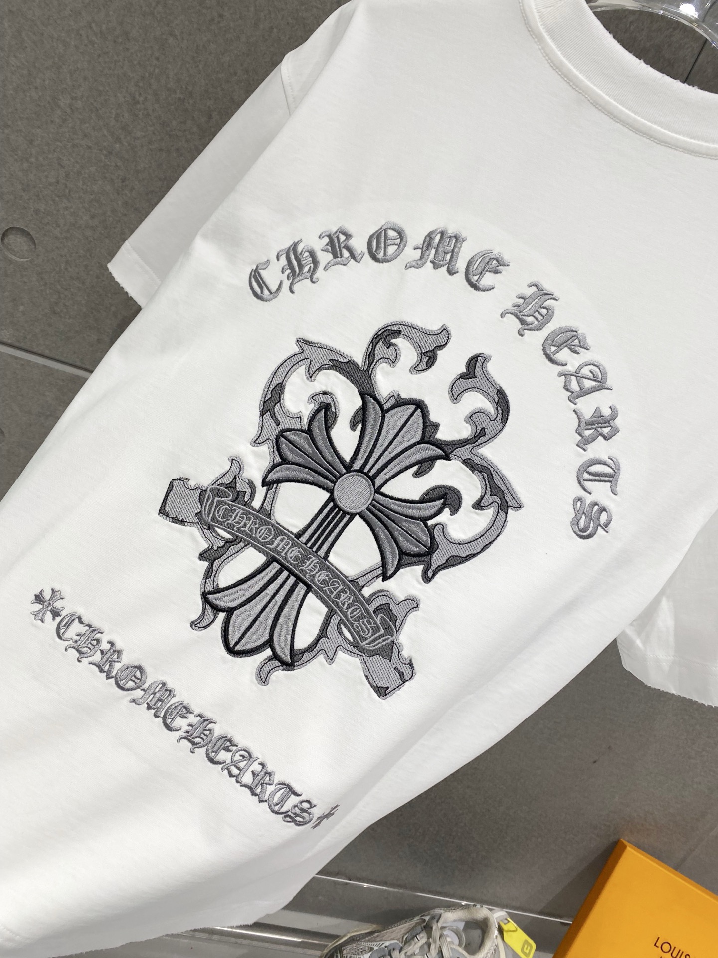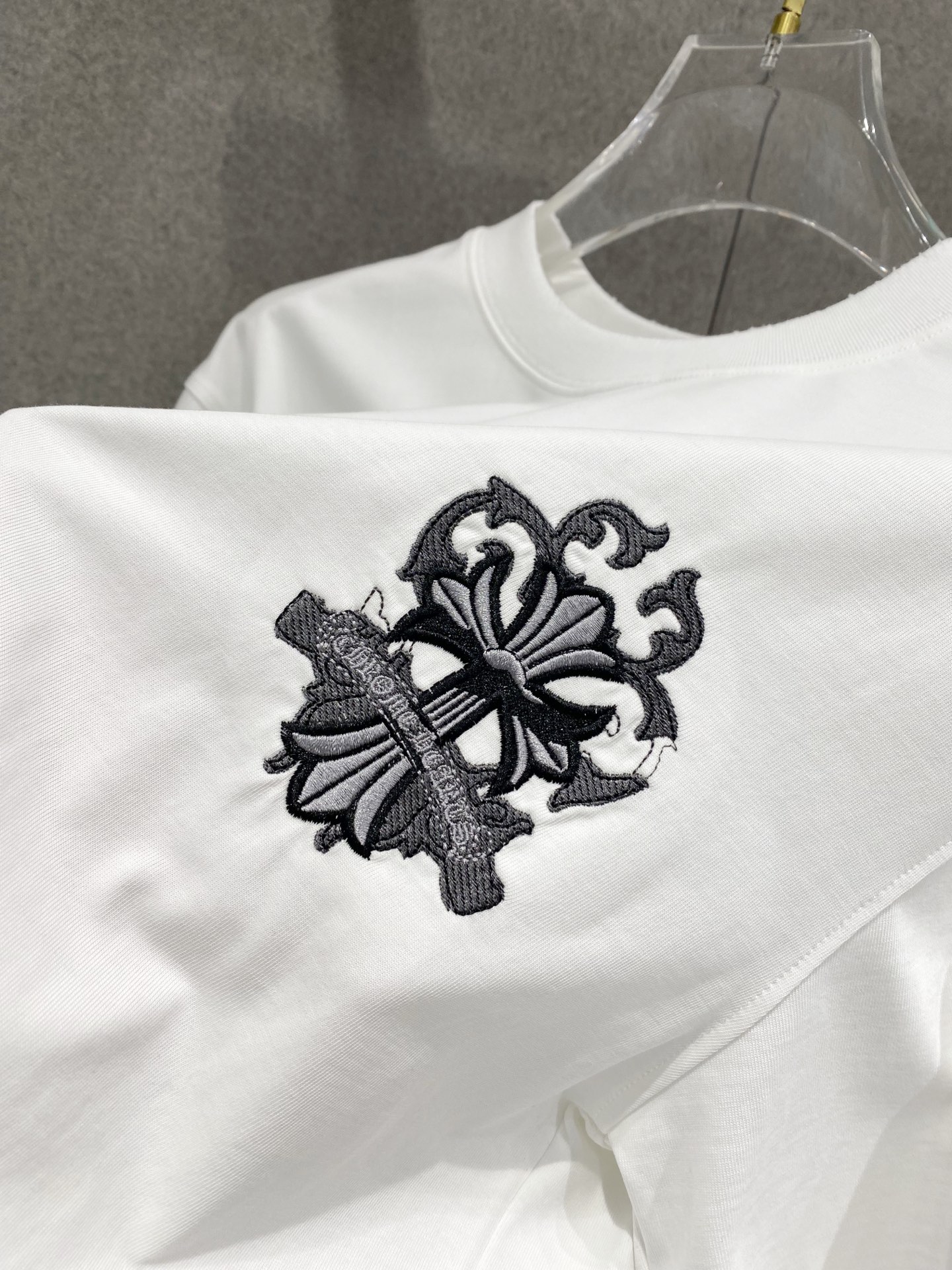 Details: Double-needle stitched neckline, large embroidered logo, distressed edges, and high-quality imported cotton fabric.