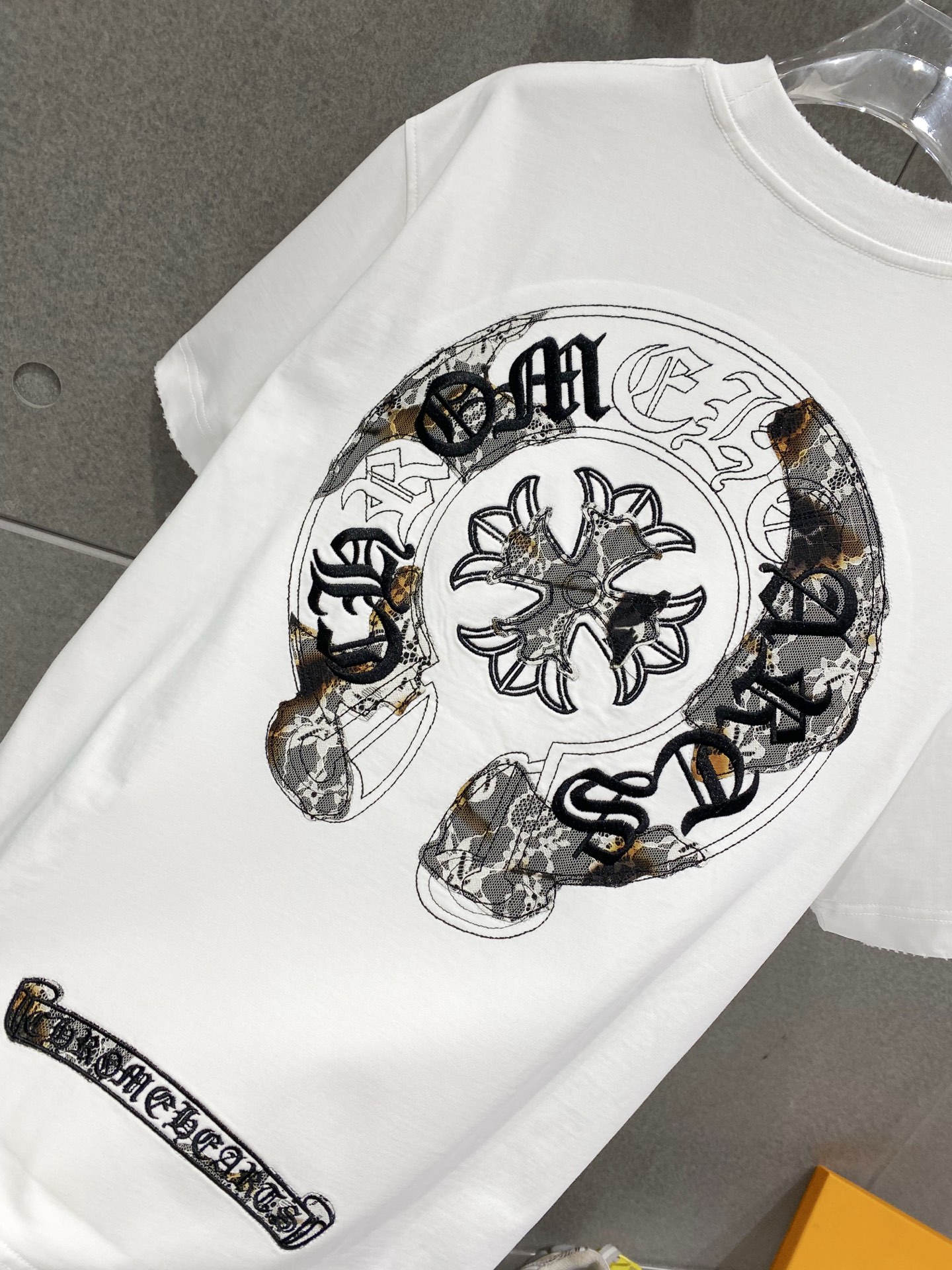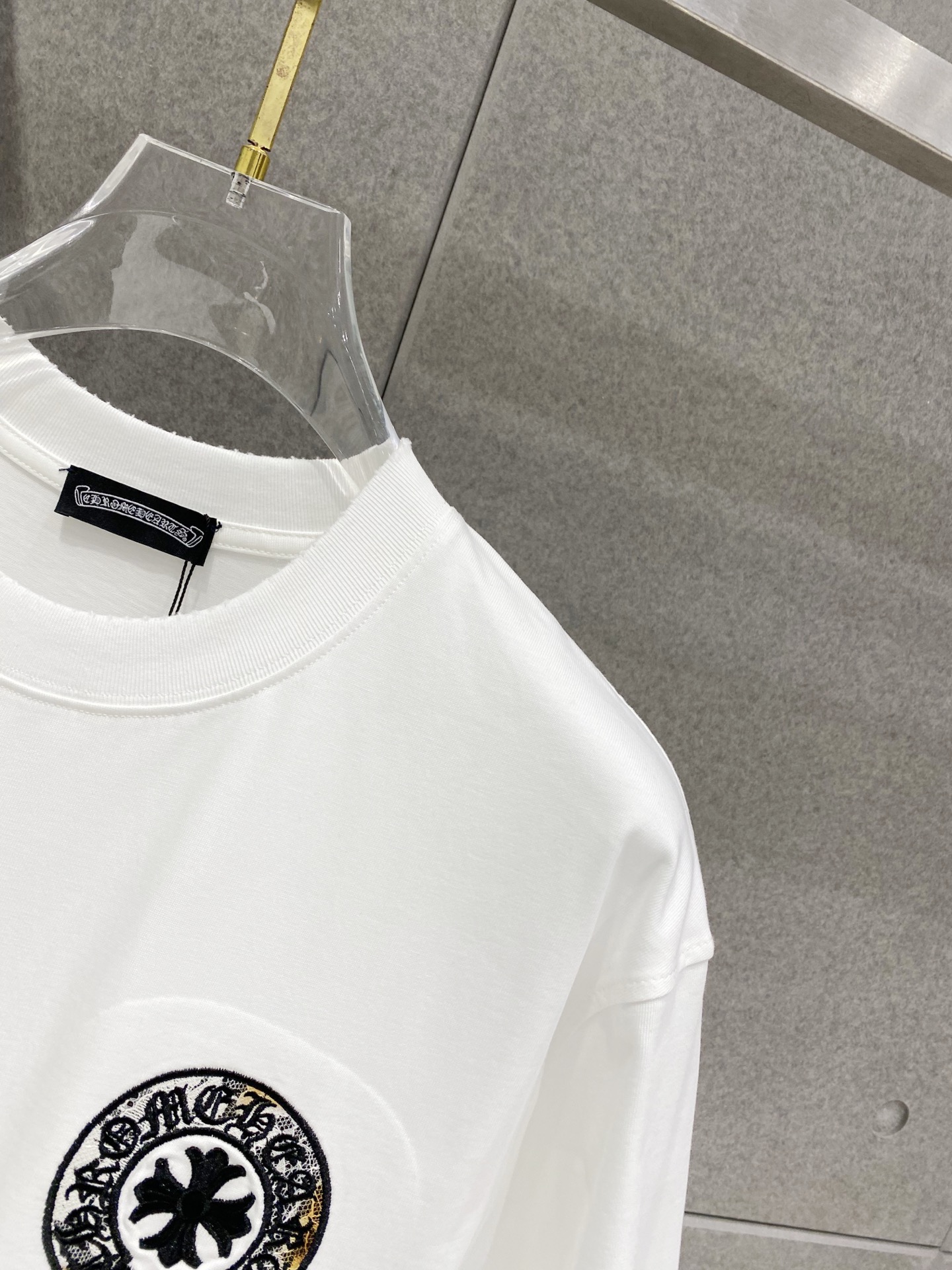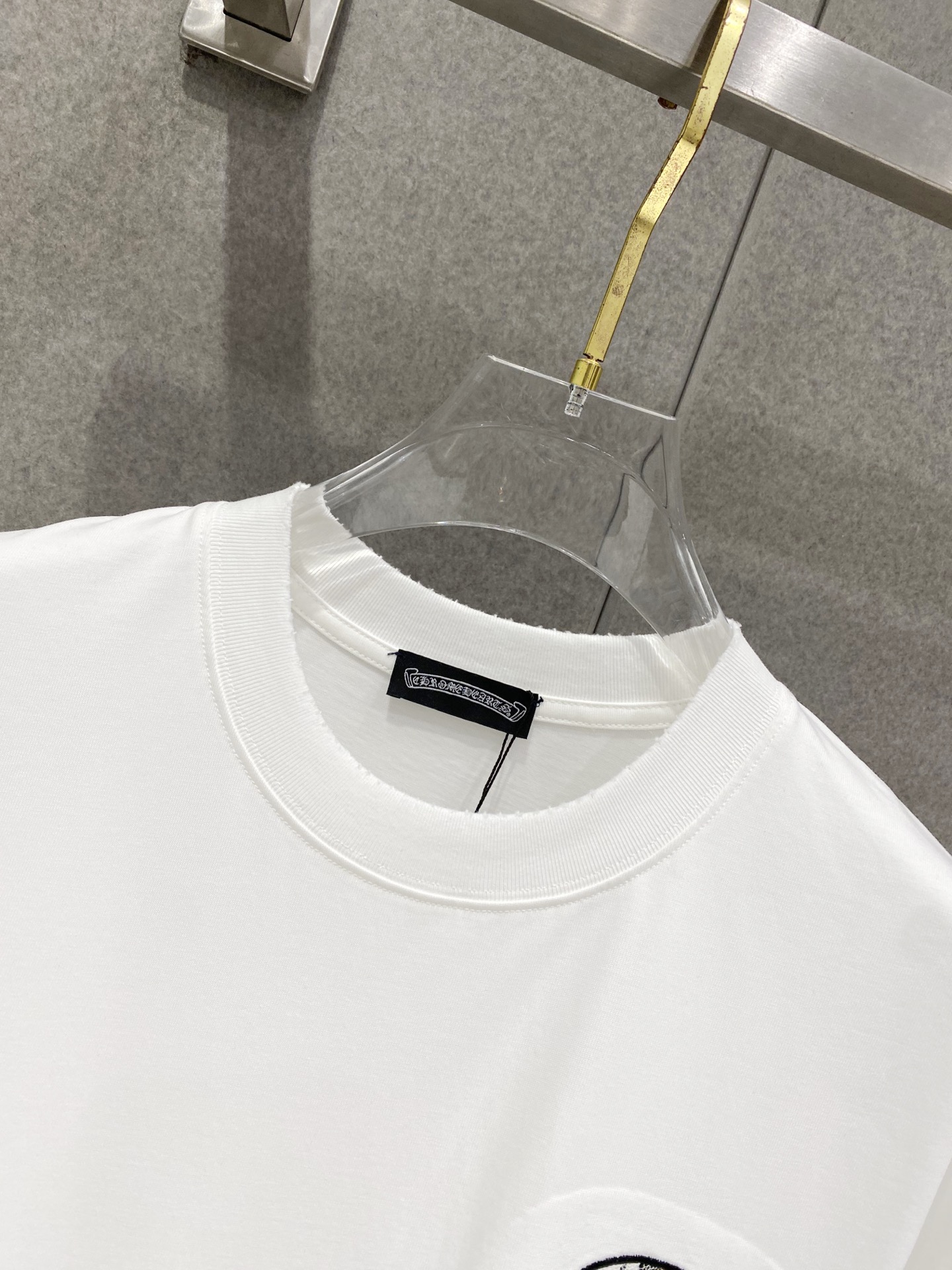 Details: Cotton short-sleeved T-shirt with embroidered logo and frayed edges