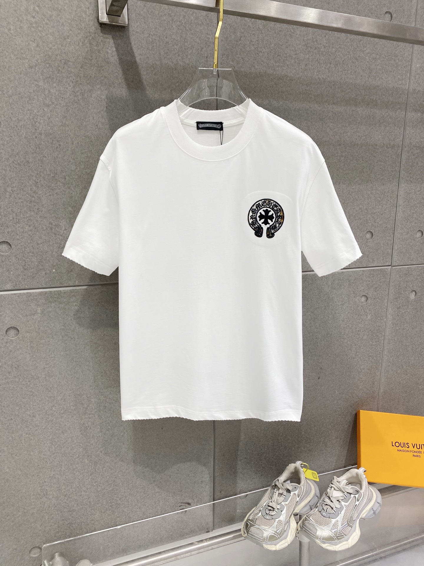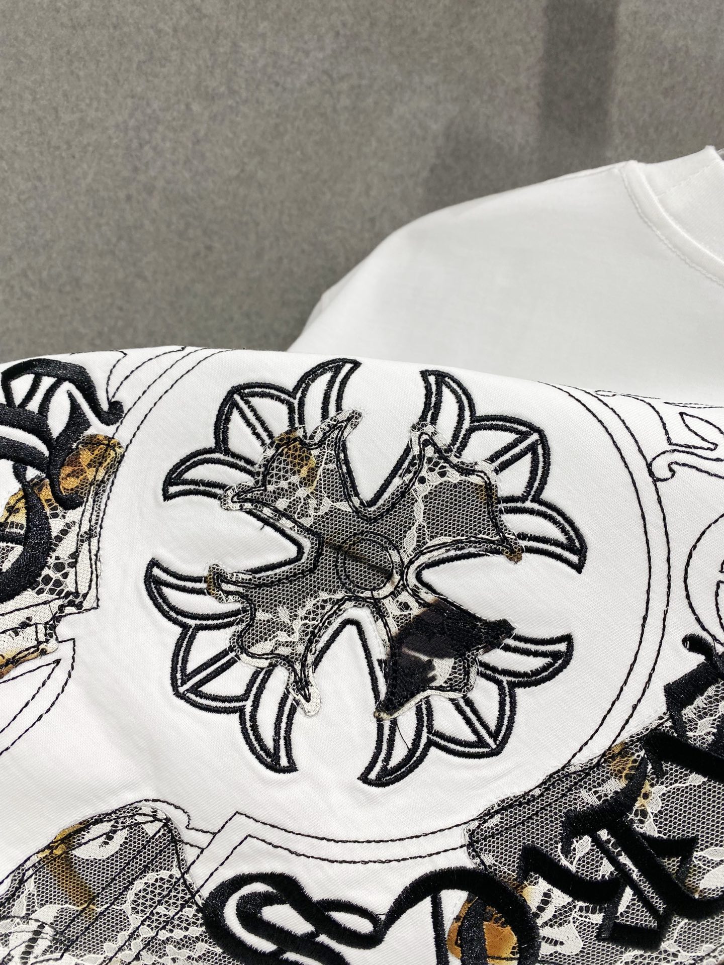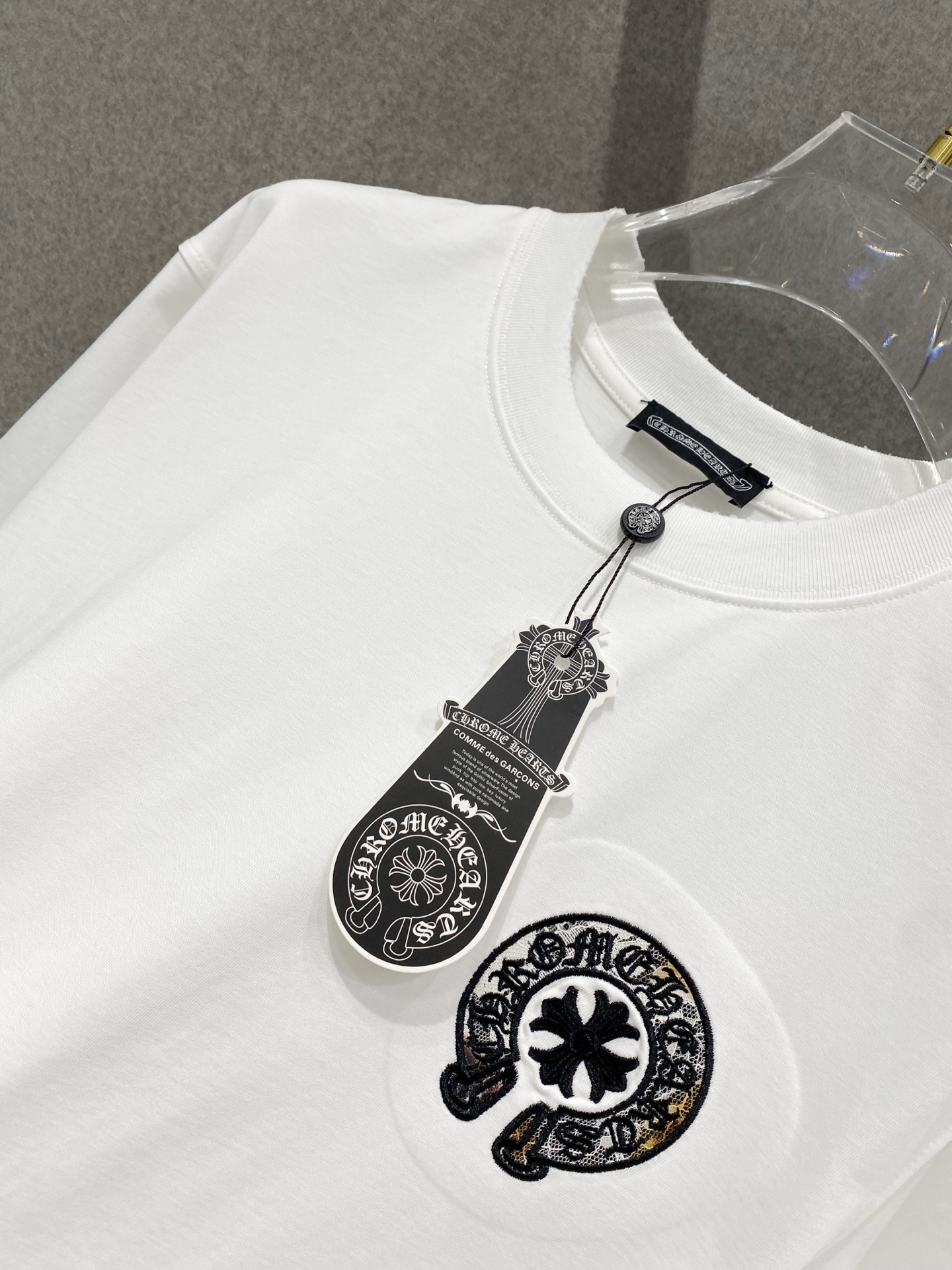 Details: Cotton short-sleeved T-shirt with embroidered logo and frayed edges