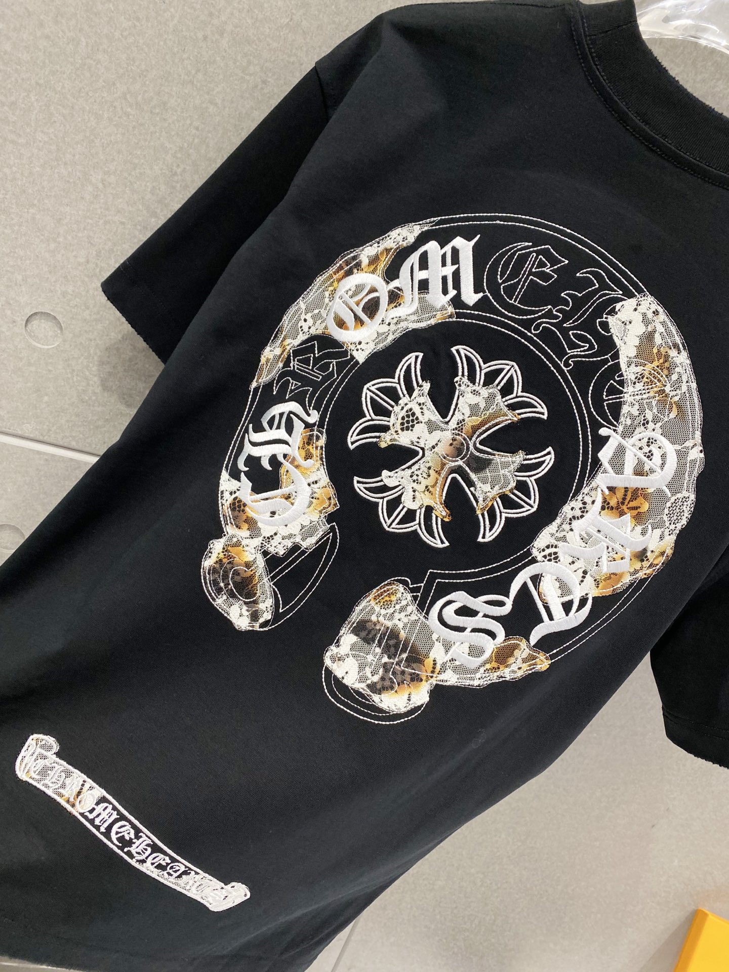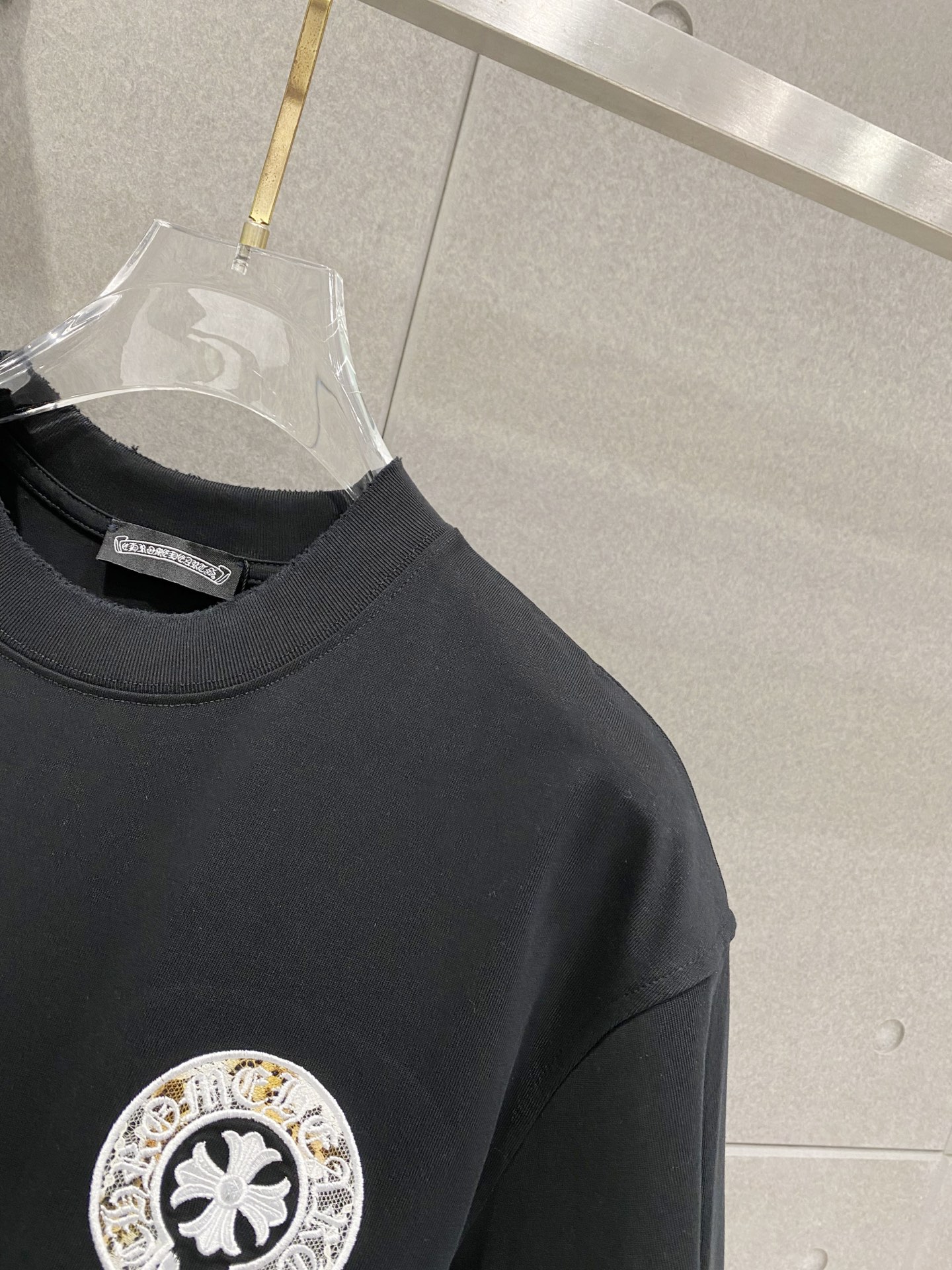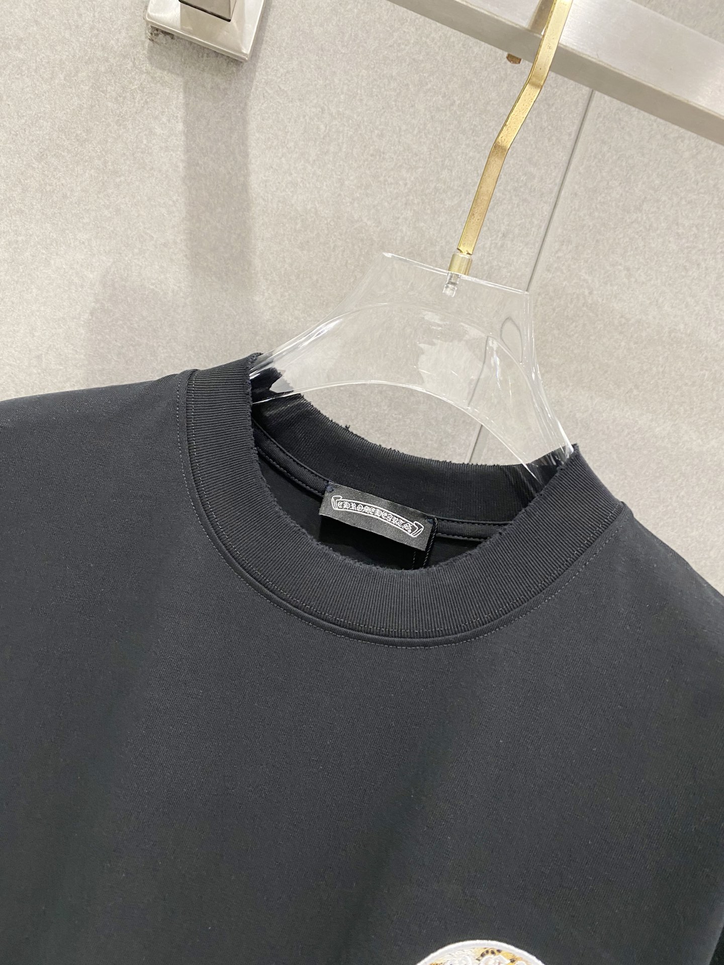 Details: Cotton short-sleeved T-shirt with embroidered logo and frayed edges