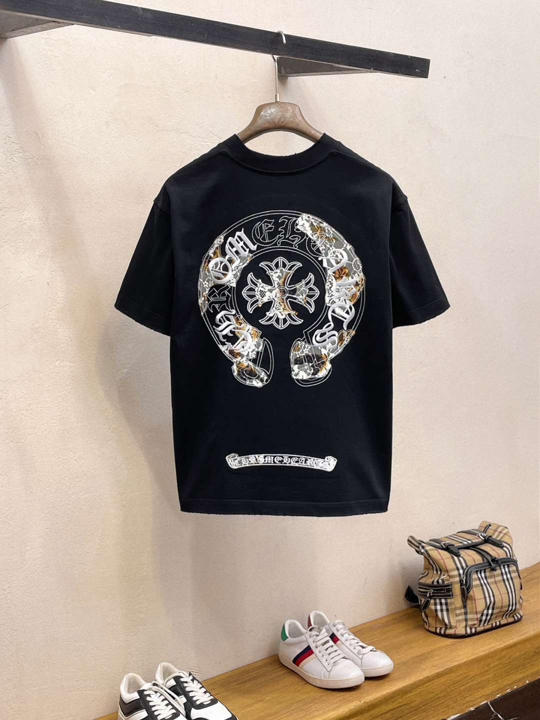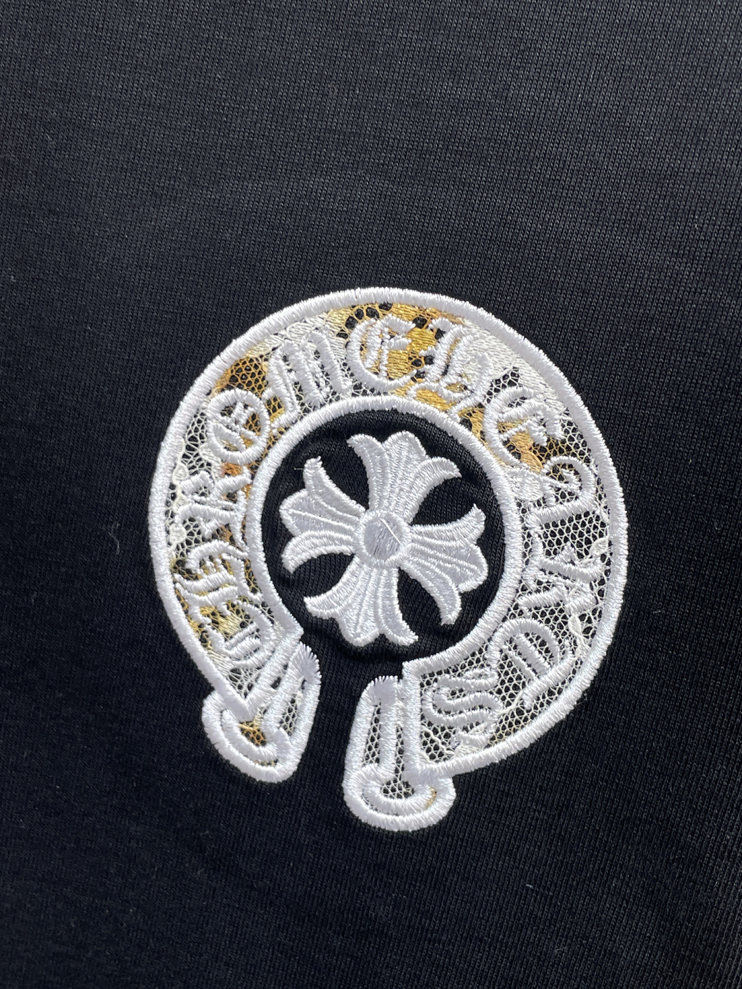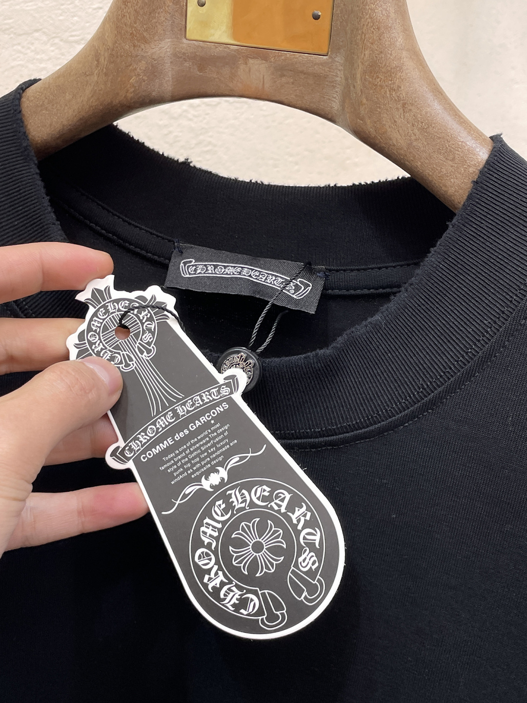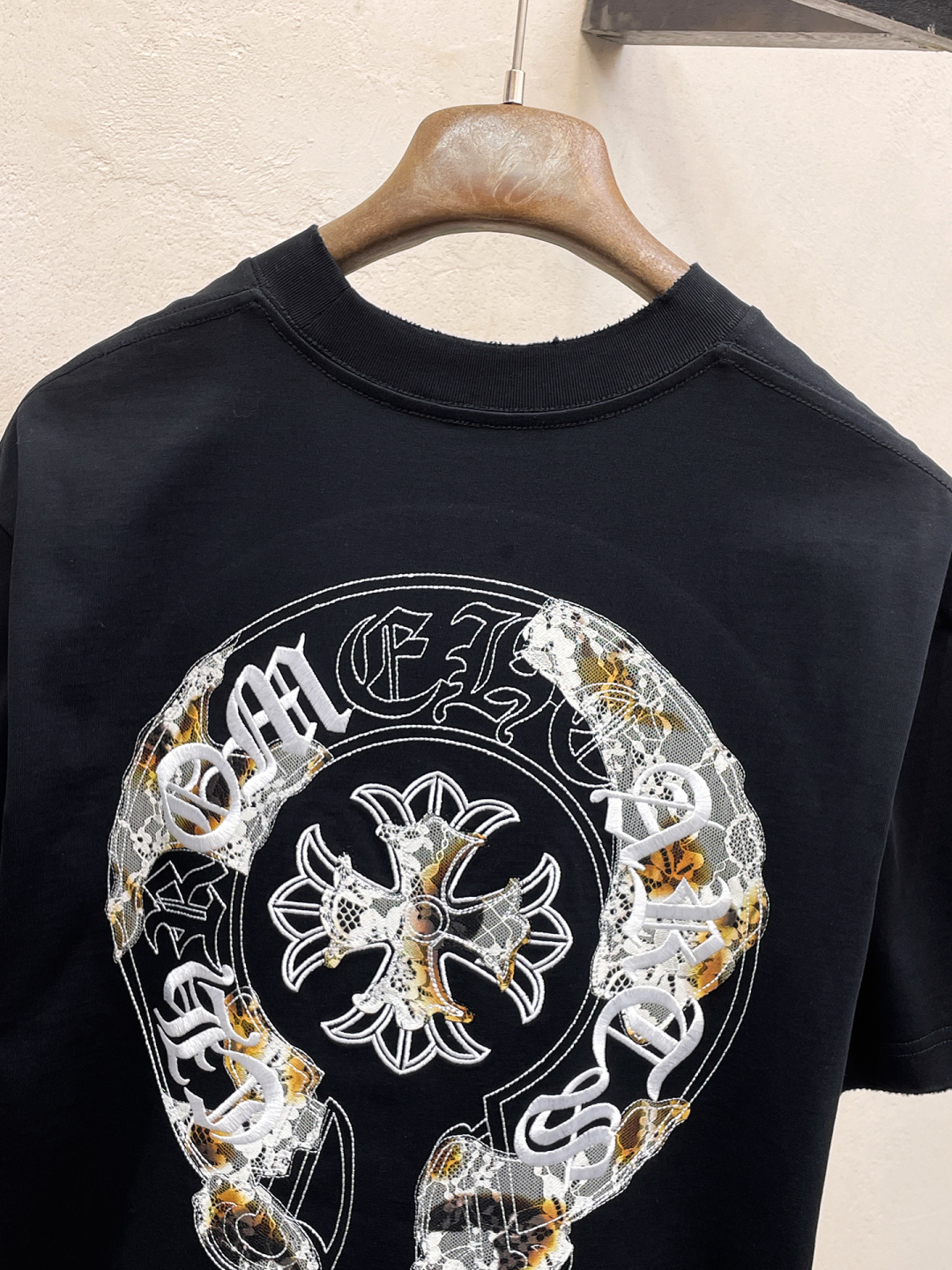 Details: Crew-neck short-sleeve T-shirt with embroidery and frayed edges, made of cotton fabric