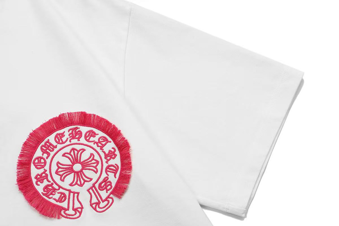 Details: High-quality unisex T-shirt with embroidered horseshoe logos on the front and back, heavy-duty wash, and premium fabric. Available in black and white.