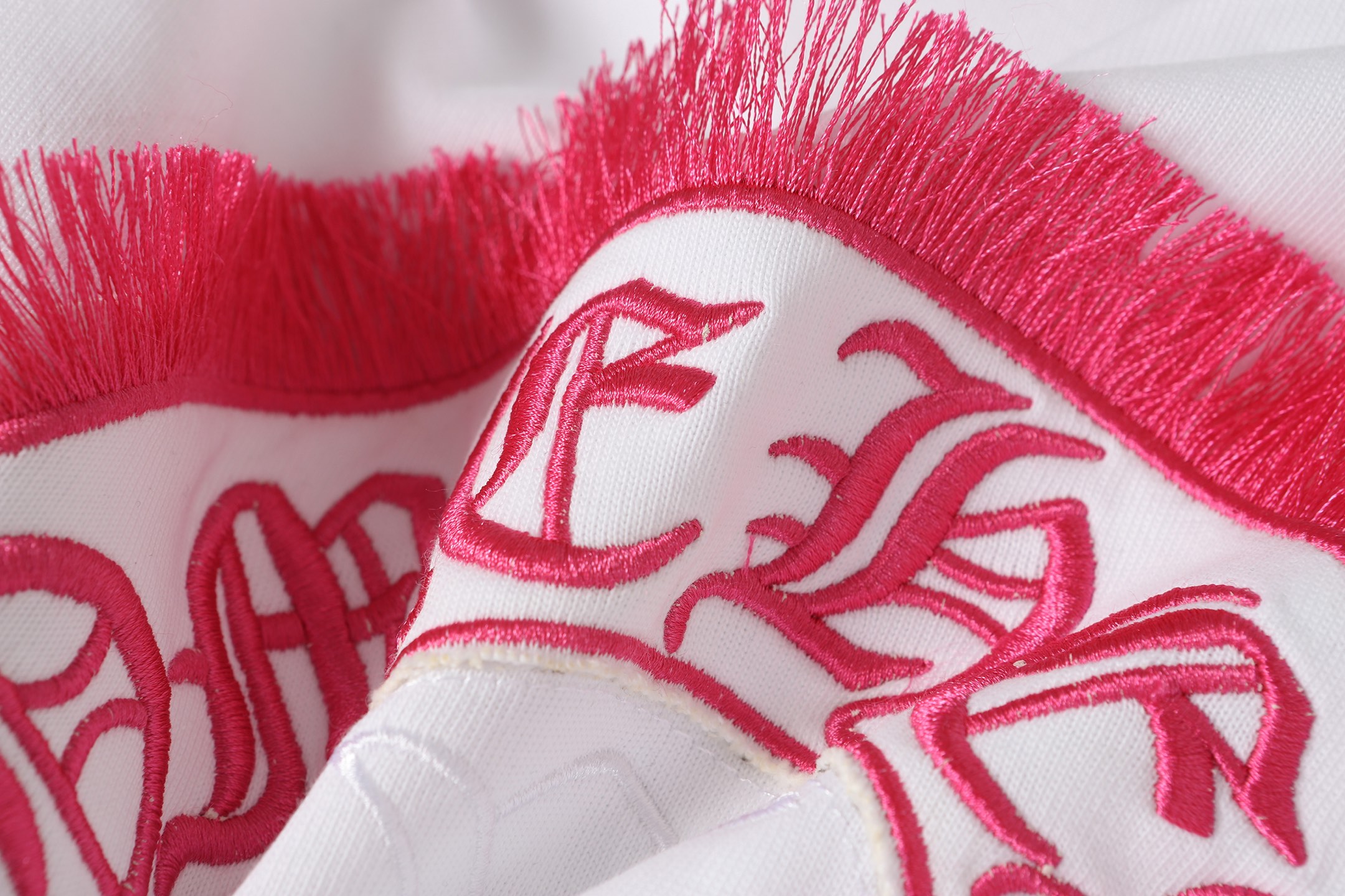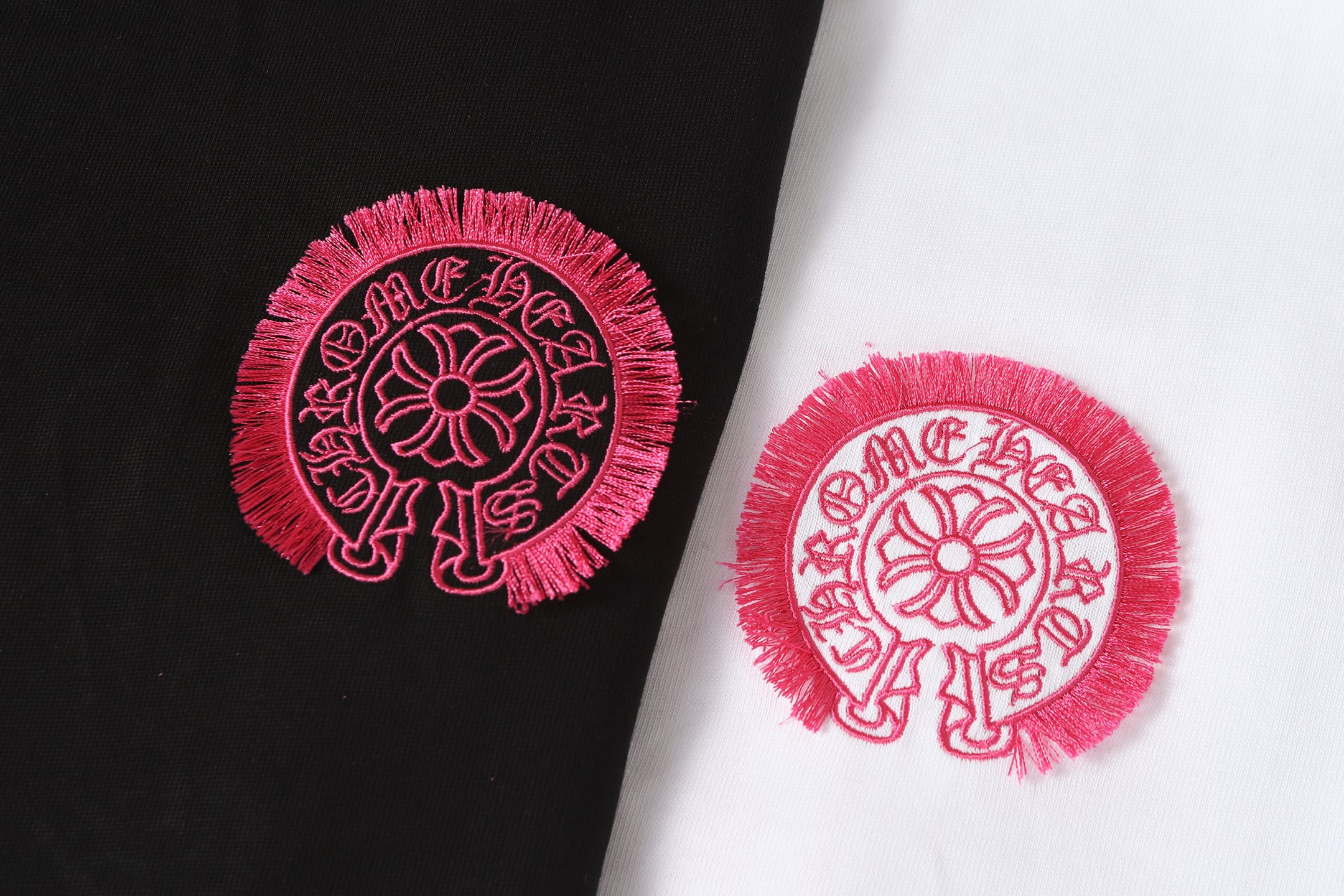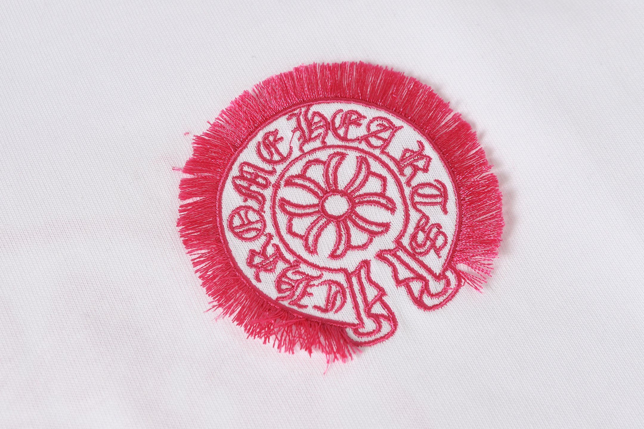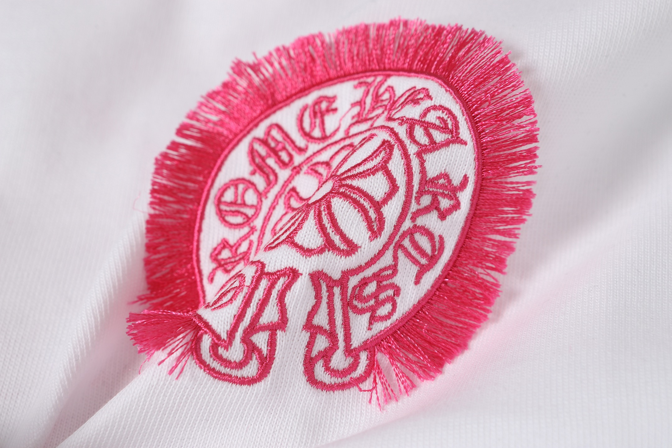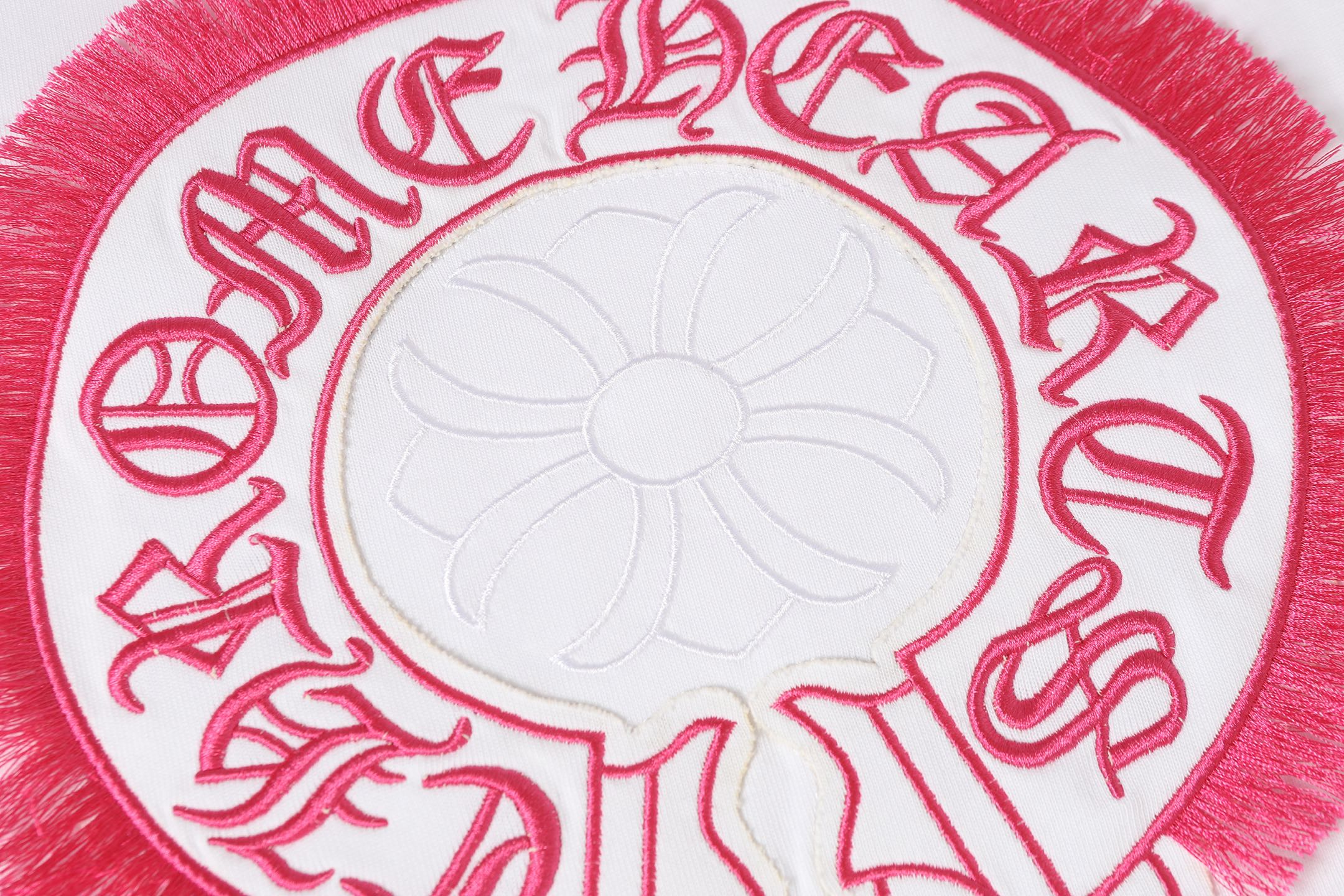Details: Custom embroidered tassel round - neck short - sleeve T - shirt, unisex and loose - fitting