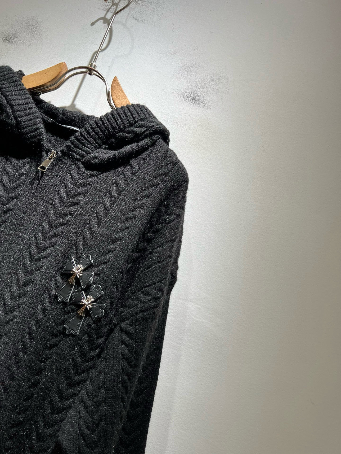 Details: Comfortable knitted woolen sweater with a leather logo, ideal for coordinating with shoes.
