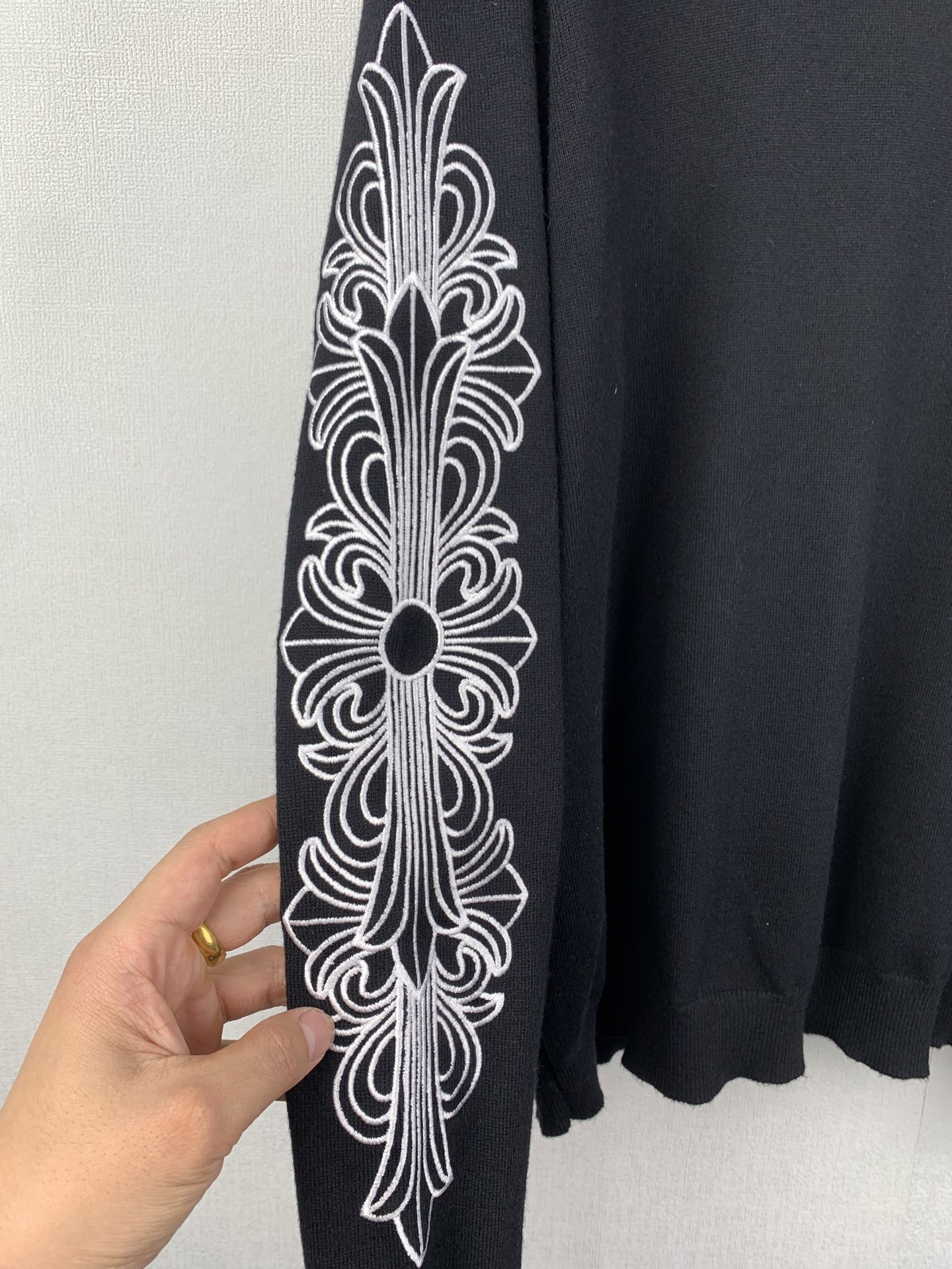 Details: Blended wool and cashmere sweater with precise embroidery and finishing