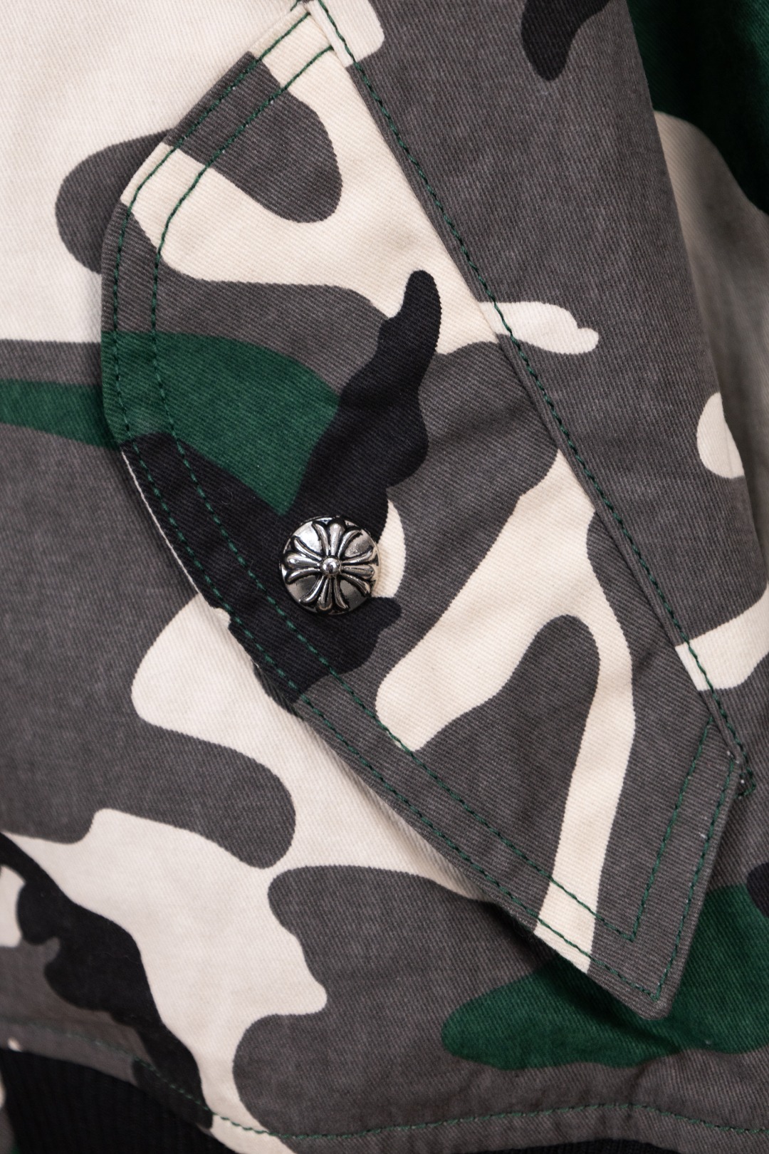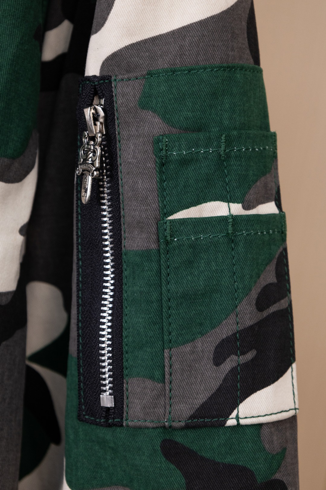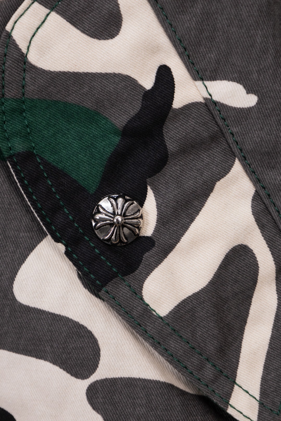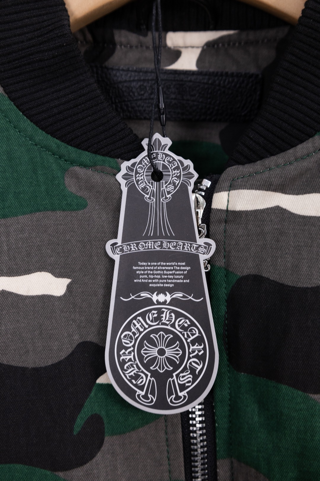 Details: Hanging Photo, Exclusive Urban Limited Edition, Custom-Made Camouflage Denim, Imported Leather, and Silver Accessories