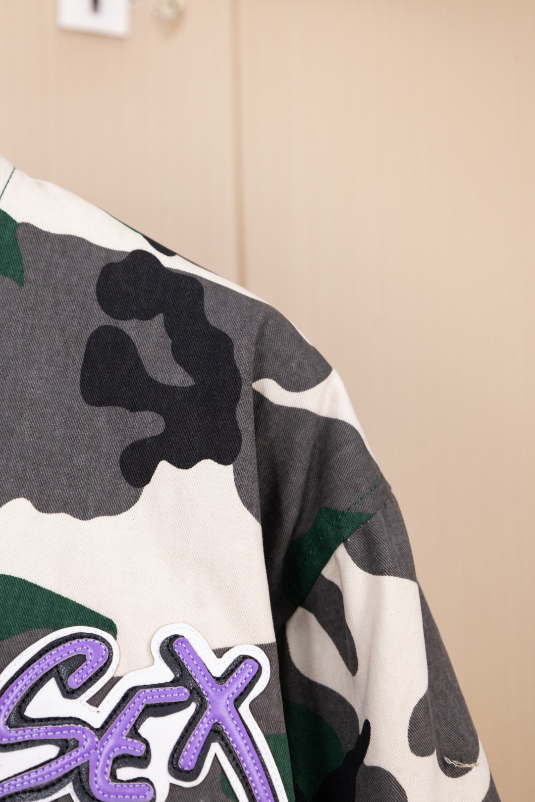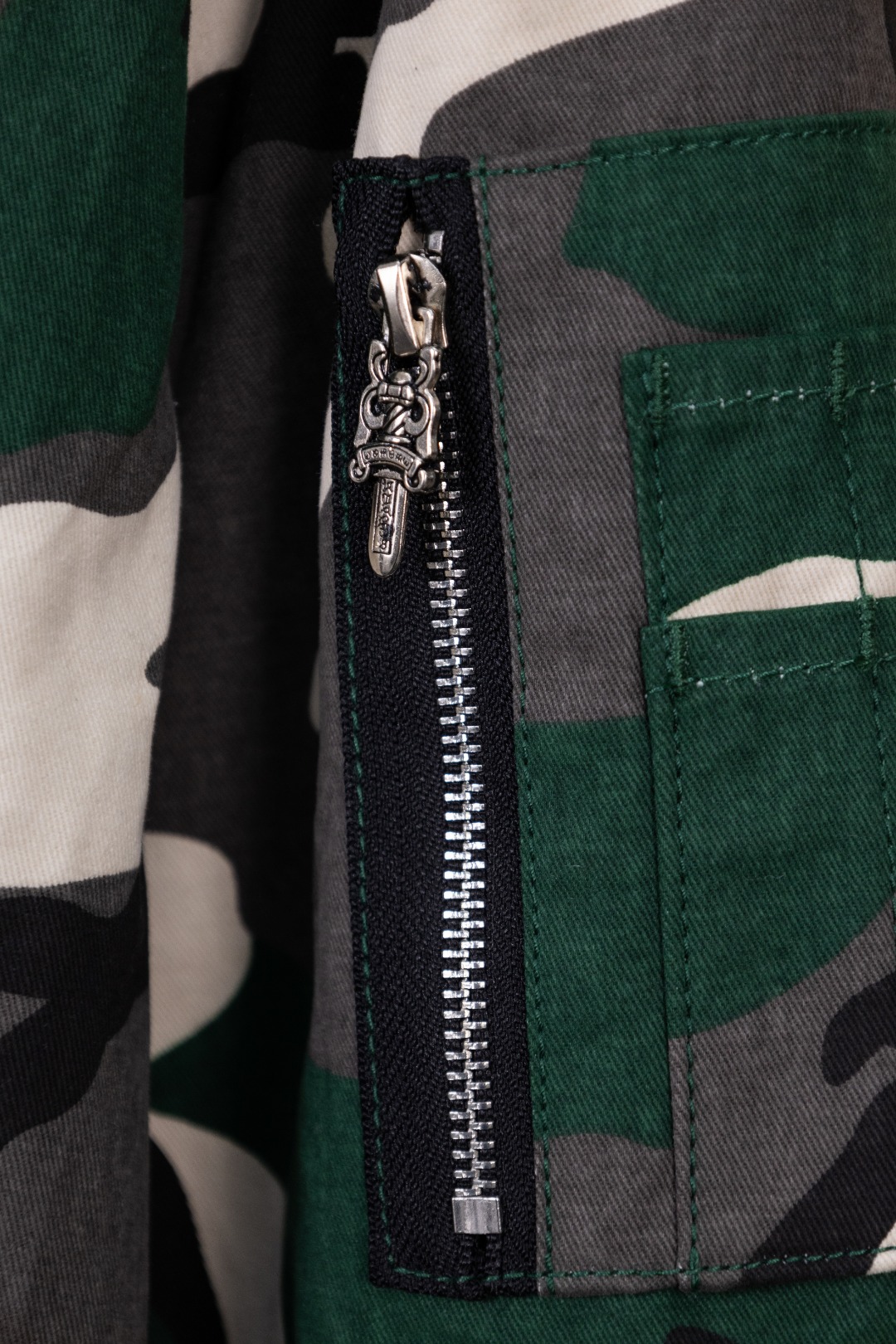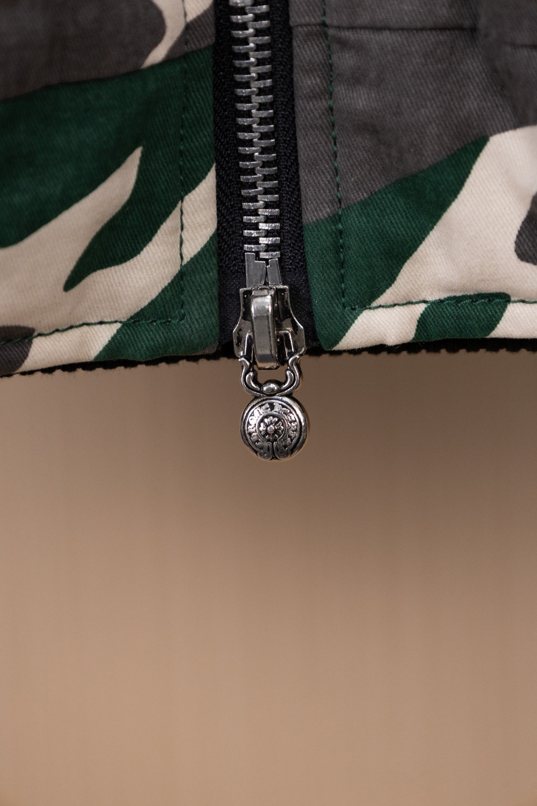 Details: Hanging Photo, Exclusive Urban Limited Edition, Custom-Made Camouflage Denim, Imported Leather, and Silver Accessories