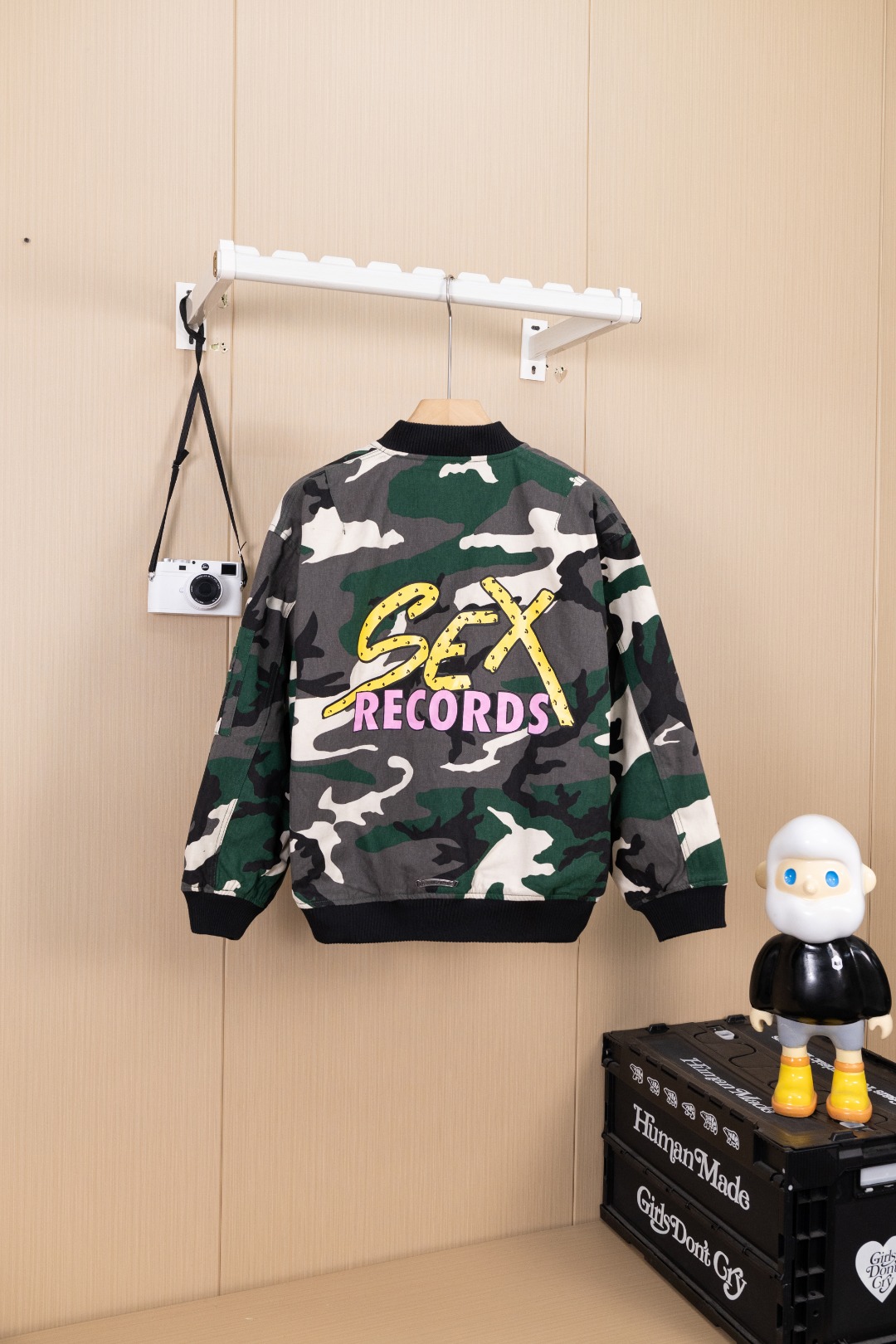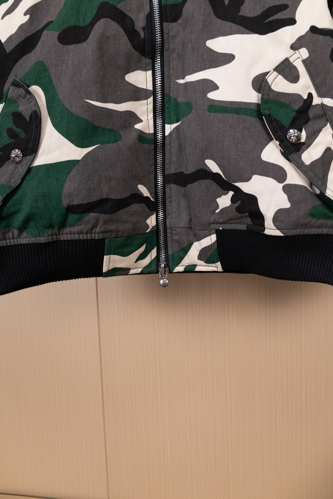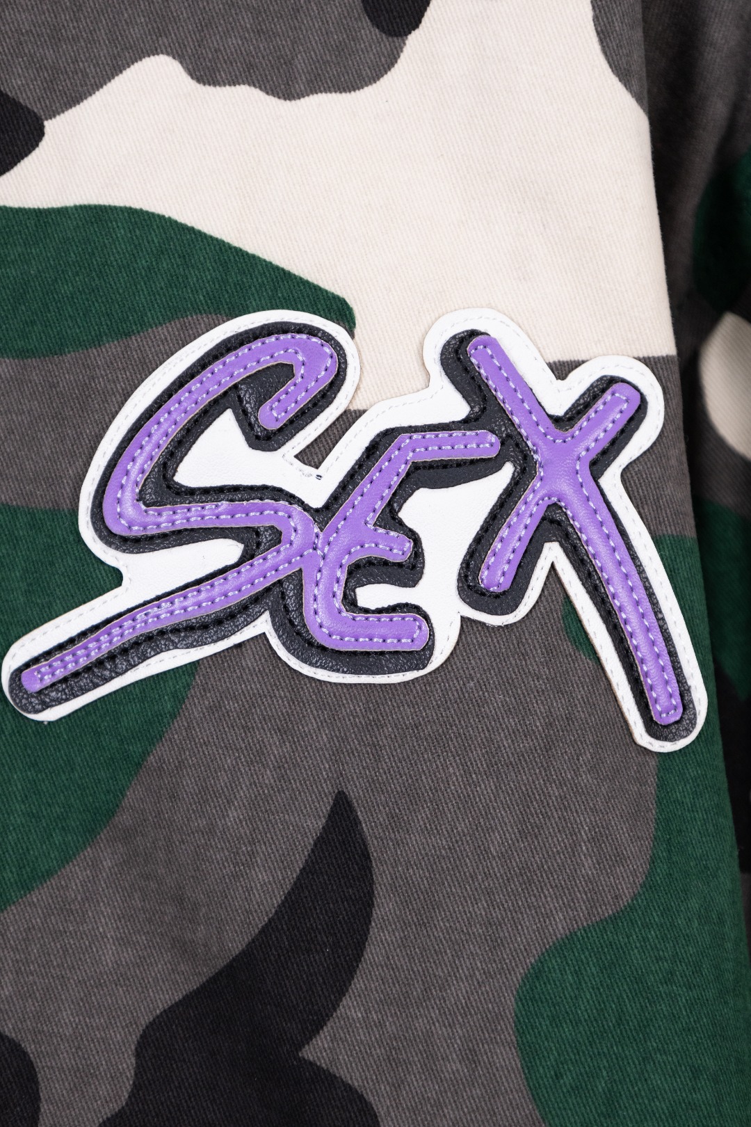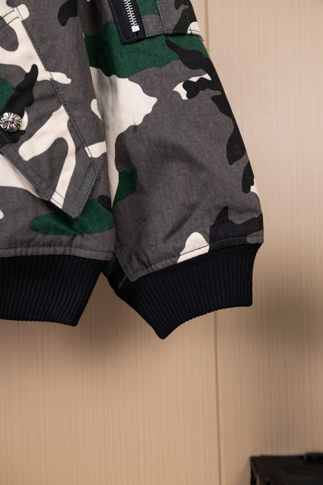 Details: Hanging Photo, Exclusive Urban Limited Edition, Custom-Made Camouflage Denim, Imported Leather, and Silver Accessories