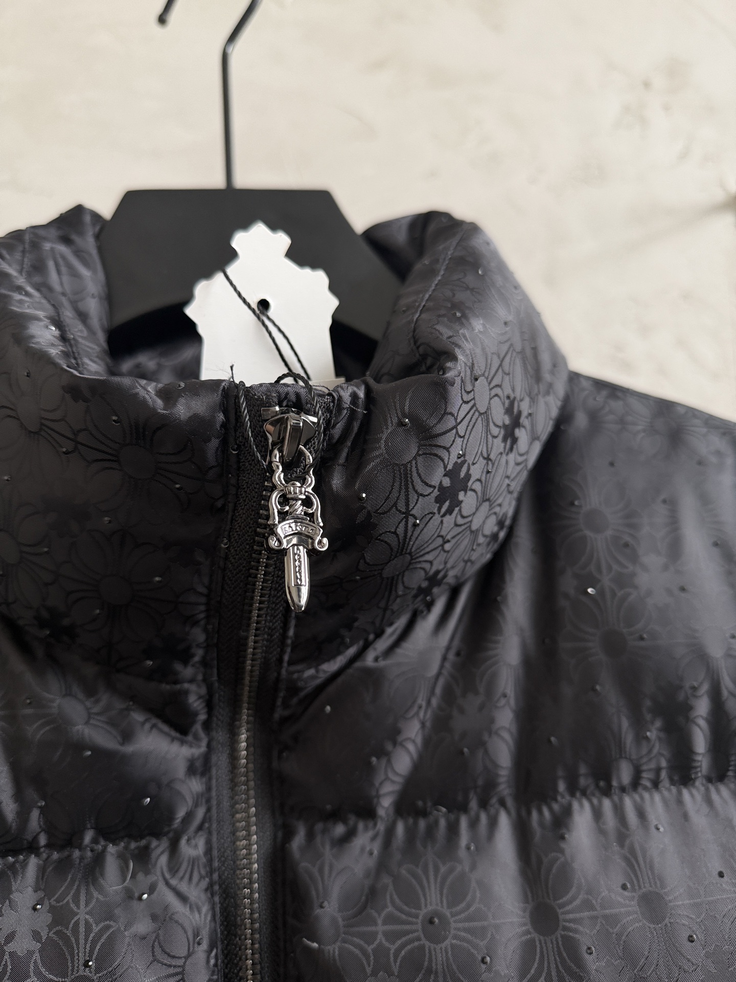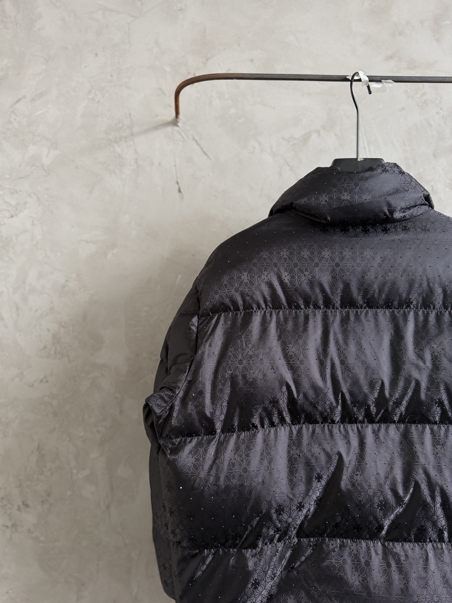 Details: Down jacket with cross pattern and diamond style, warm and stylish
