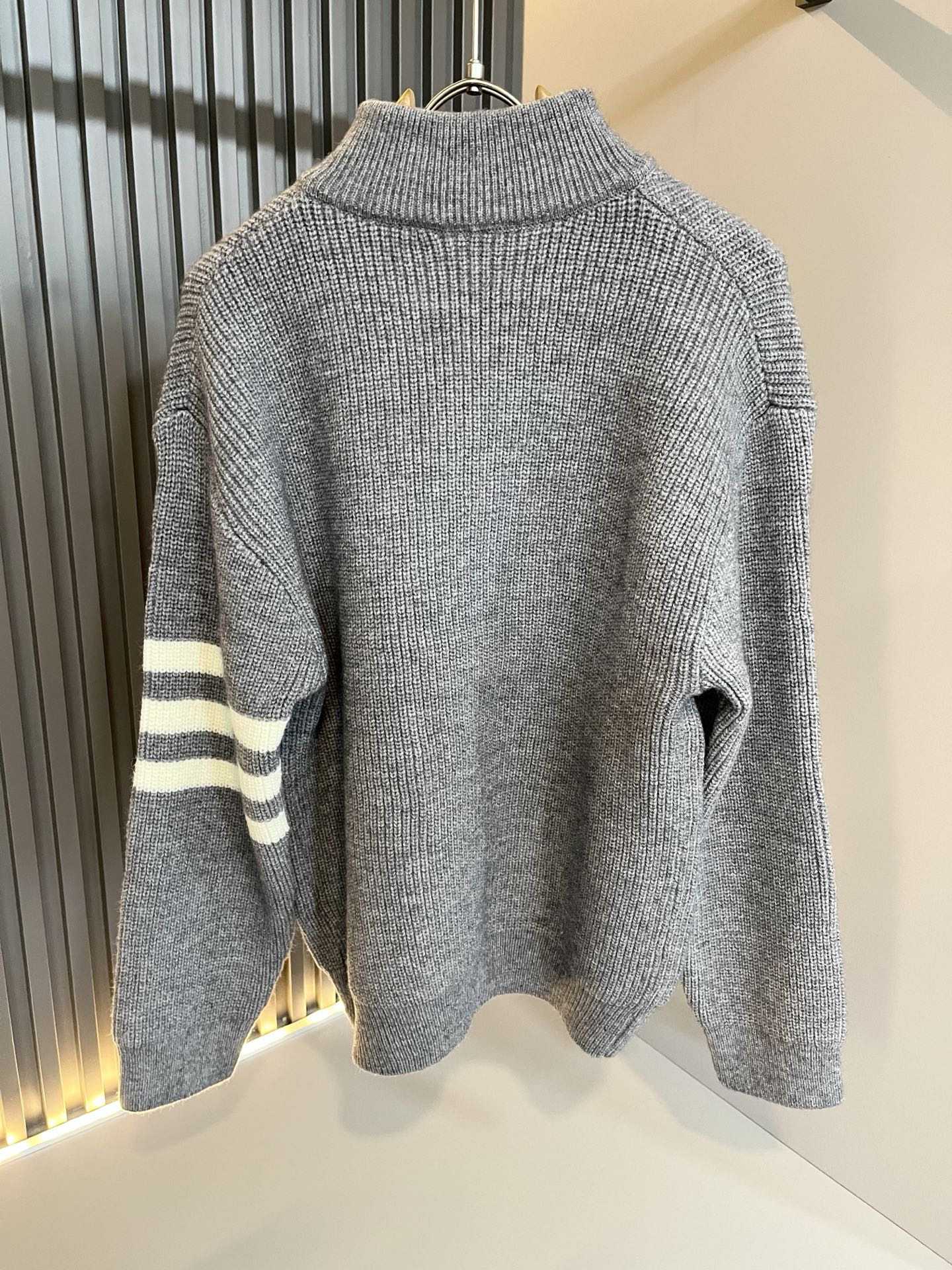 Details: Unisex knitted wool cardigan that is soft, stylish and features classic stripes