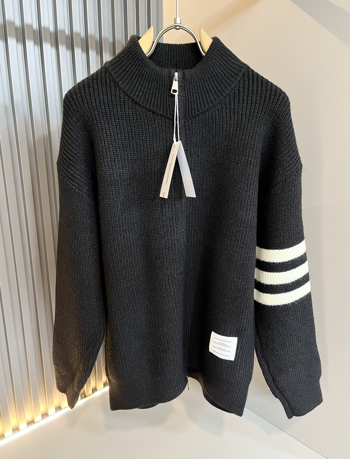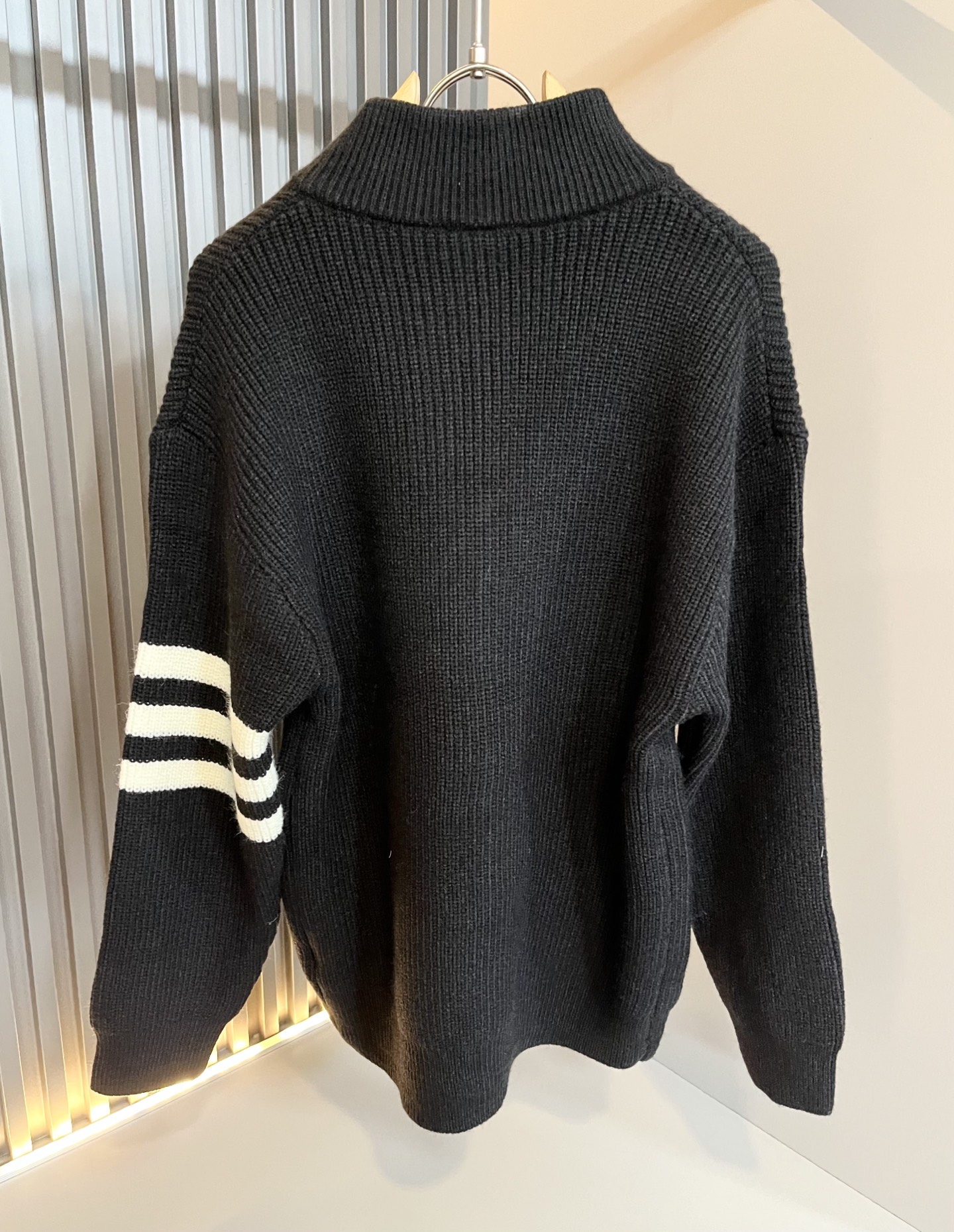 Details: Unisex knitted wool cardigan that is soft, stylish and features classic stripes