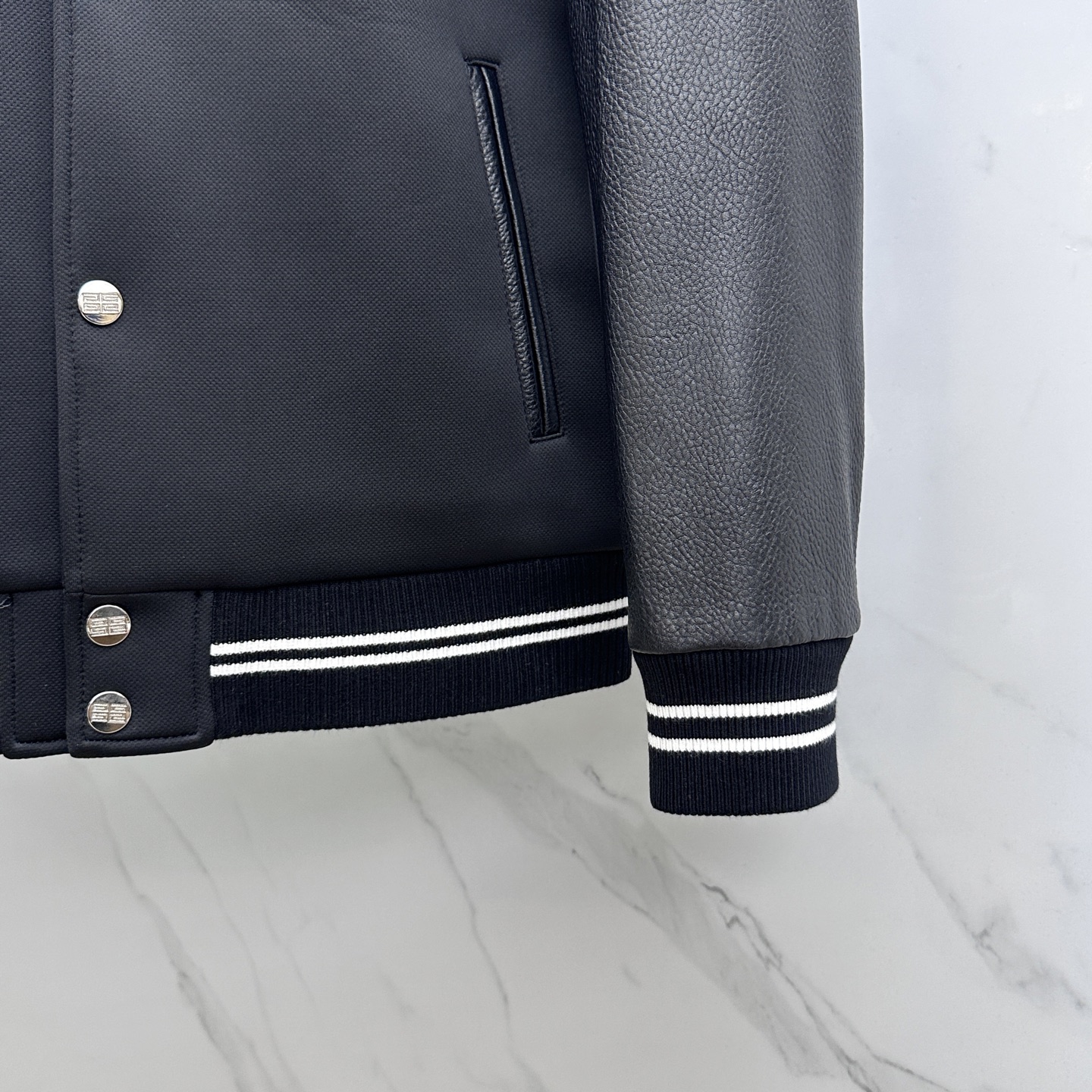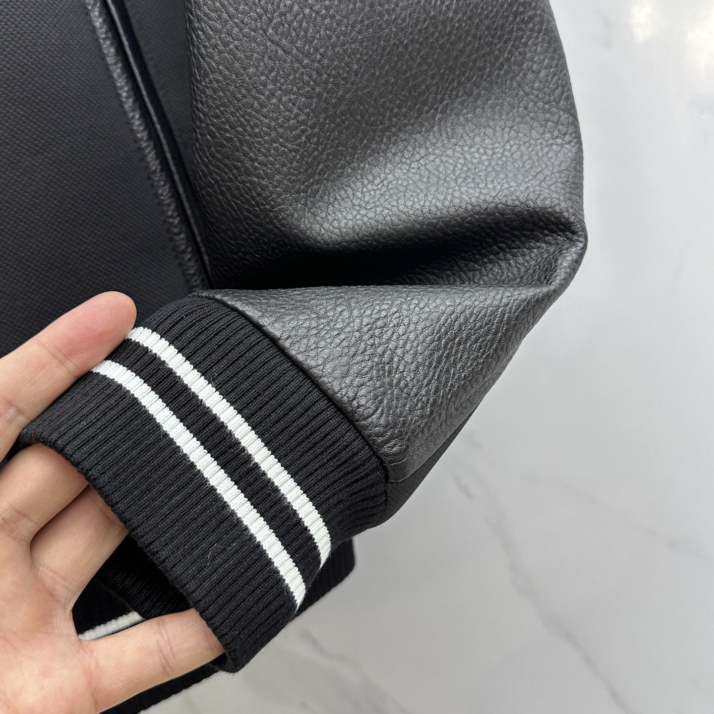 Details: High - quality early spring casual baseball - collar jacket made of custom fabric with leather sleeves, breathable and comfortable.