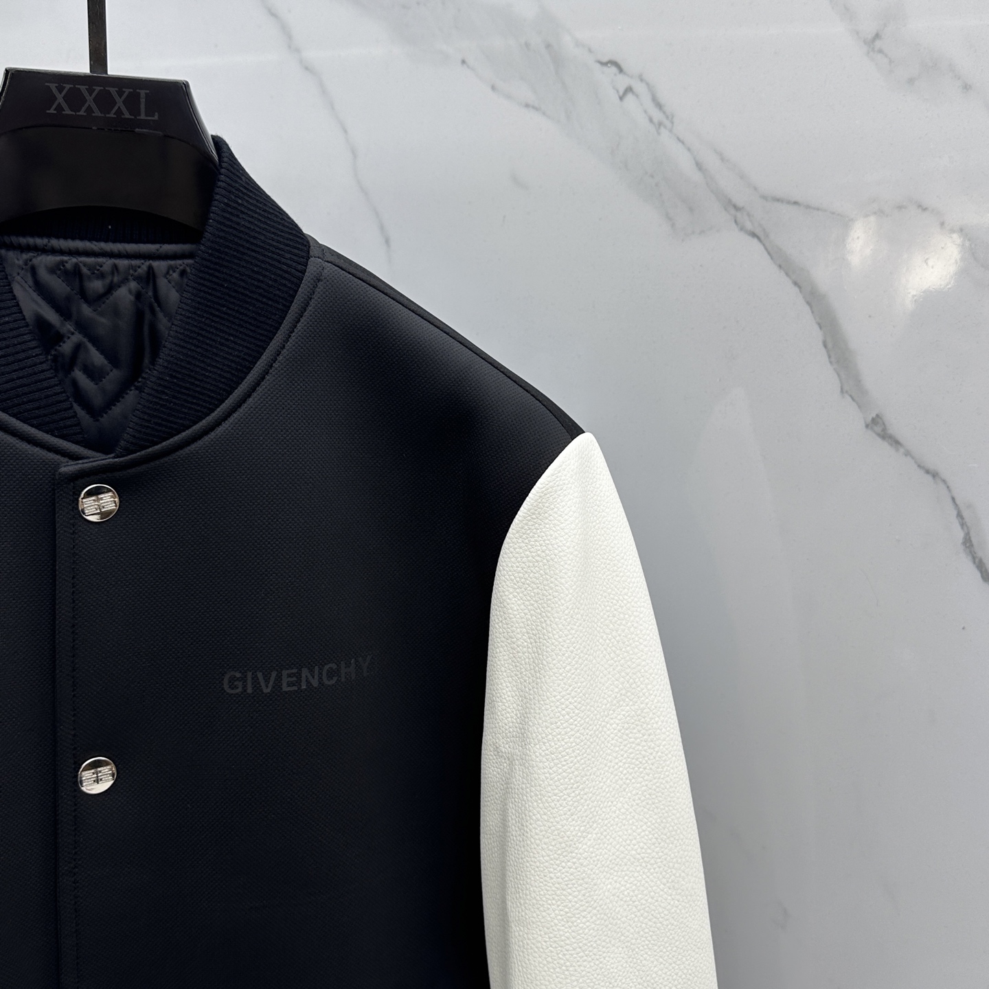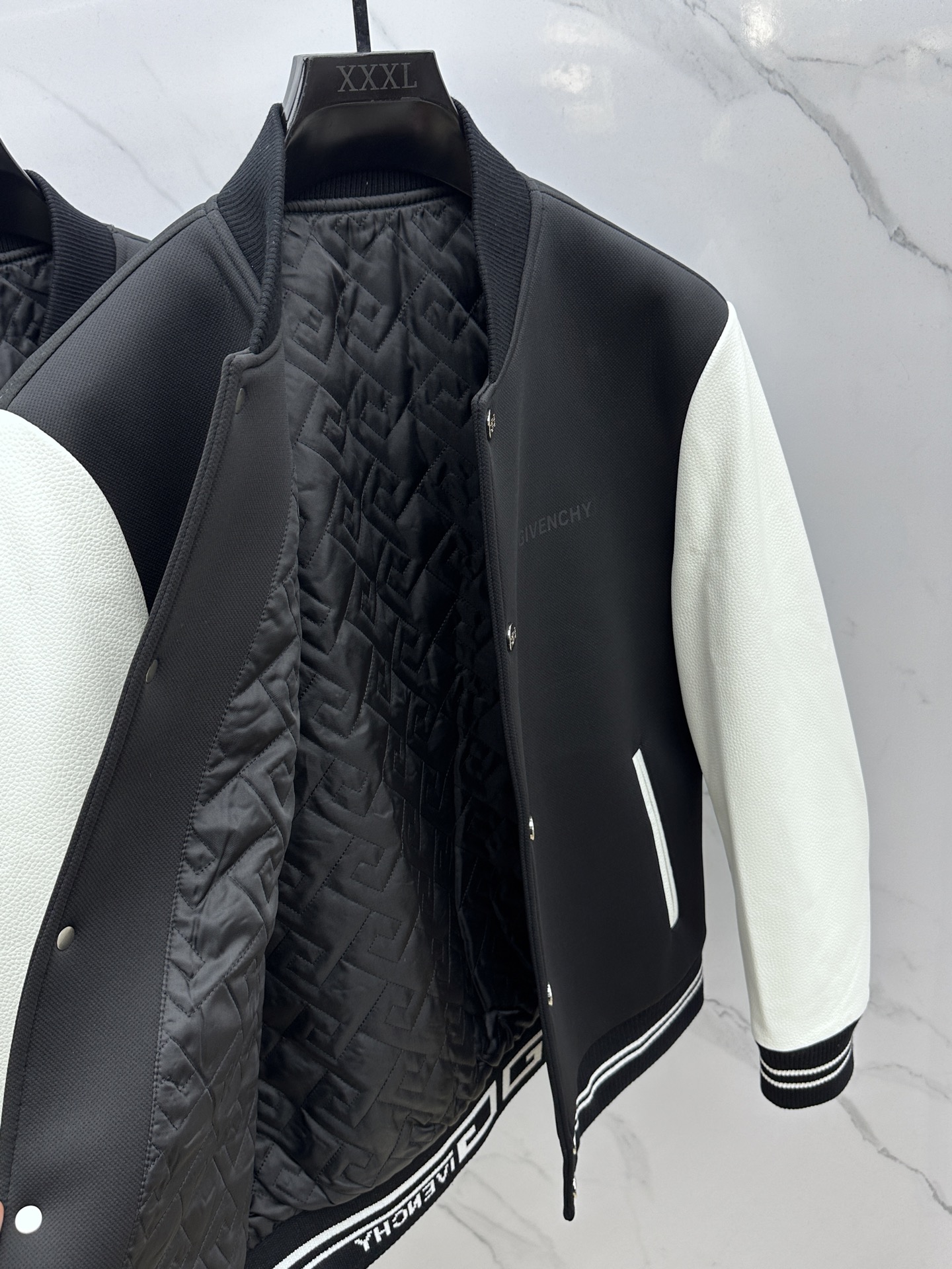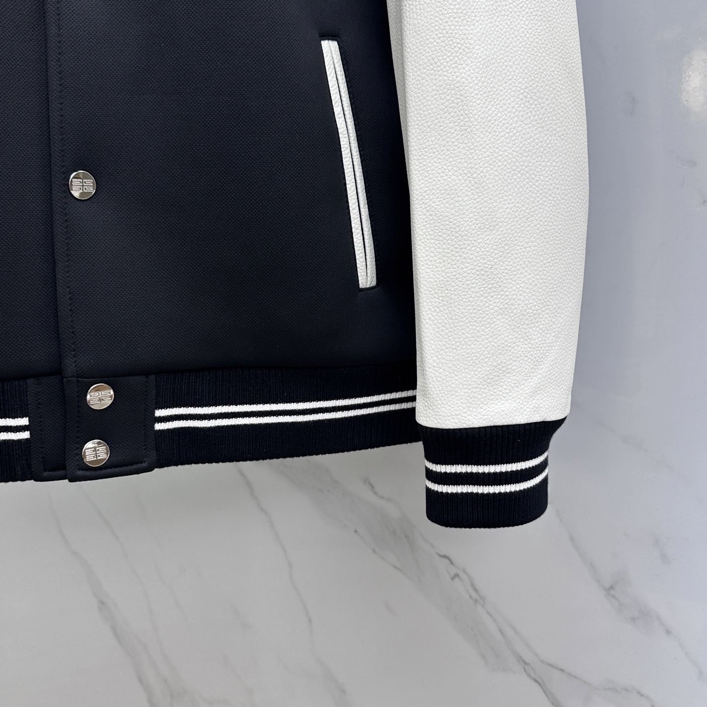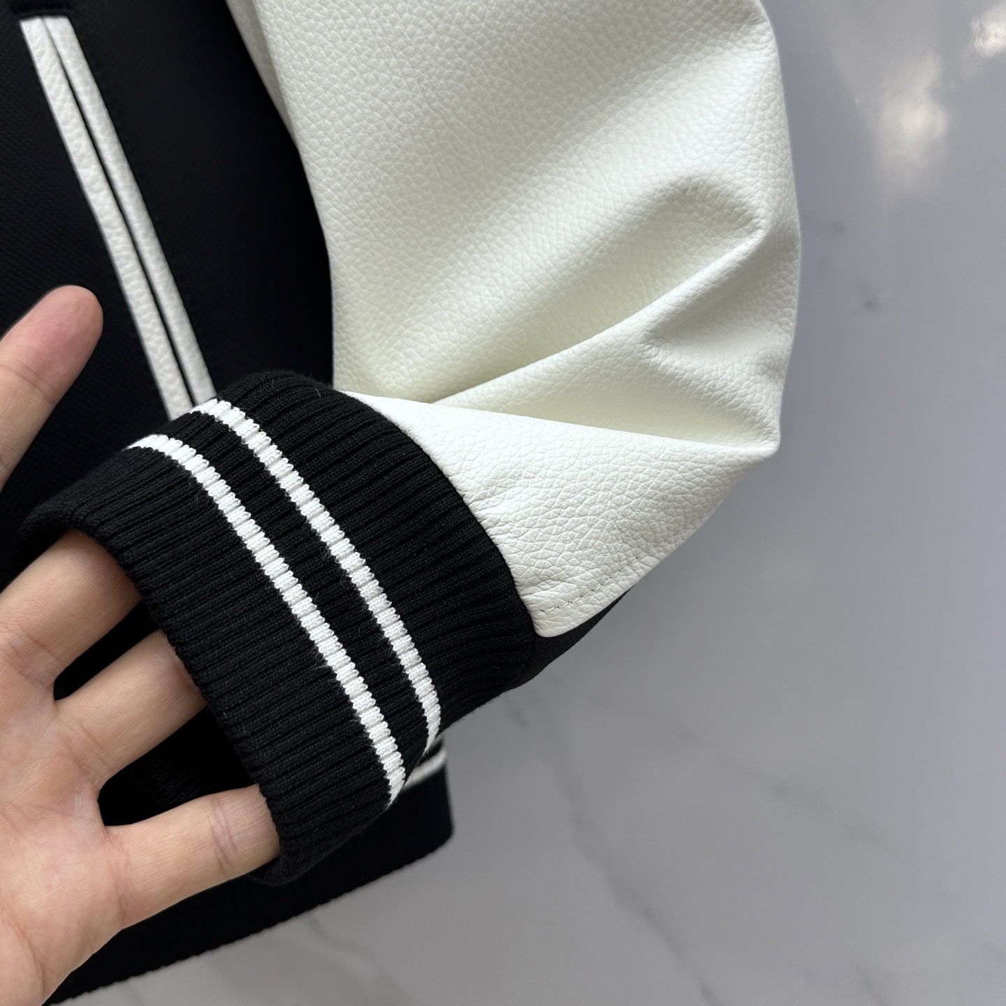 Details: High - quality early spring casual baseball - collar jacket made of custom fabric with leather sleeves, breathable and comfortable.