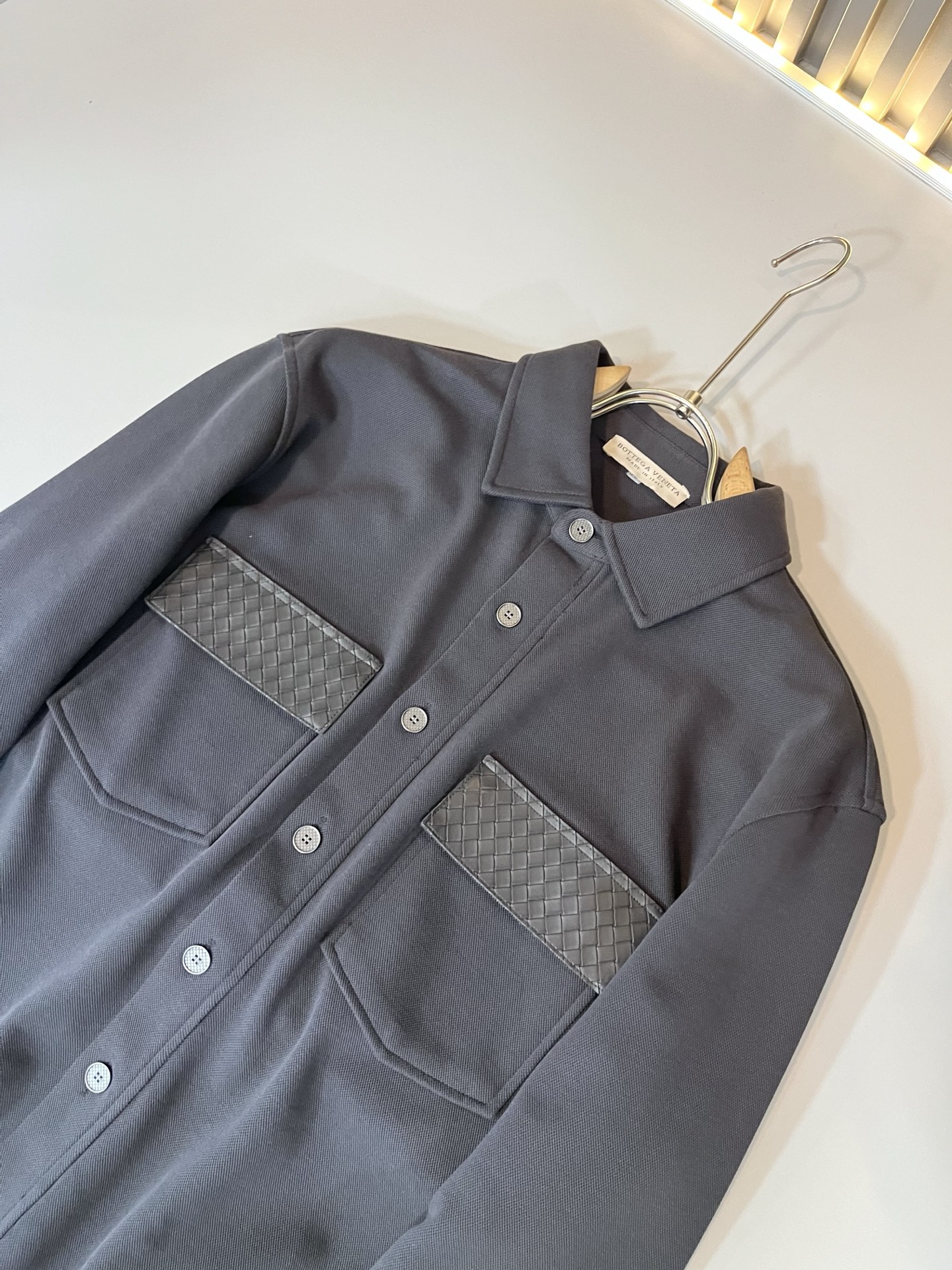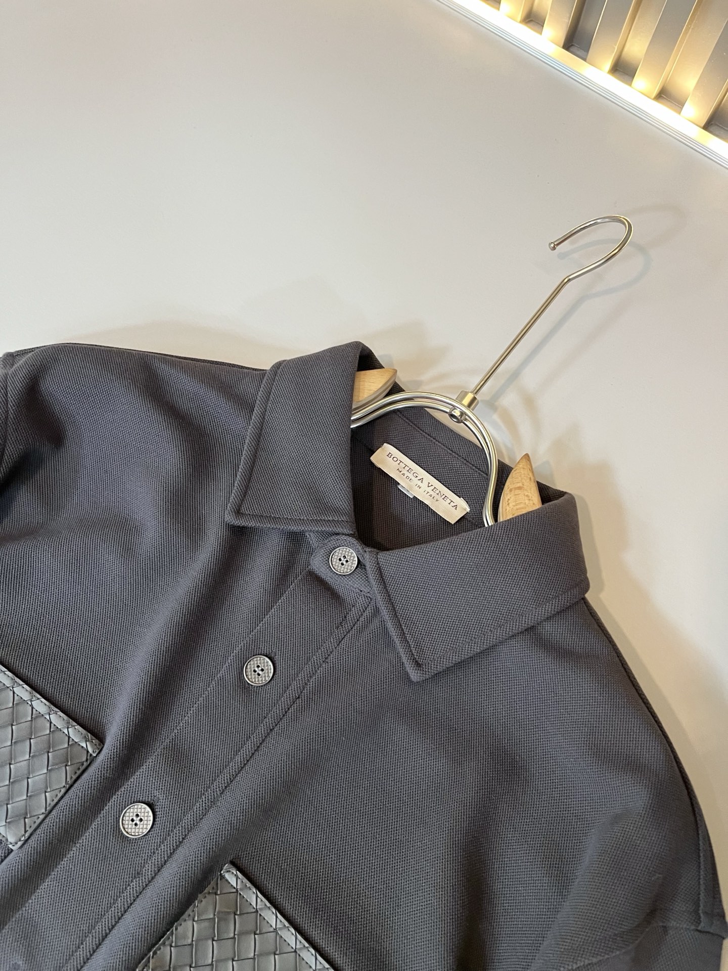 here:home > MENS > Bottega Veneta > Top Bottega (M) > Bottega Veneta Solid Color Shirt with Leather Logo Design
