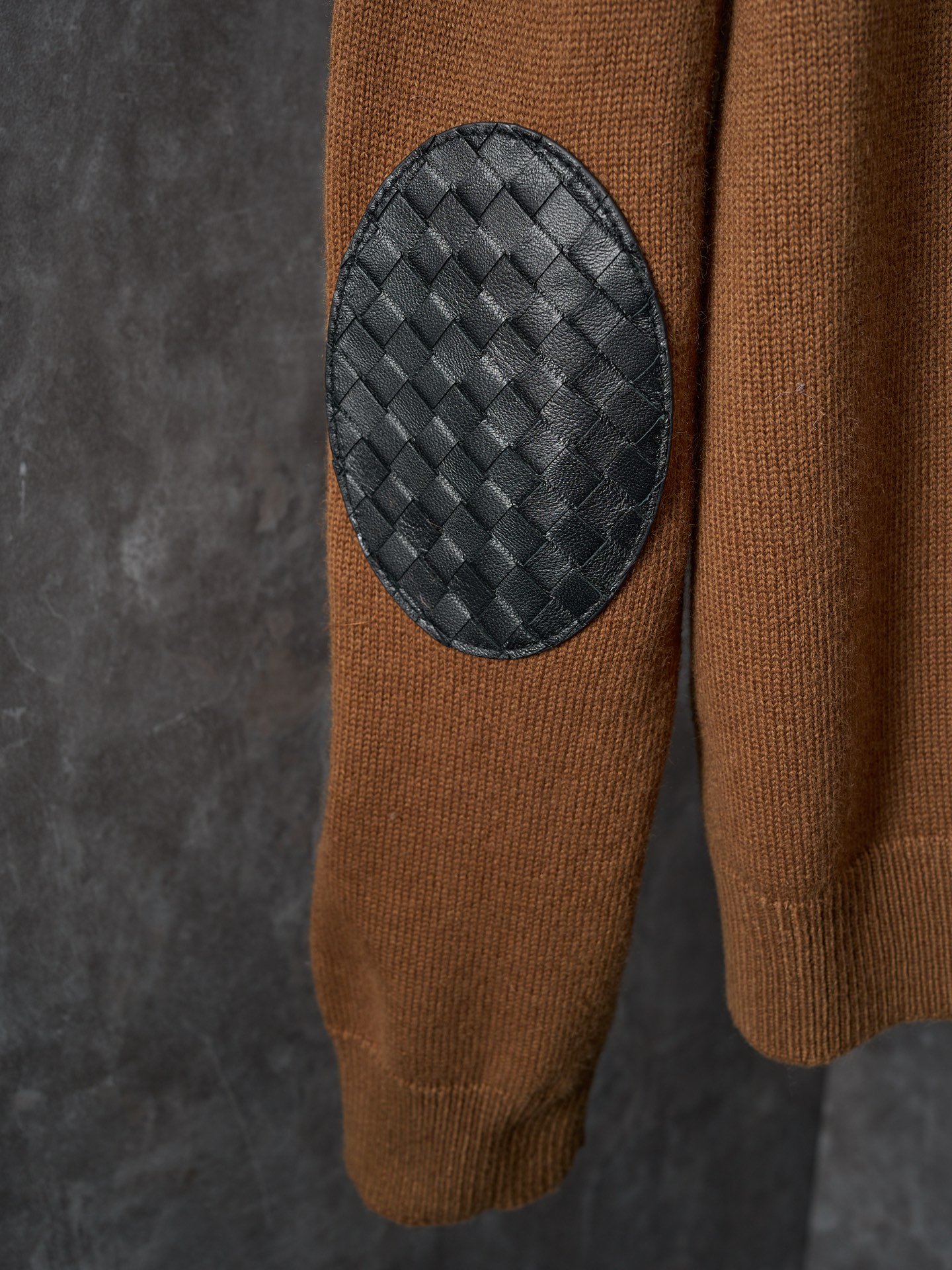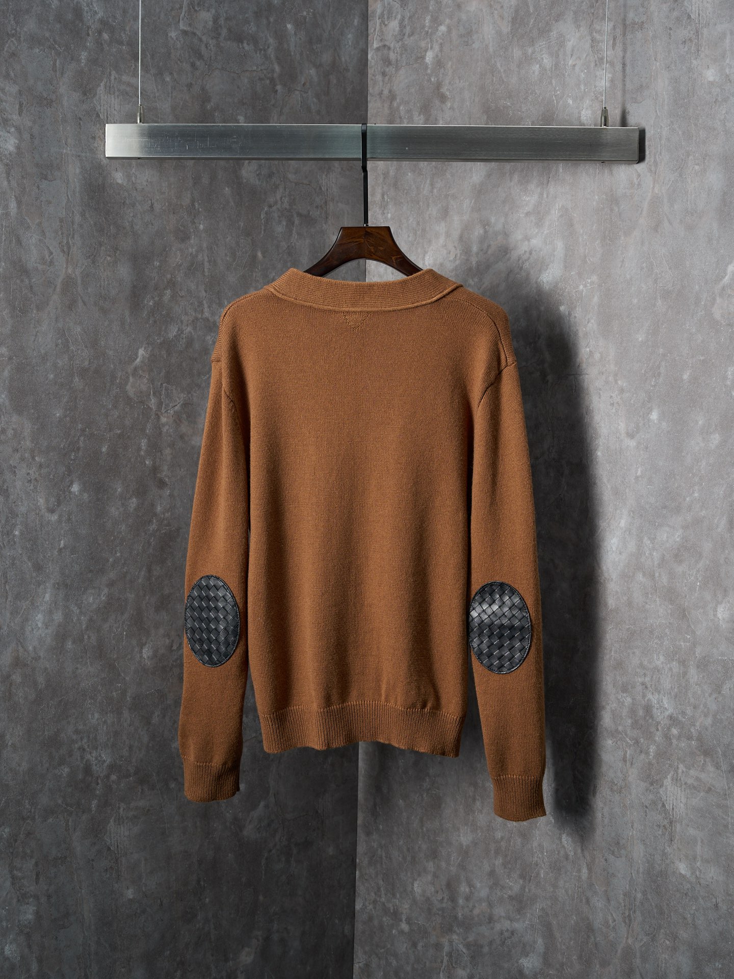 Details: Cashmere sweater combined with leather, boasting a unique design and a loose fit, pre-washed for softness