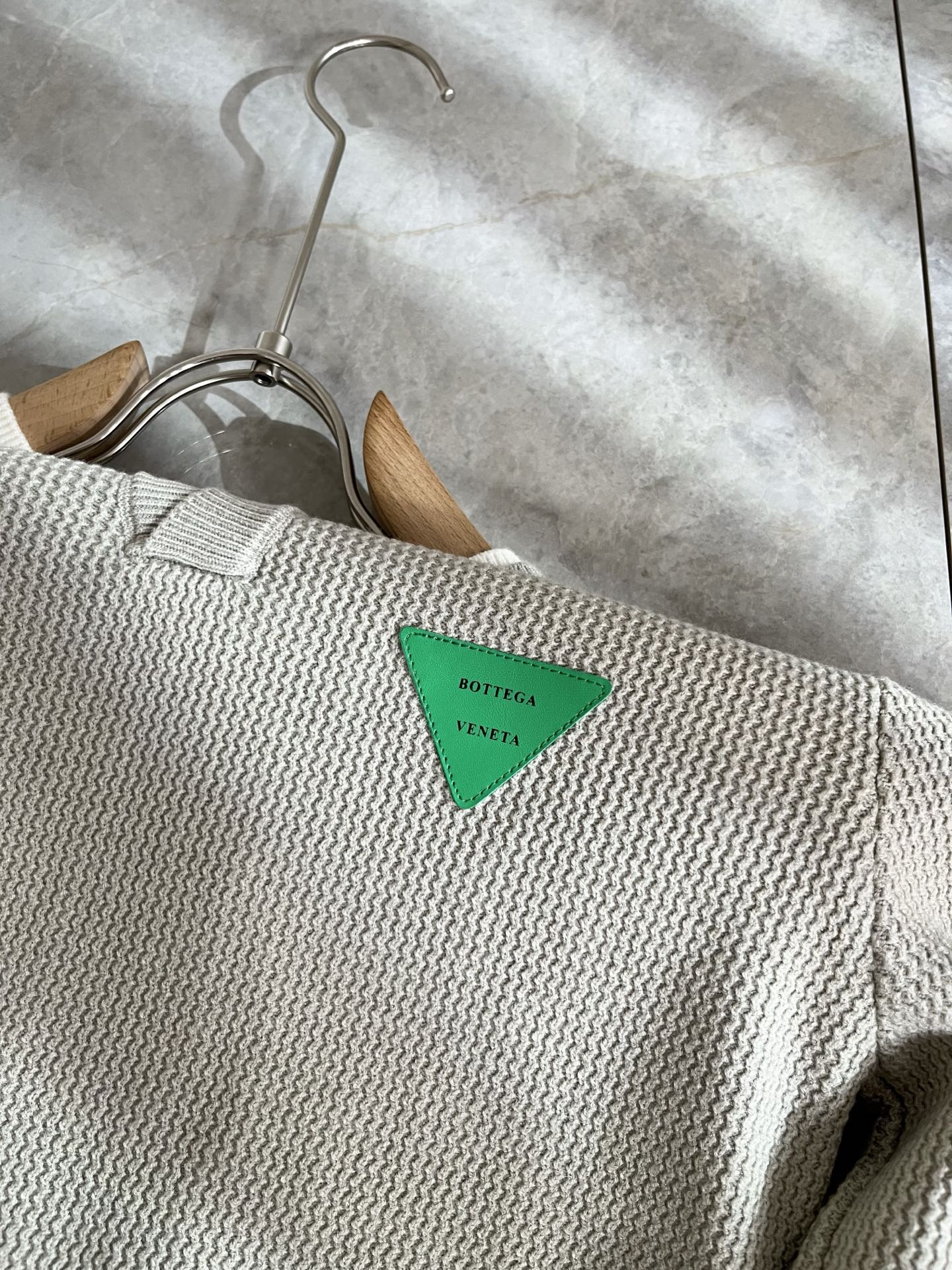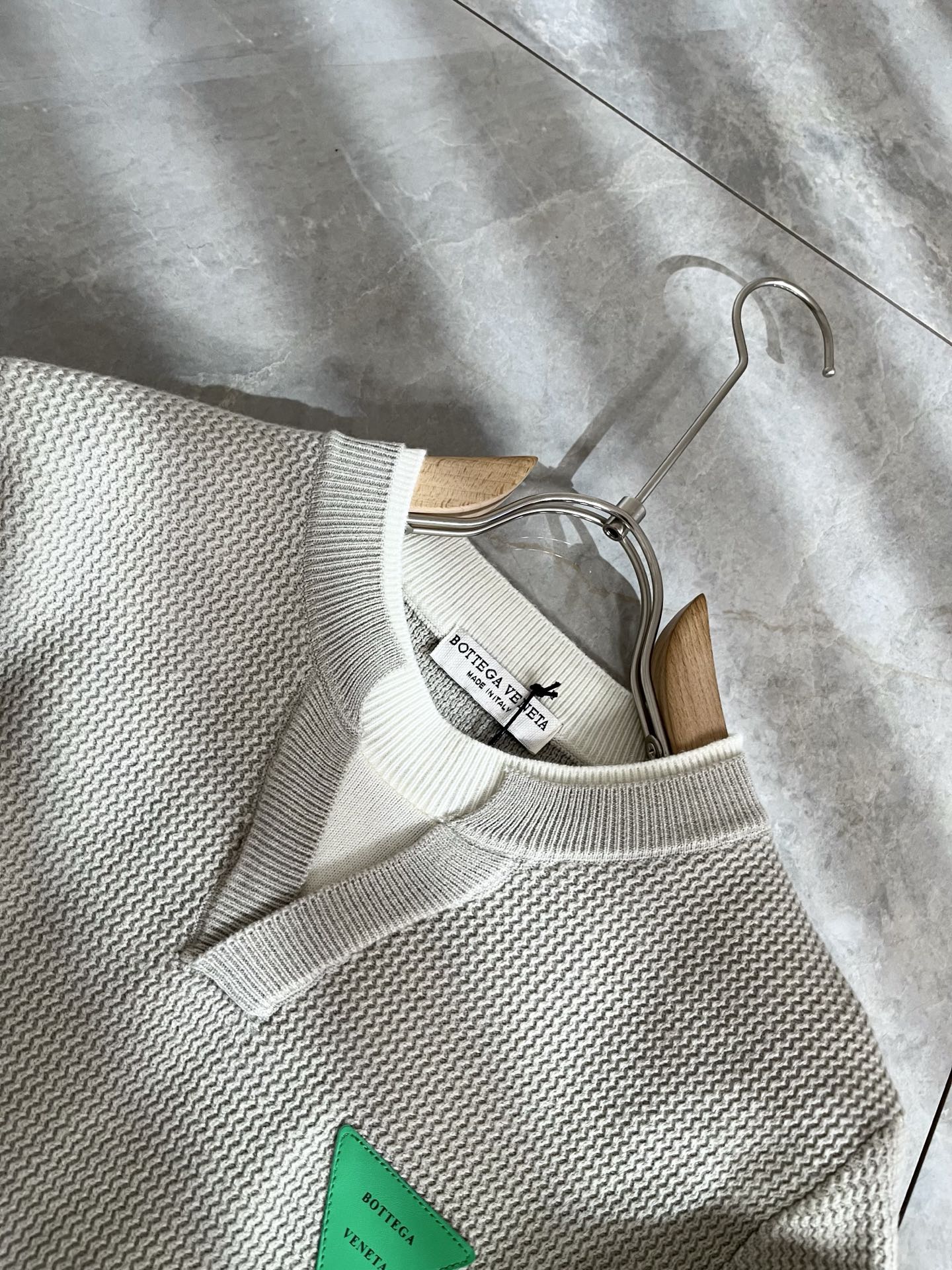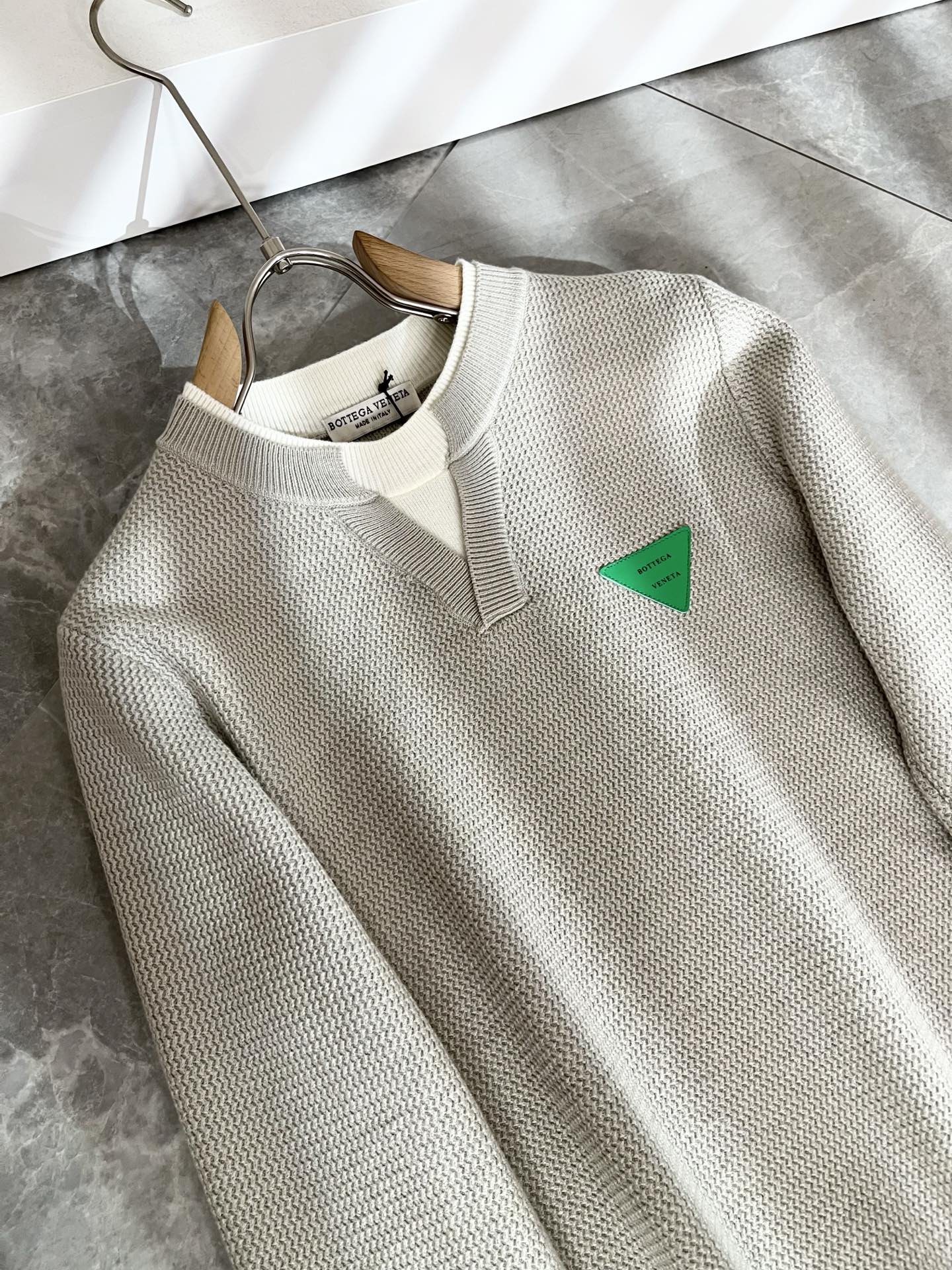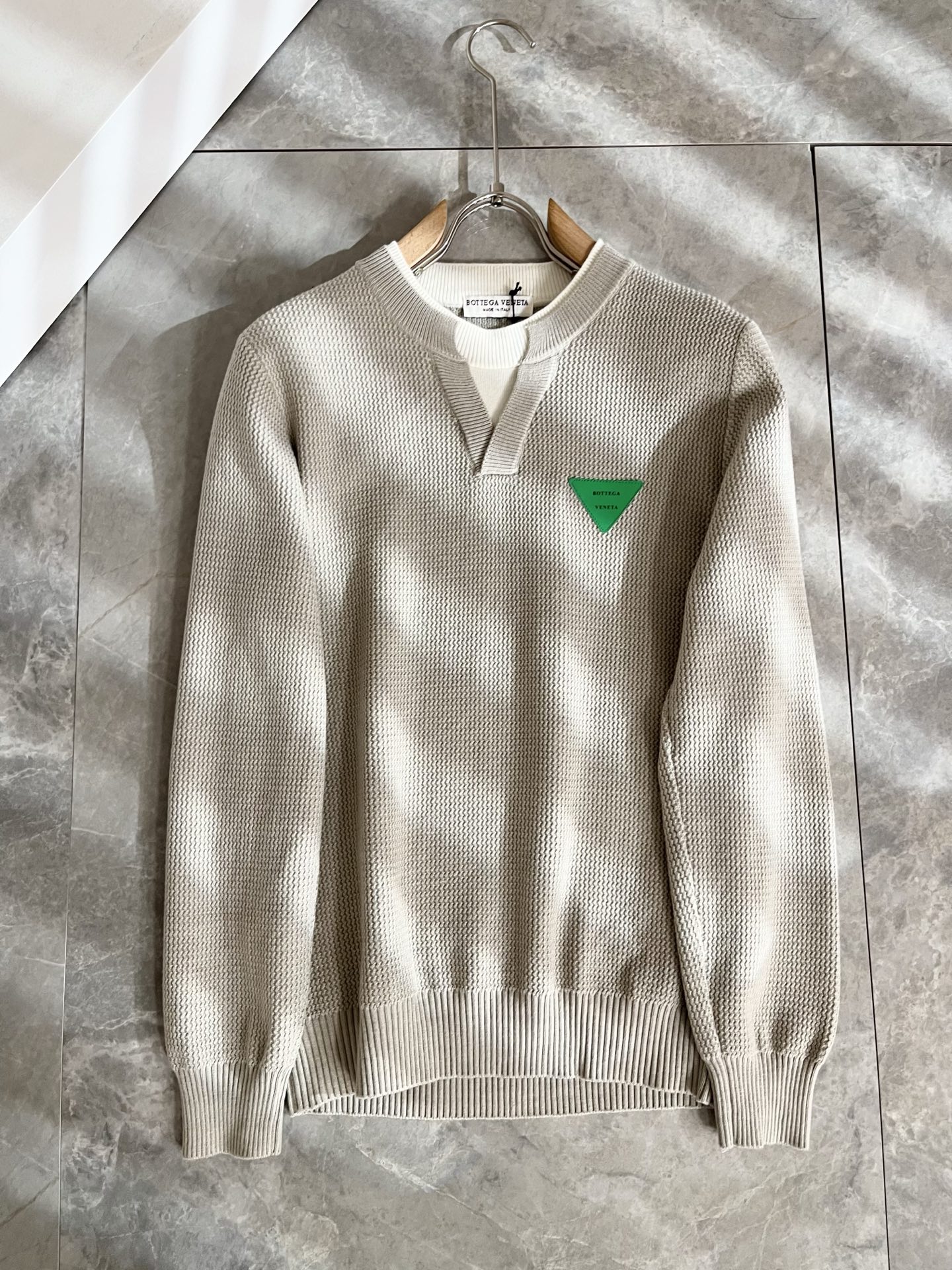 Details: Solid-color knitted wool sweater with leather logo, high-quality and stylish