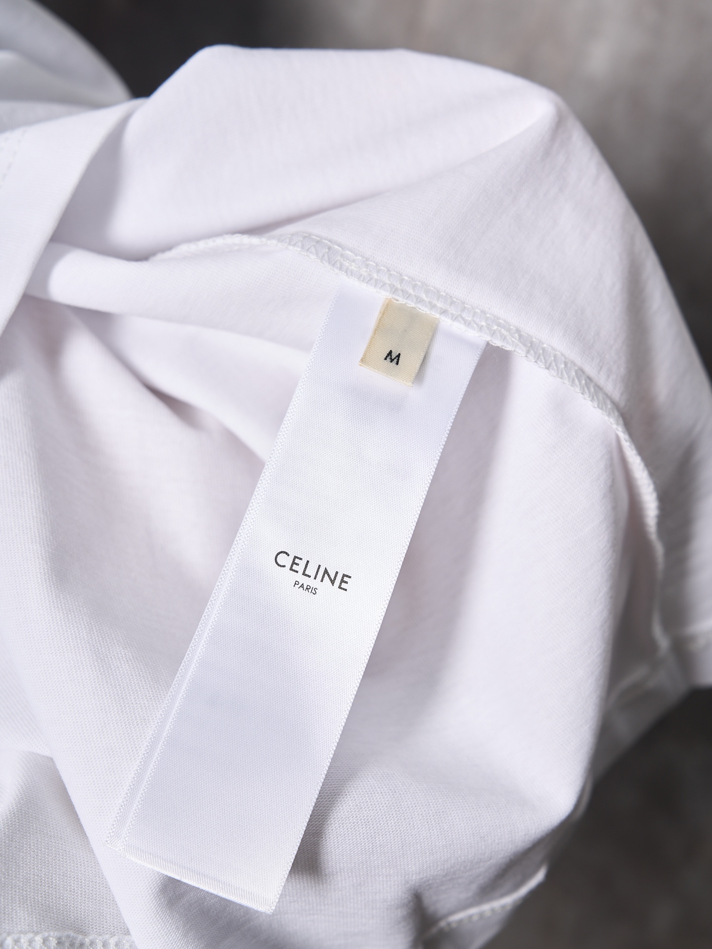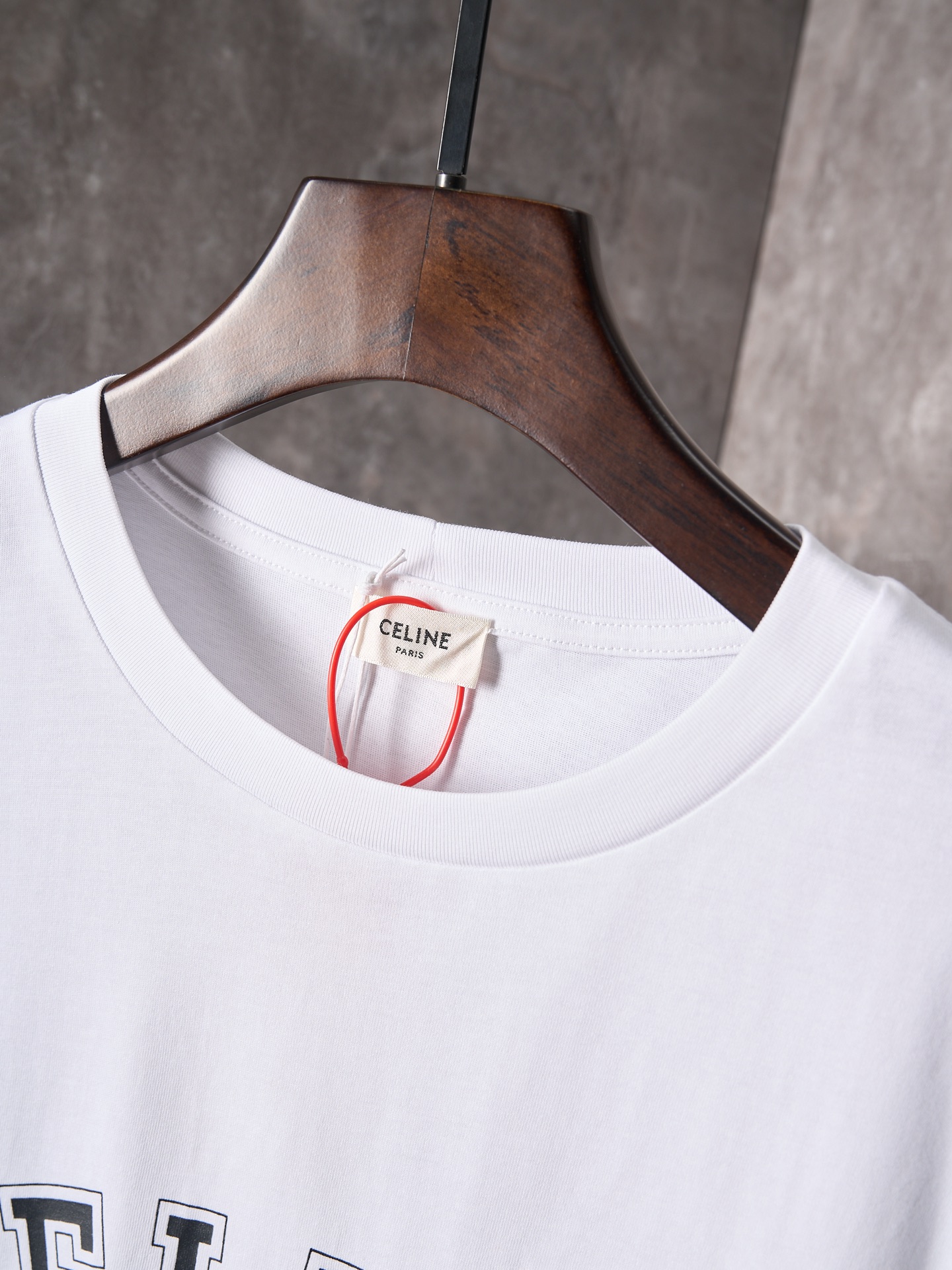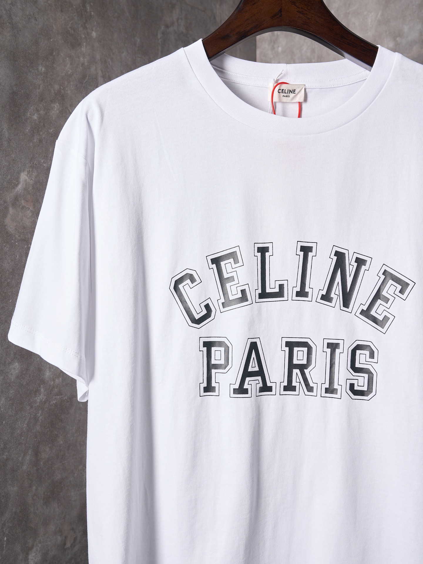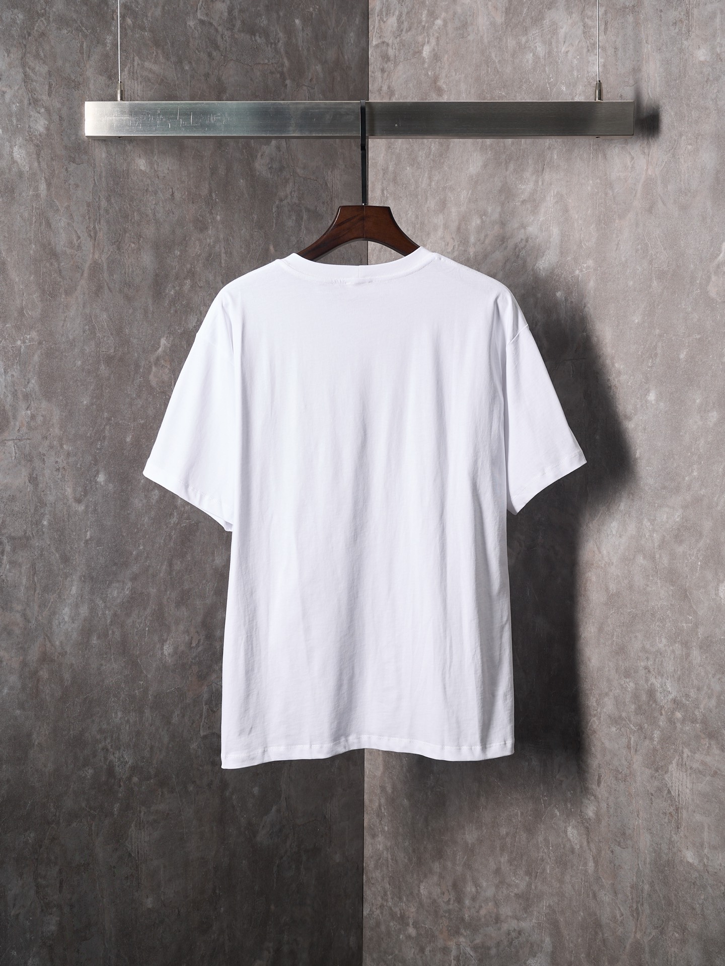 Details: Ivory-colored short-sleeved round-neck top with a logo print, featuring a loose fit