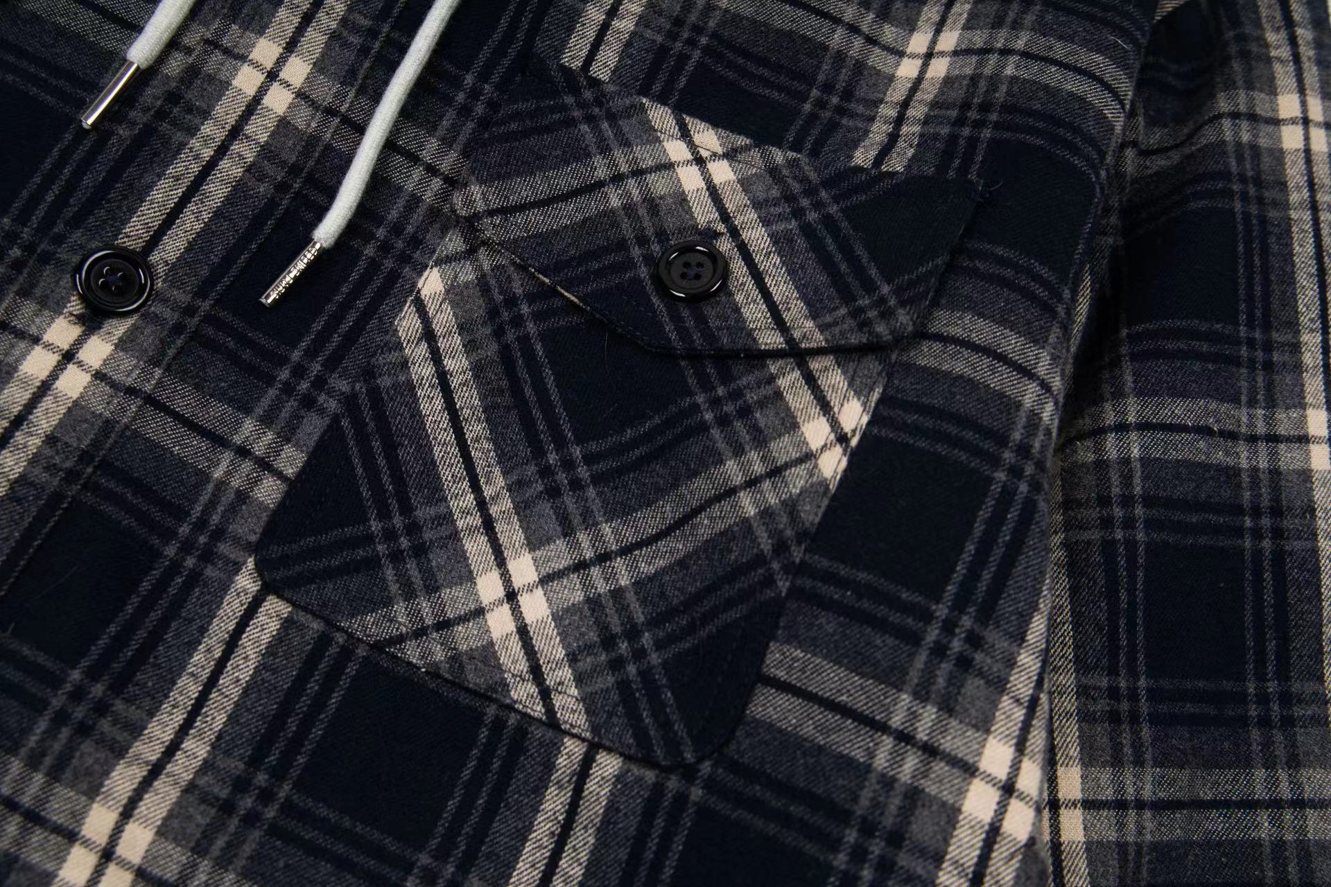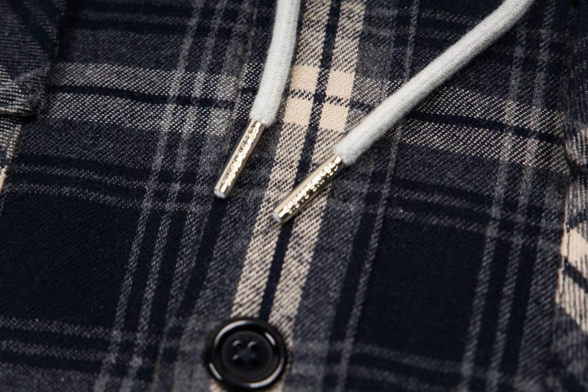 Details: Cashmere hooded coat with a plaid pattern, stylish and comfortable