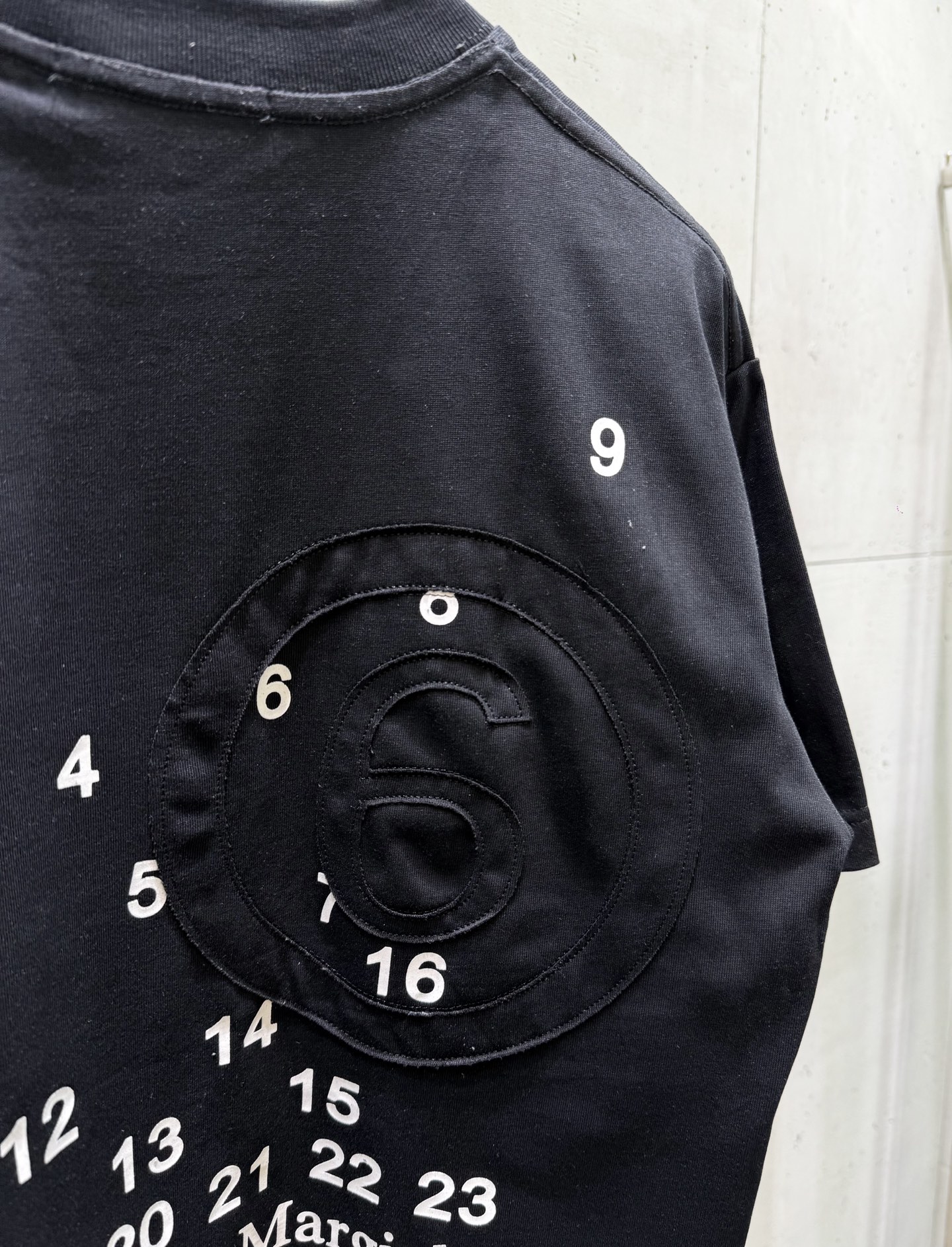 Details: Short-sleeved T-shirt with digital code printing and patchwork, 280g fabric, available in black or white