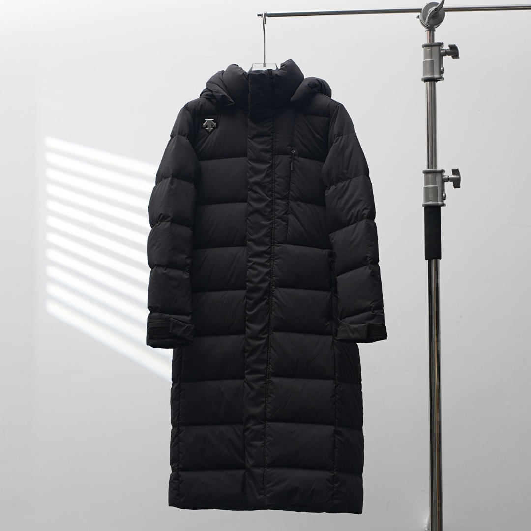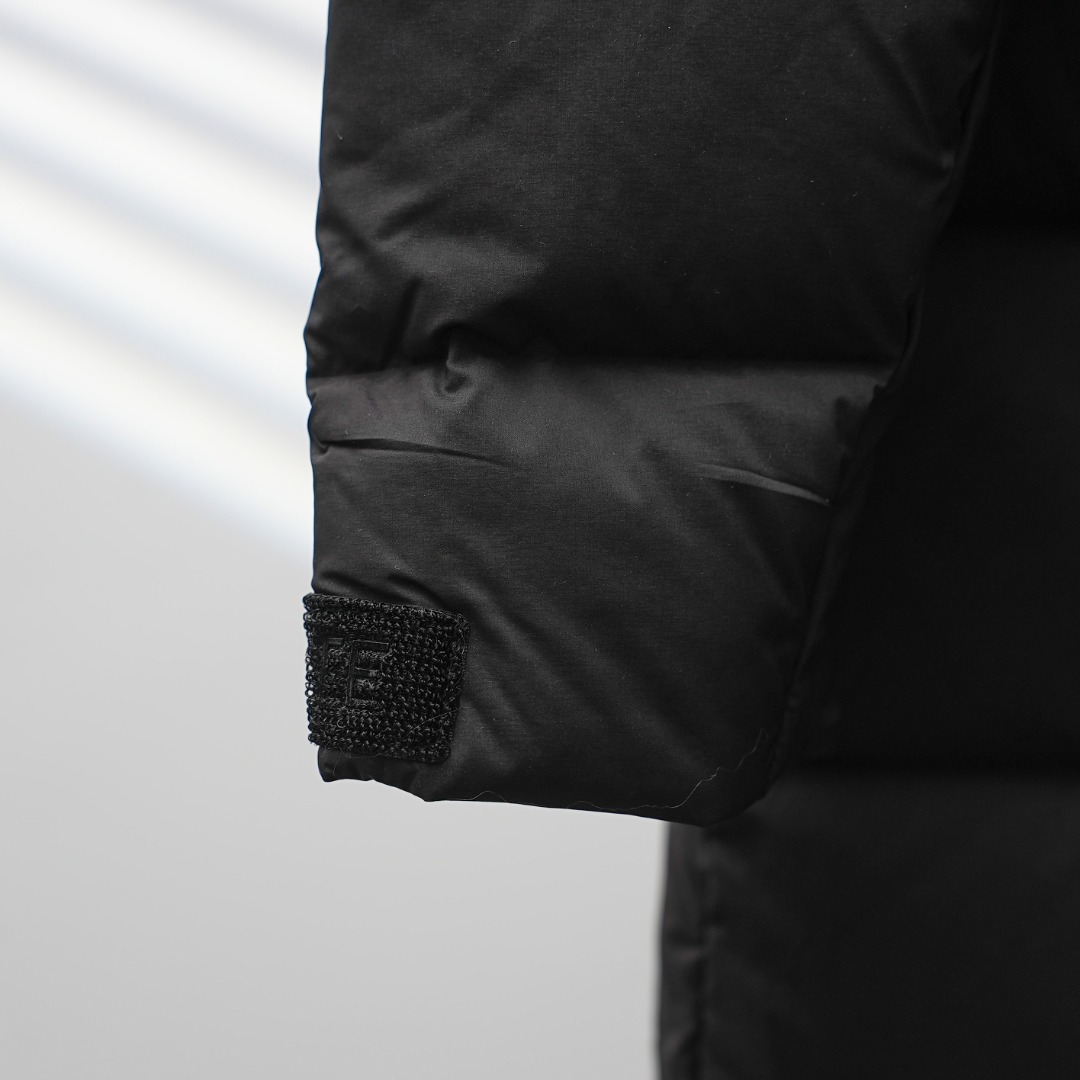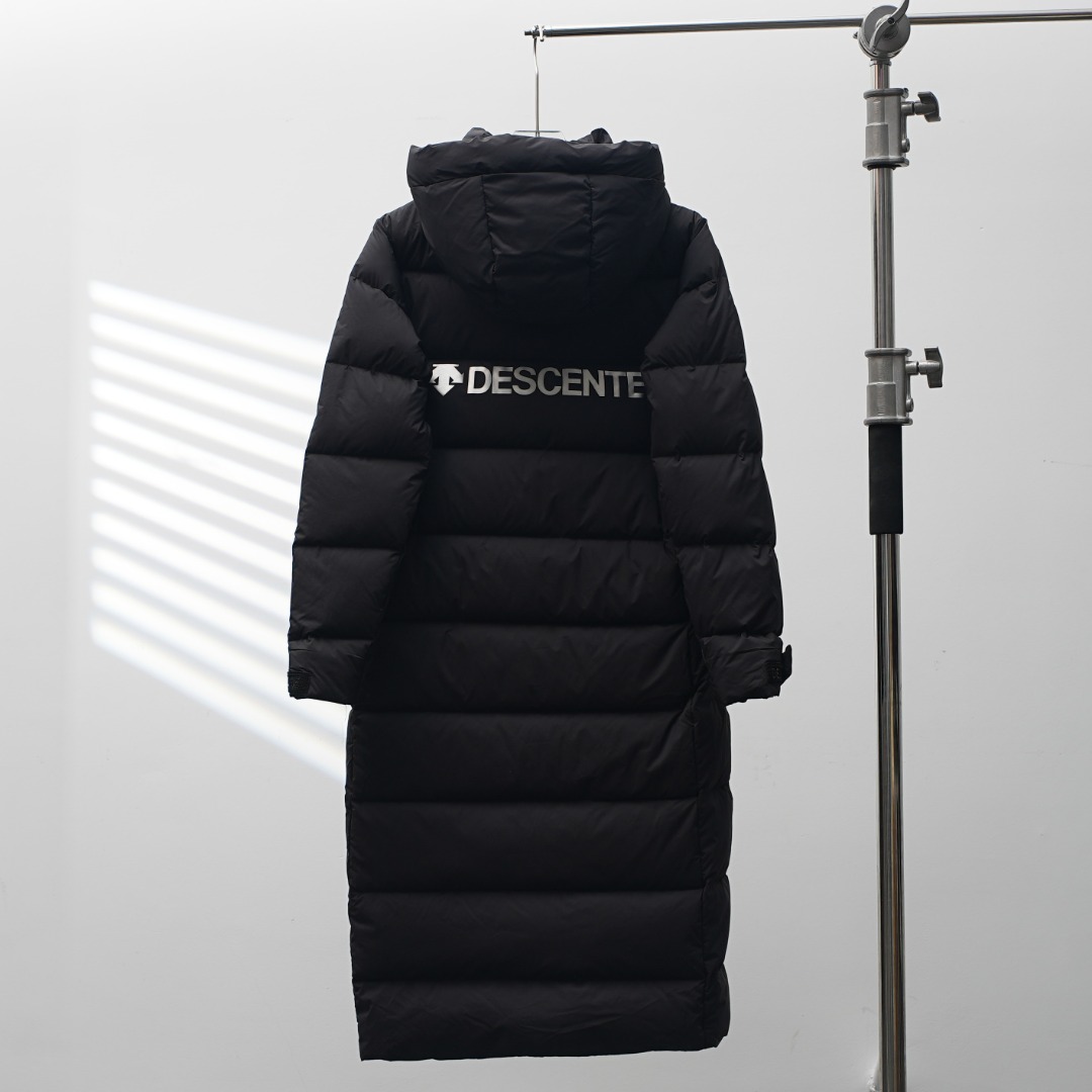 Details: Factory-direct Long Hooded Down Jacket with Shoulder Logo, Black