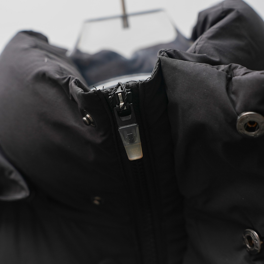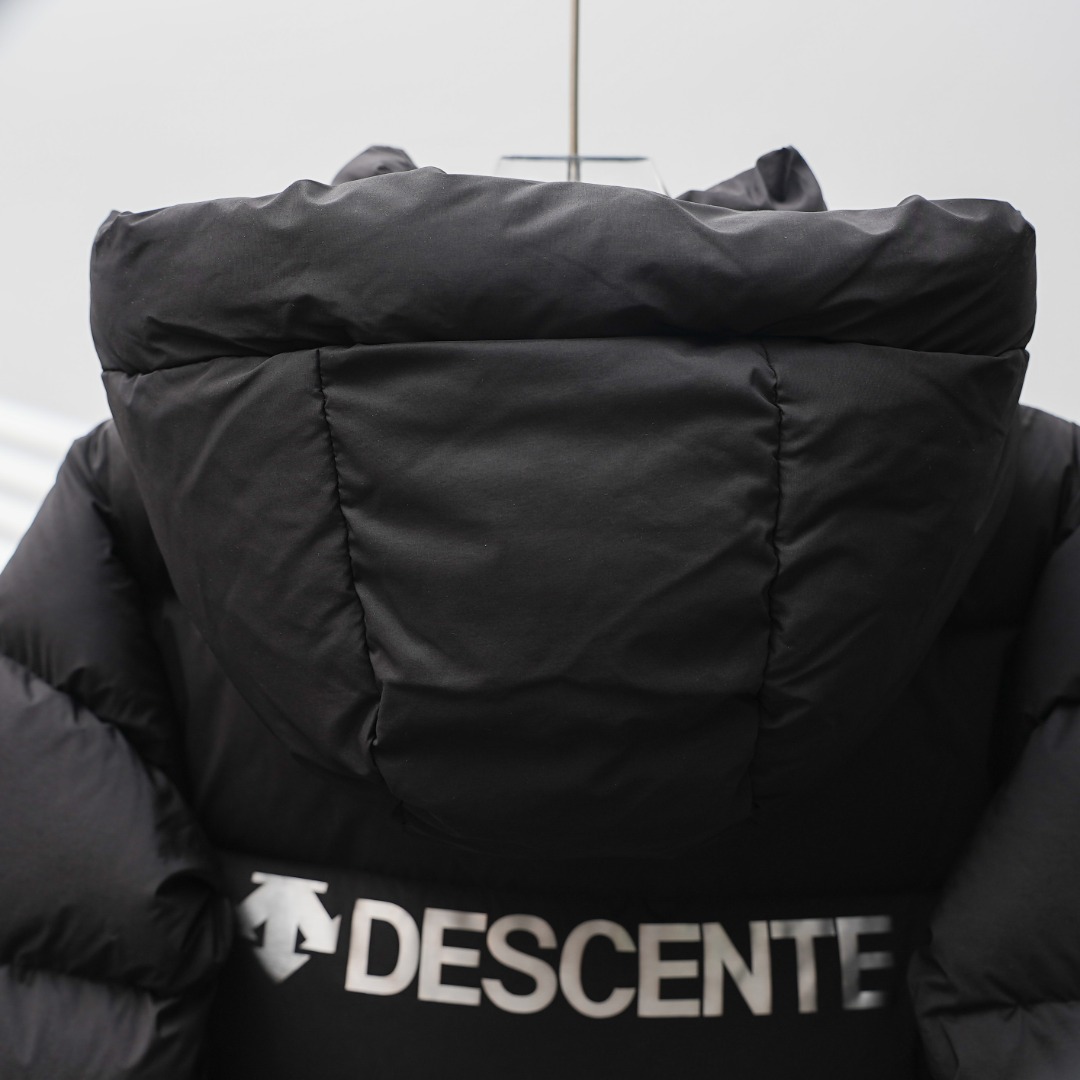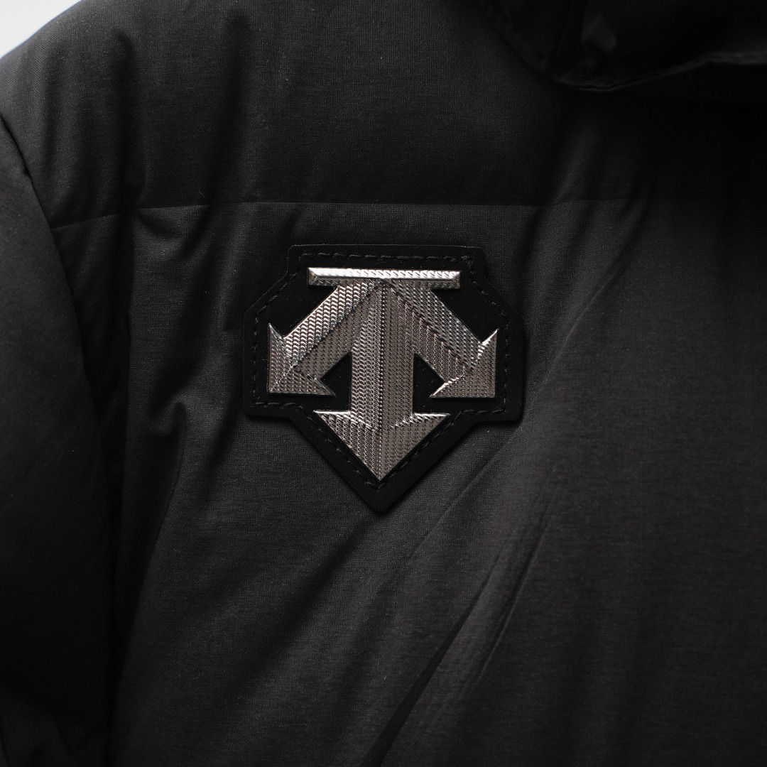 Details: Factory-direct Long Hooded Down Jacket with Shoulder Logo, Black