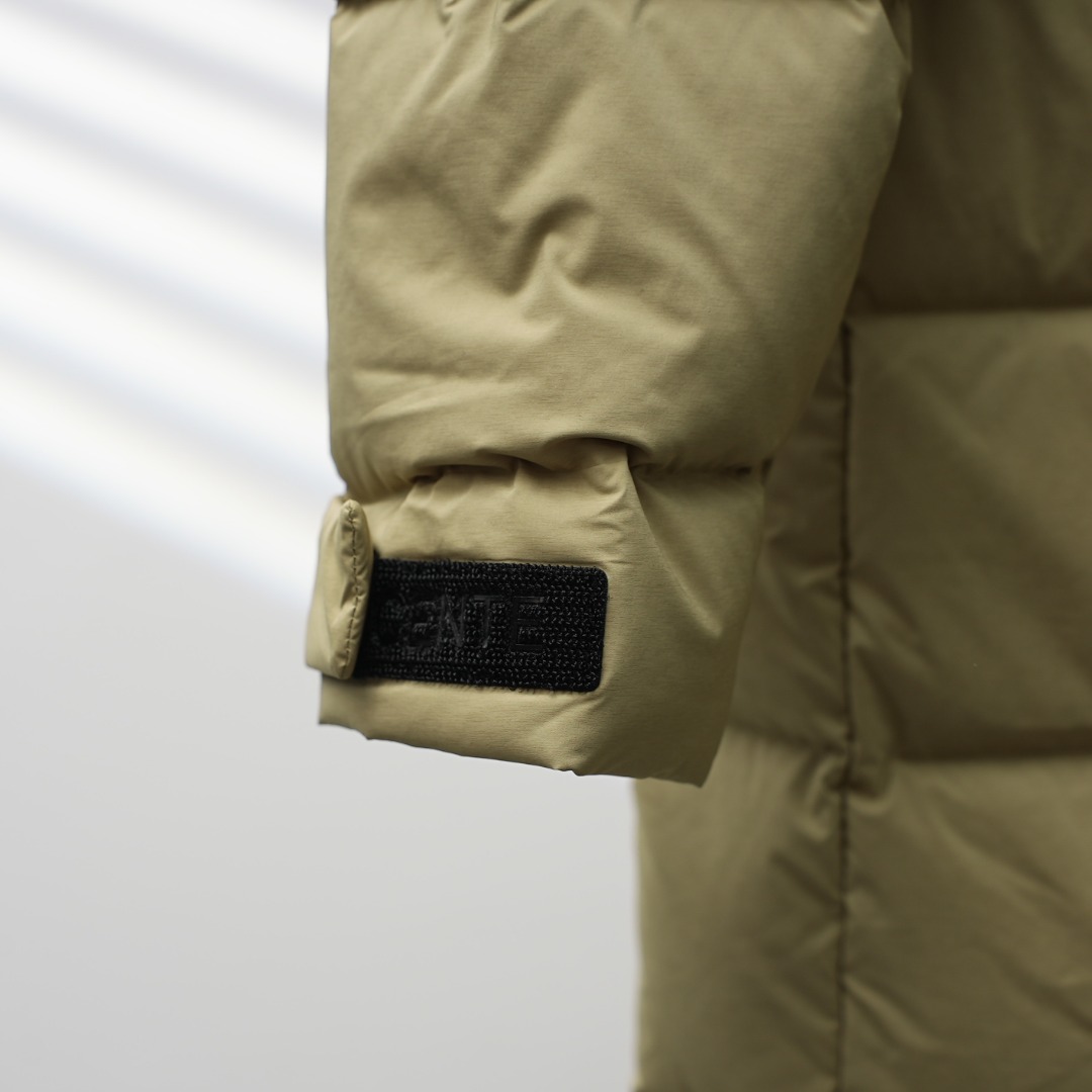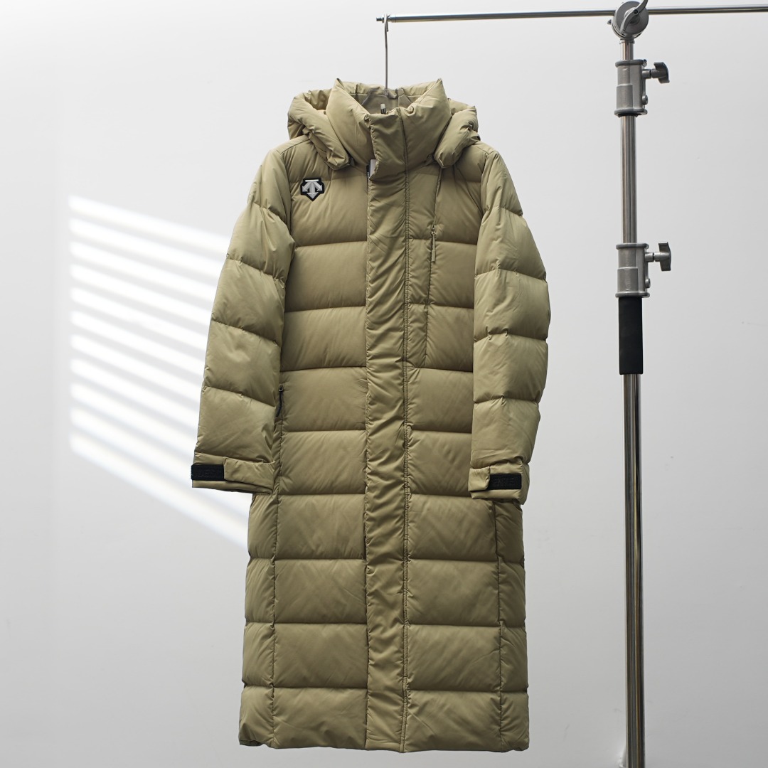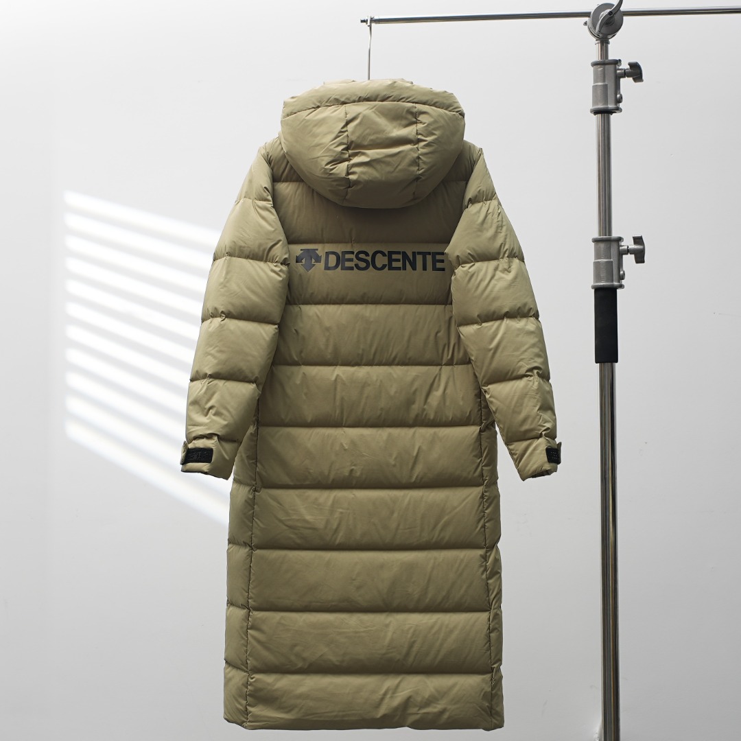 Details: Factory-direct Long Hooded Down Jacket with Shoulder Logo, Khaki