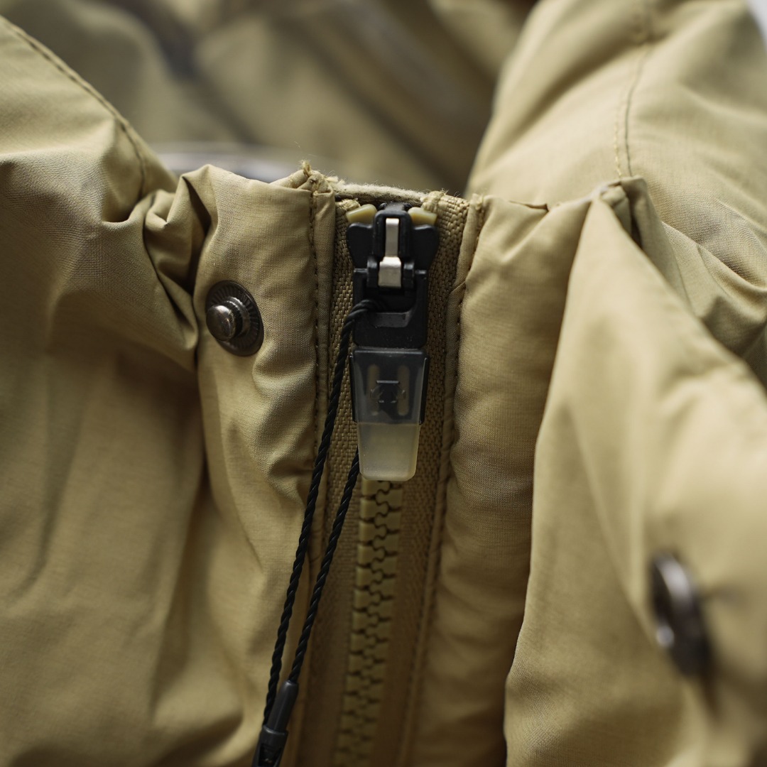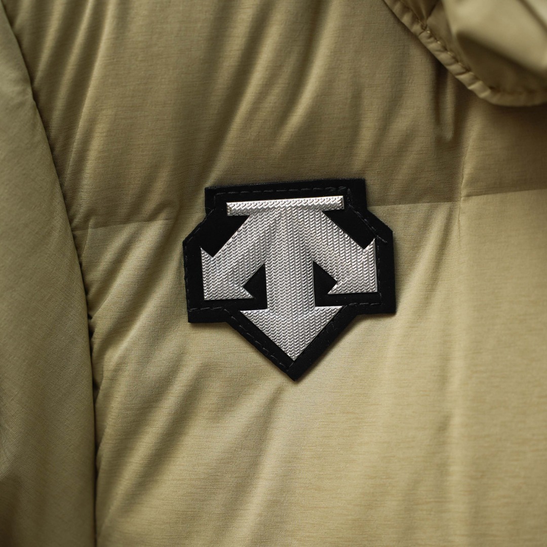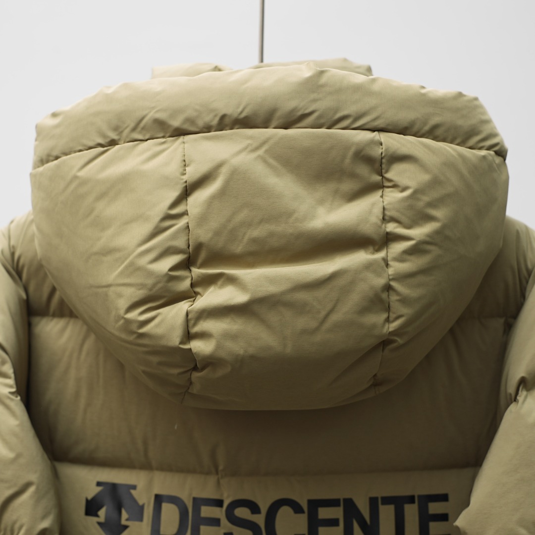 Details: Factory-direct Long Hooded Down Jacket with Shoulder Logo, Khaki