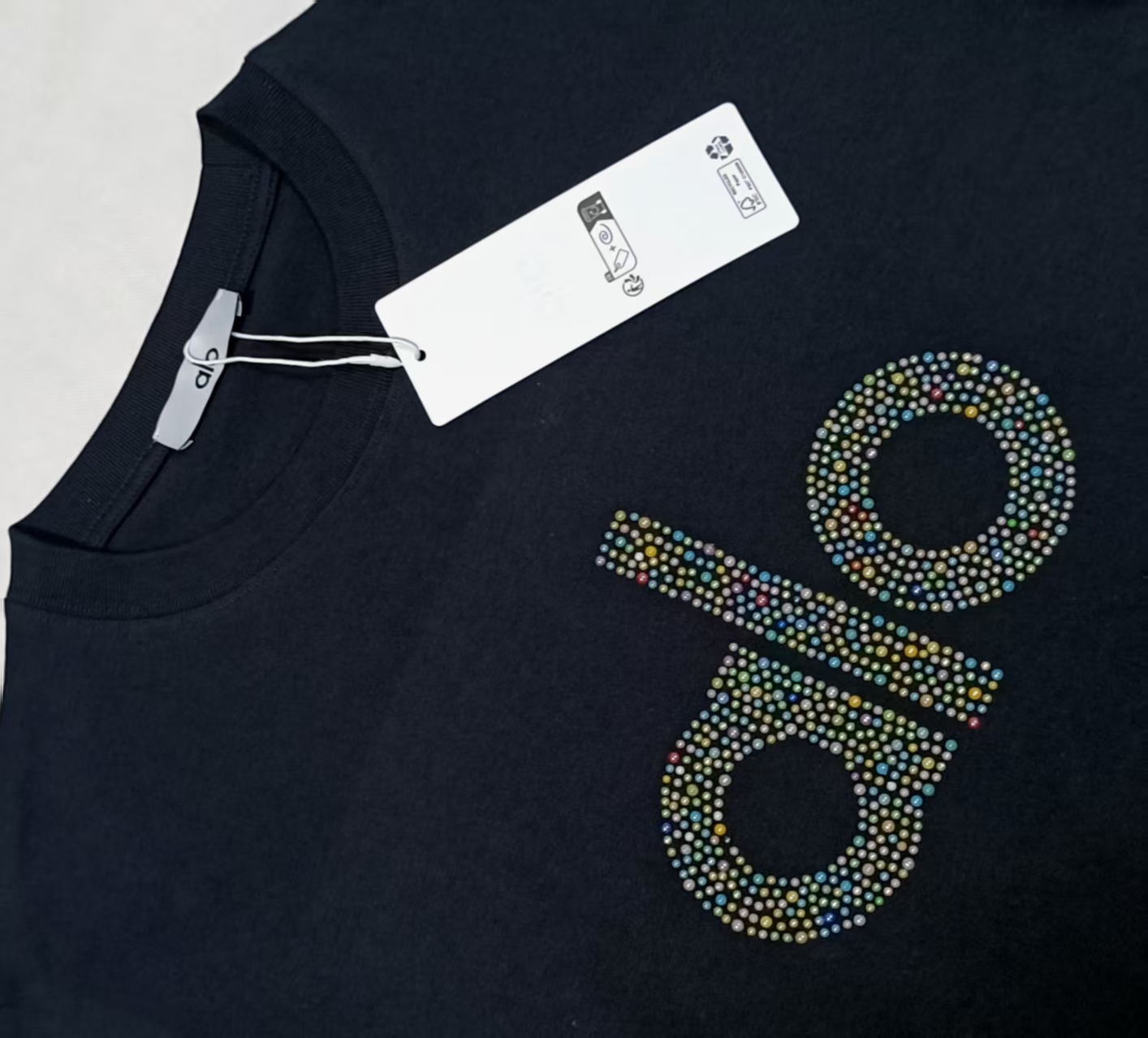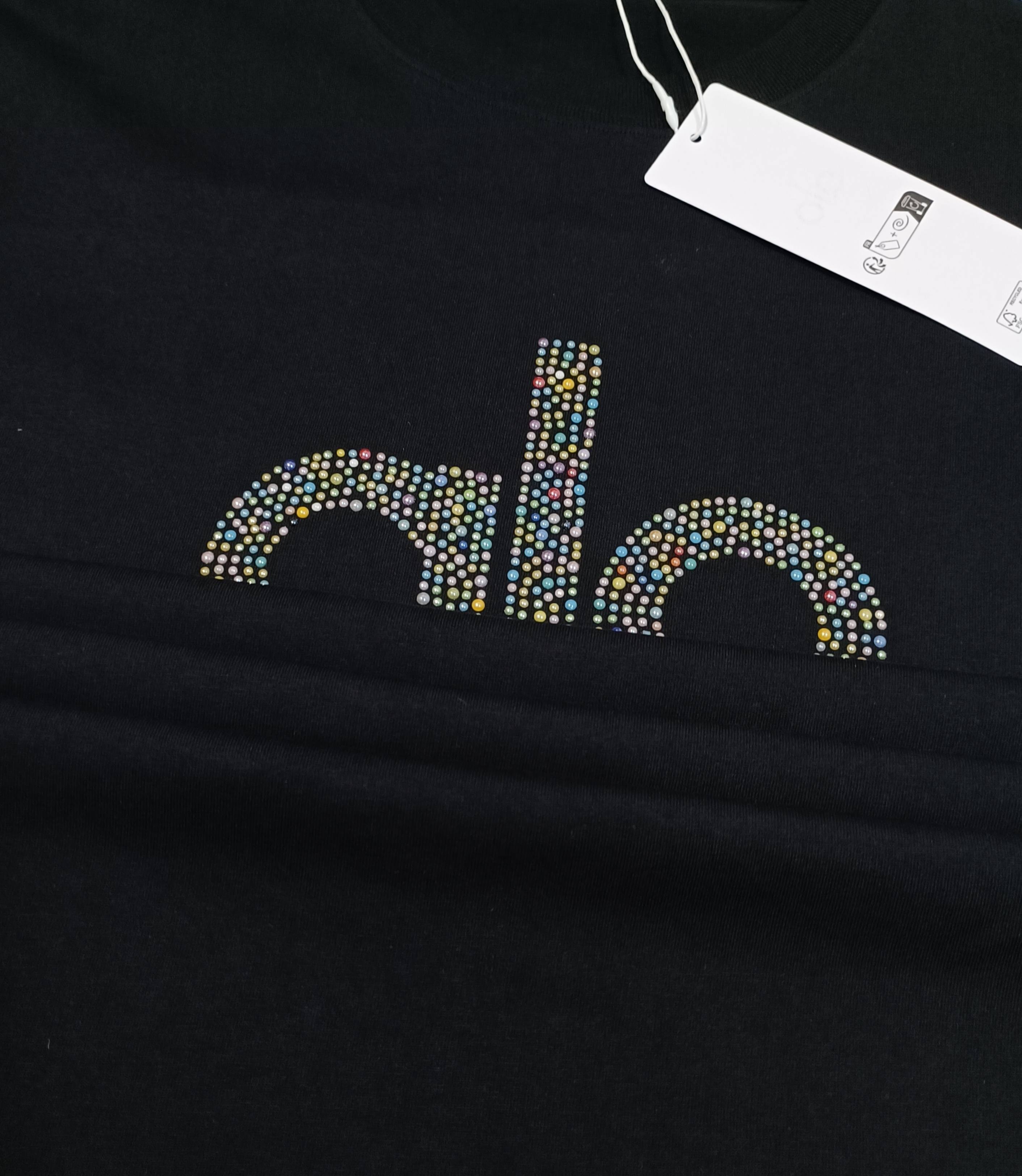 Details: Simple and fashionable 32-count double yarn cotton T-shirt with rhinestone