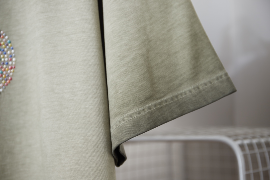 Details: Heavy-washed cotton short-sleeve T-shirt with bead embellishments, available in multiple colors, suitable for both men and women