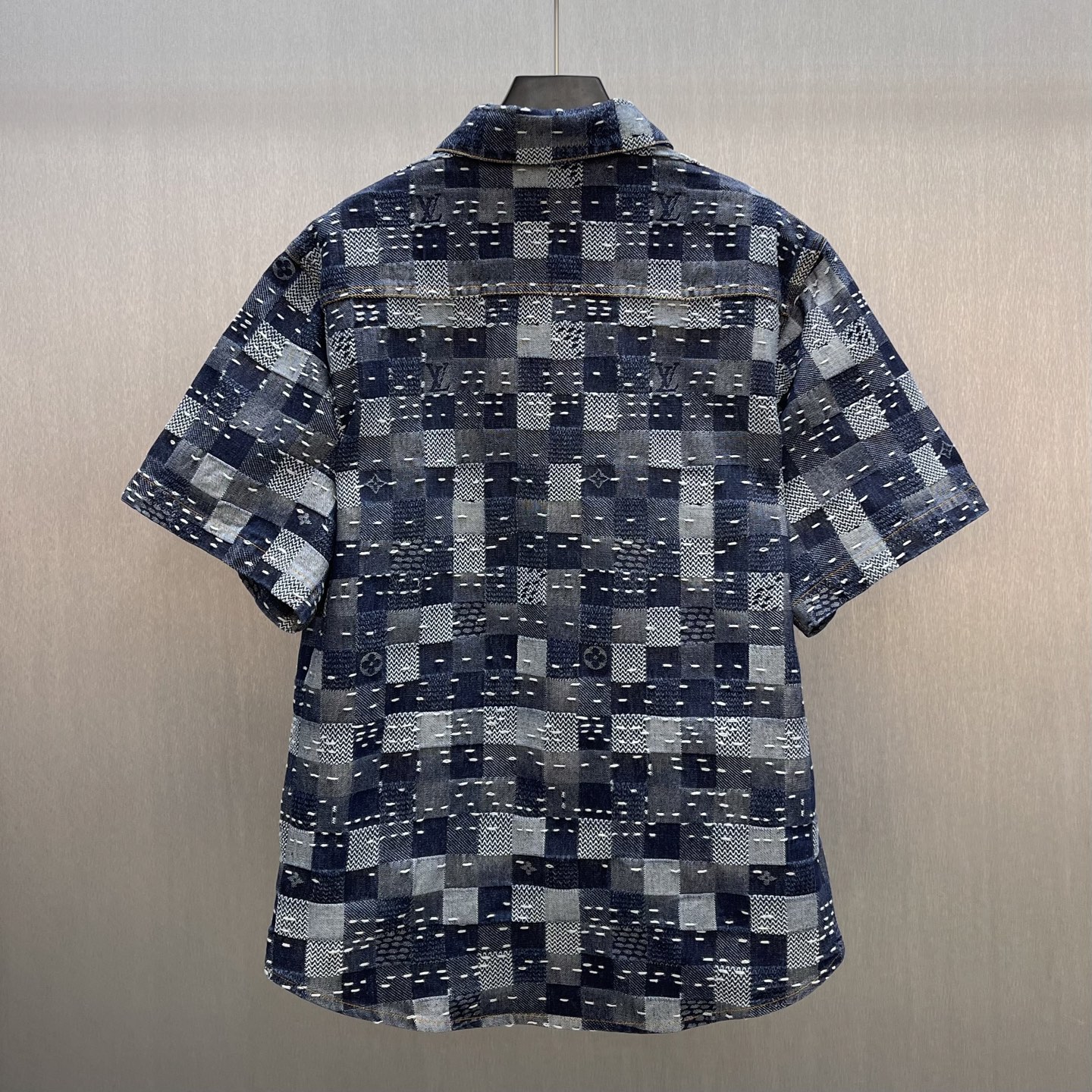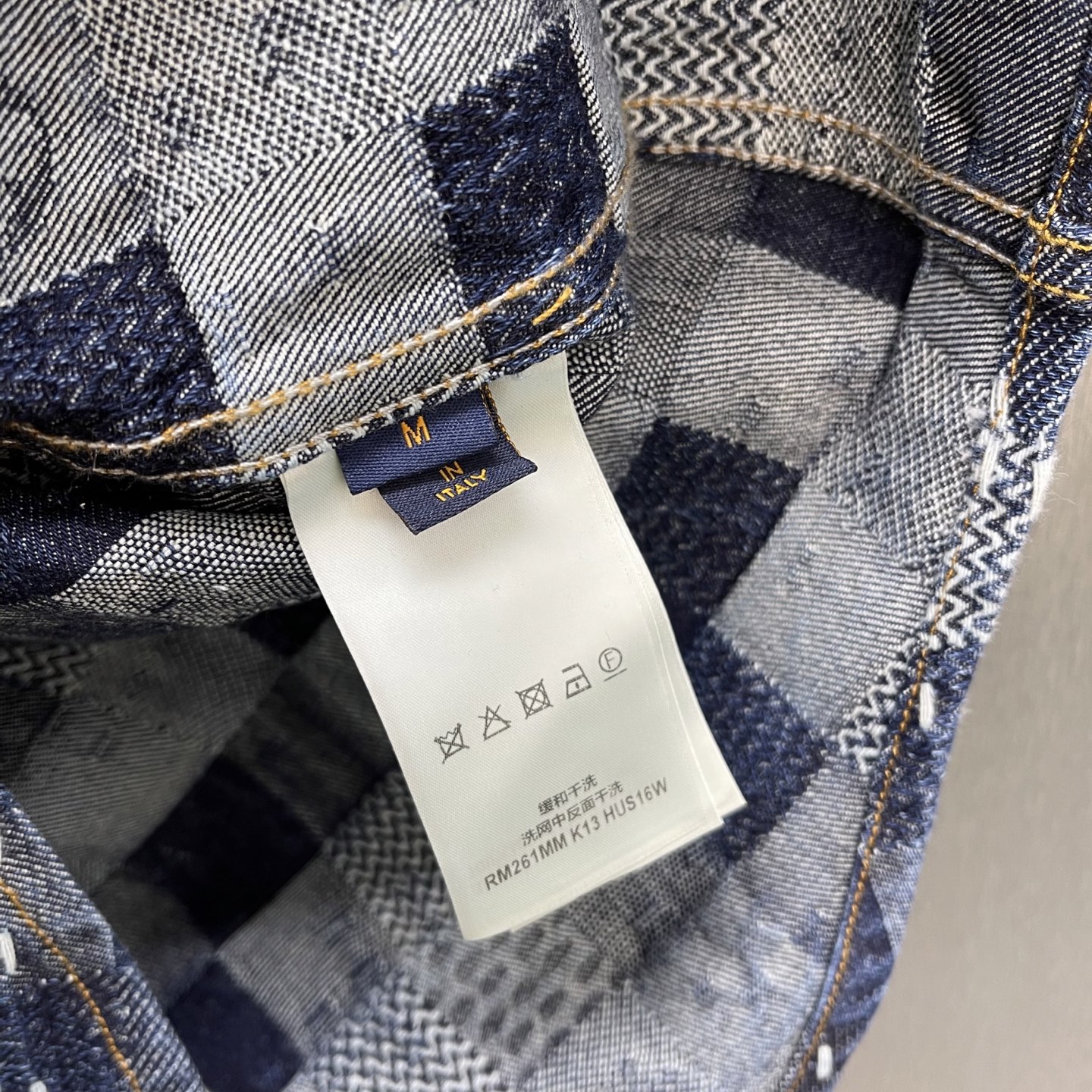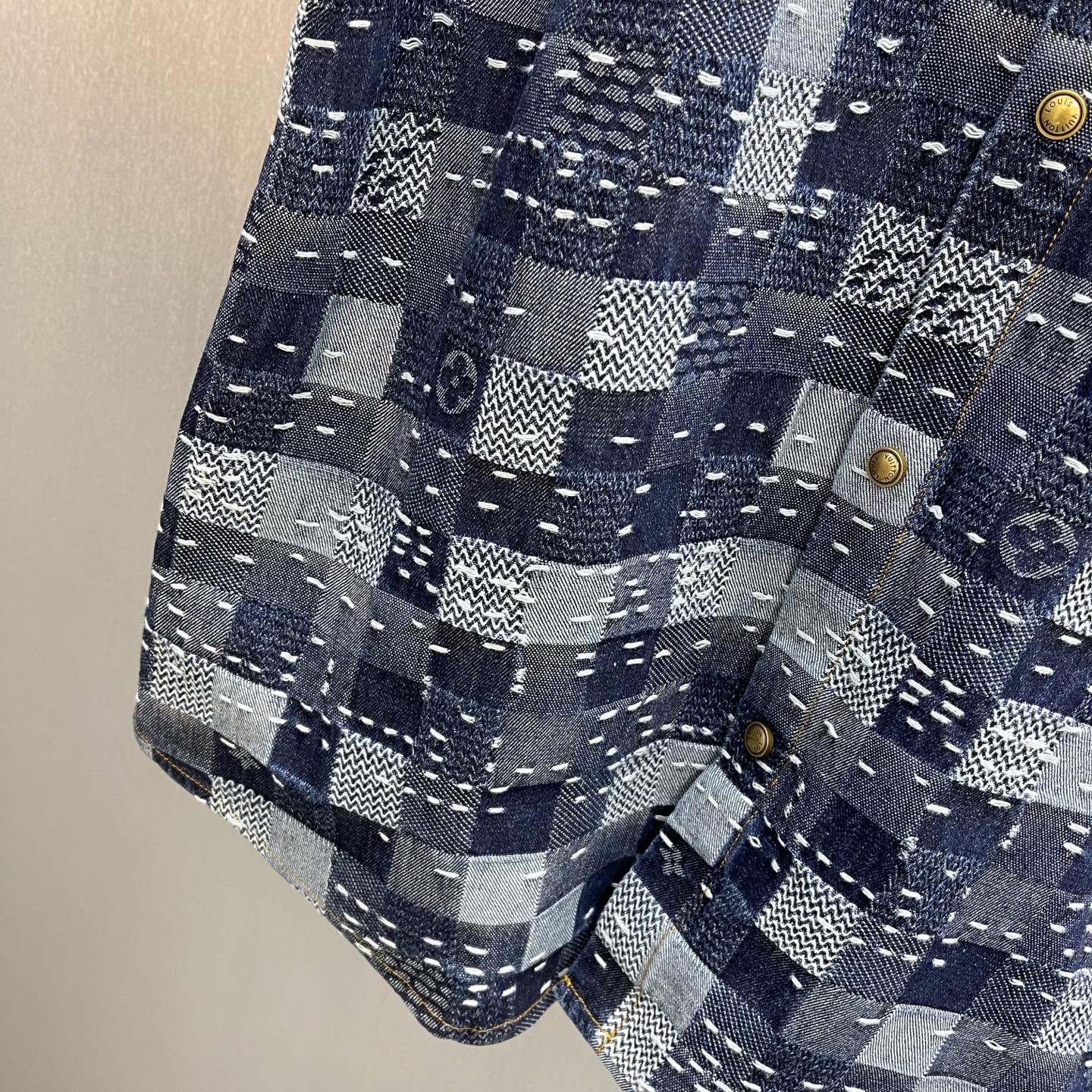 Details: Denim shirt with a Damier pattern from a collaborative collection