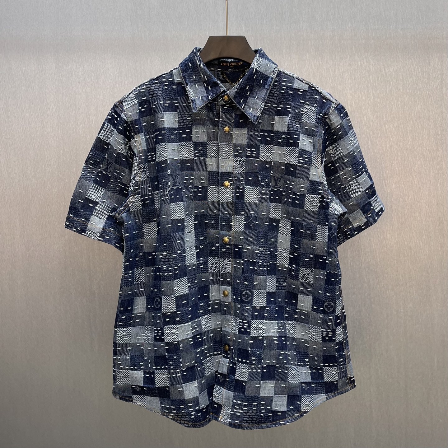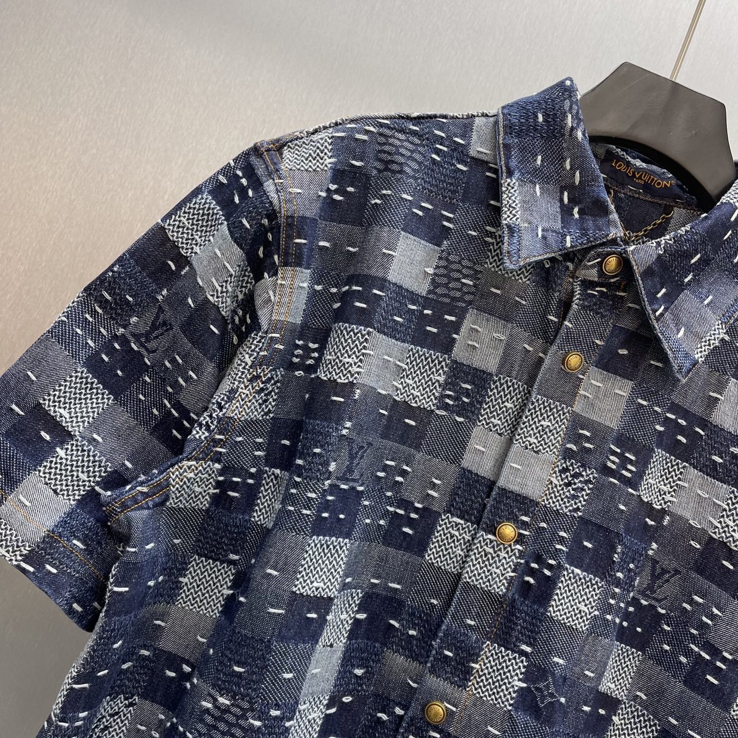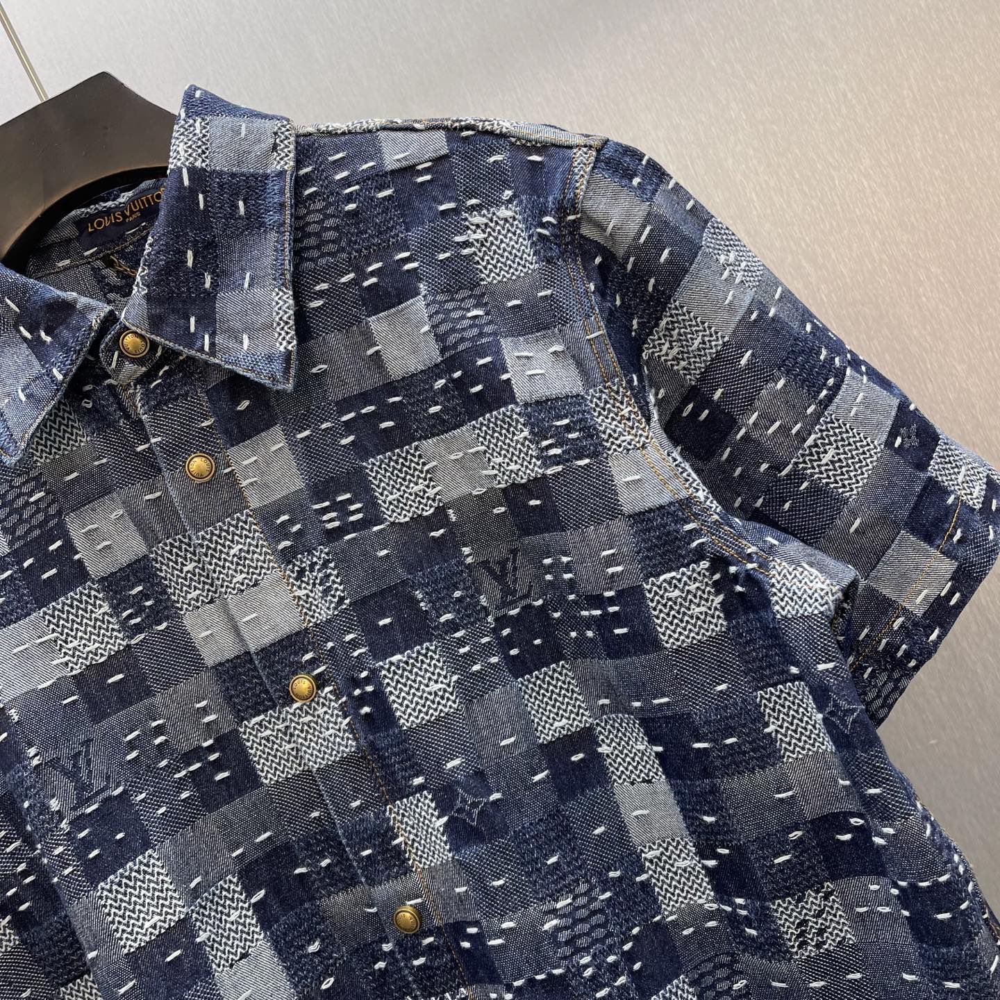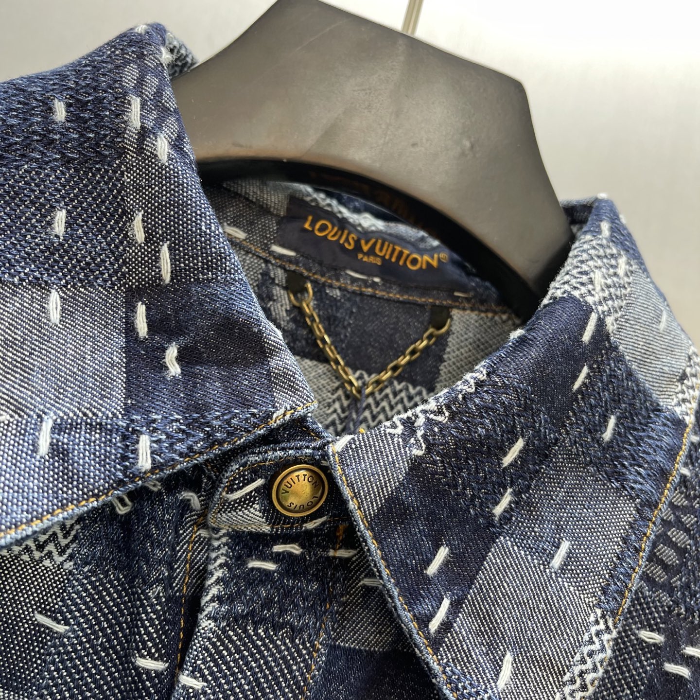 Details: Denim shirt with a Damier pattern from a collaborative collection