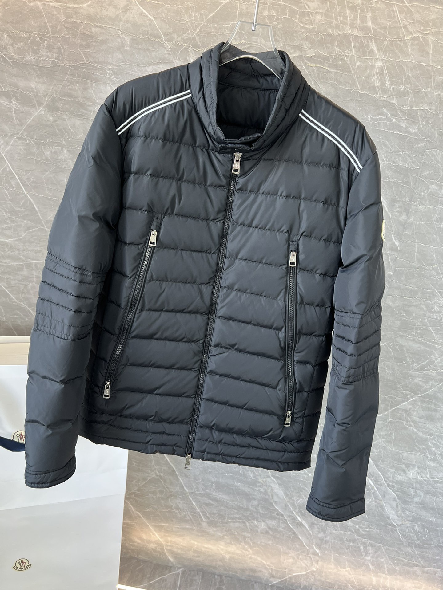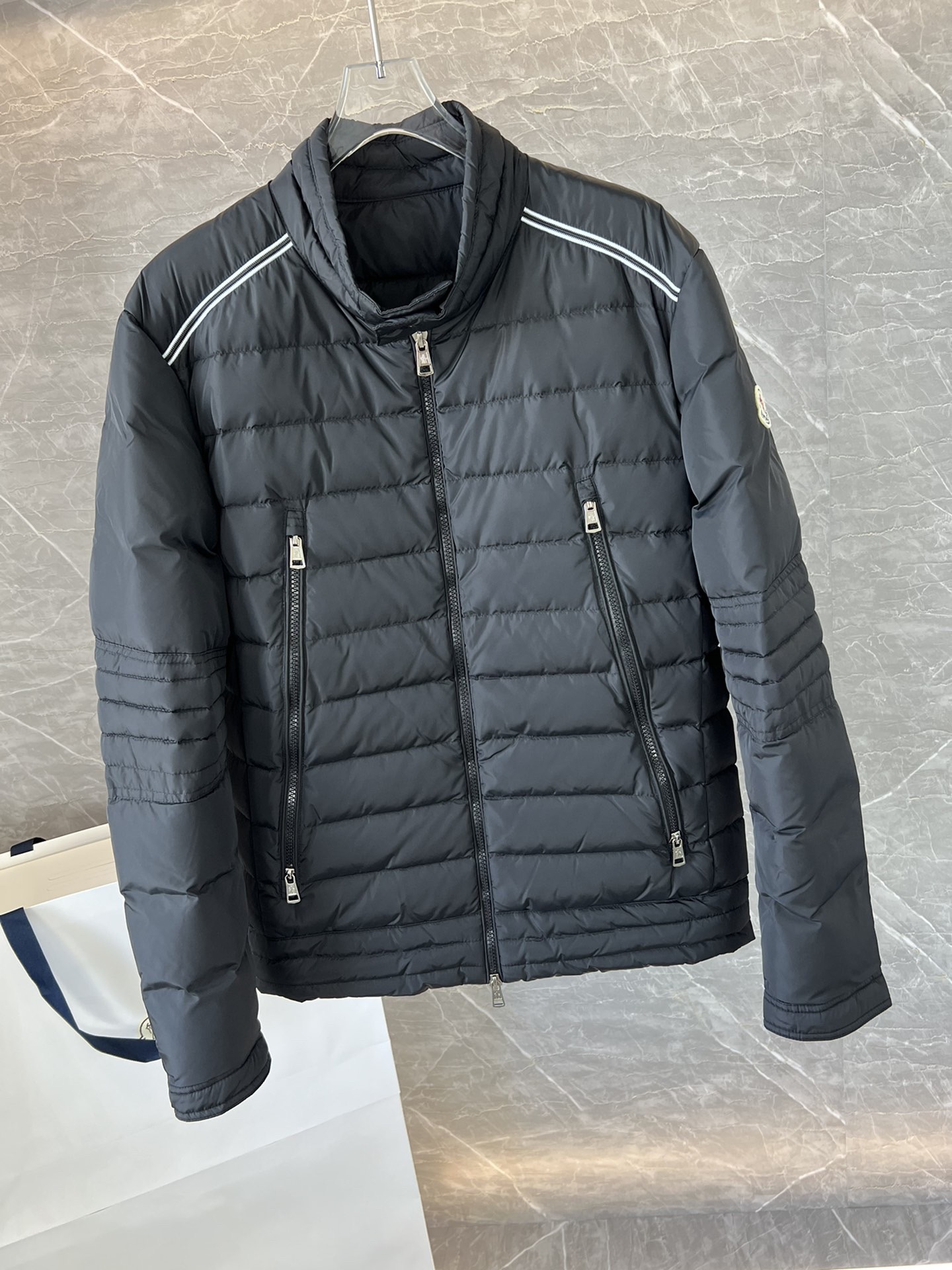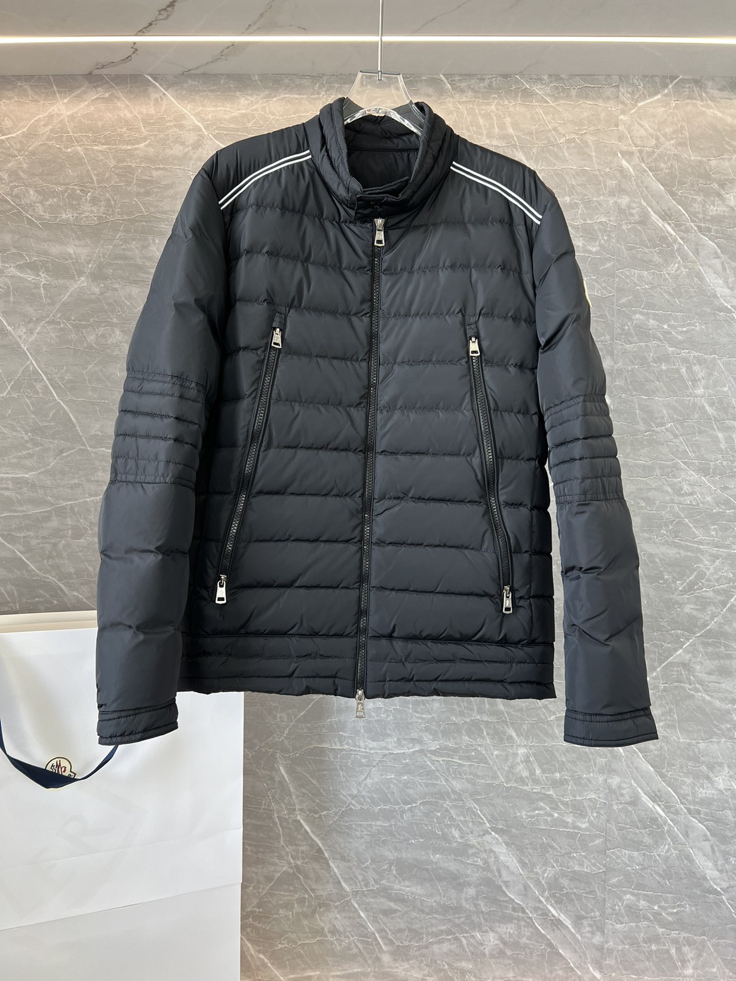 Details: Fashionable and warm down jacket made of imported fabric, filled with 90% white duck down.