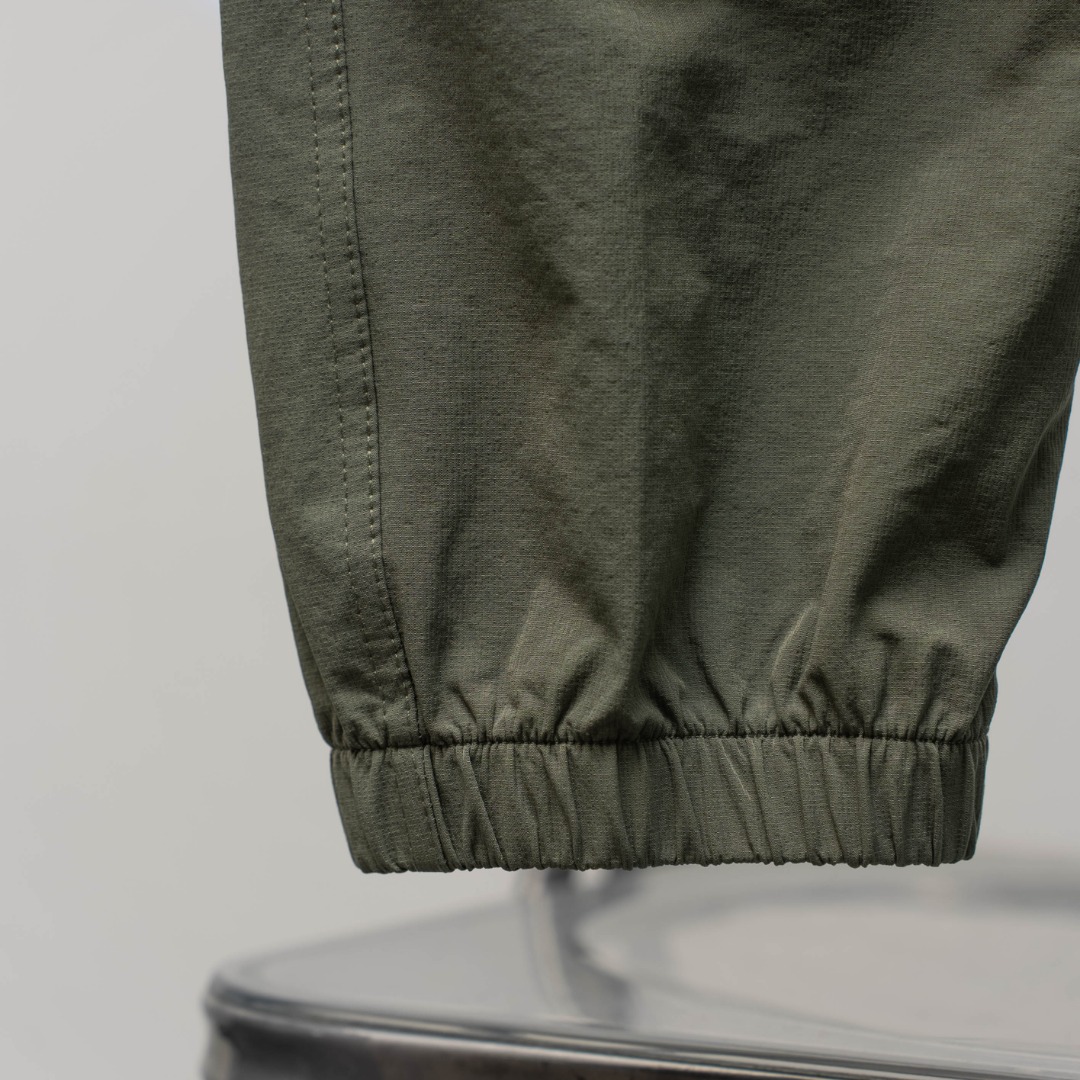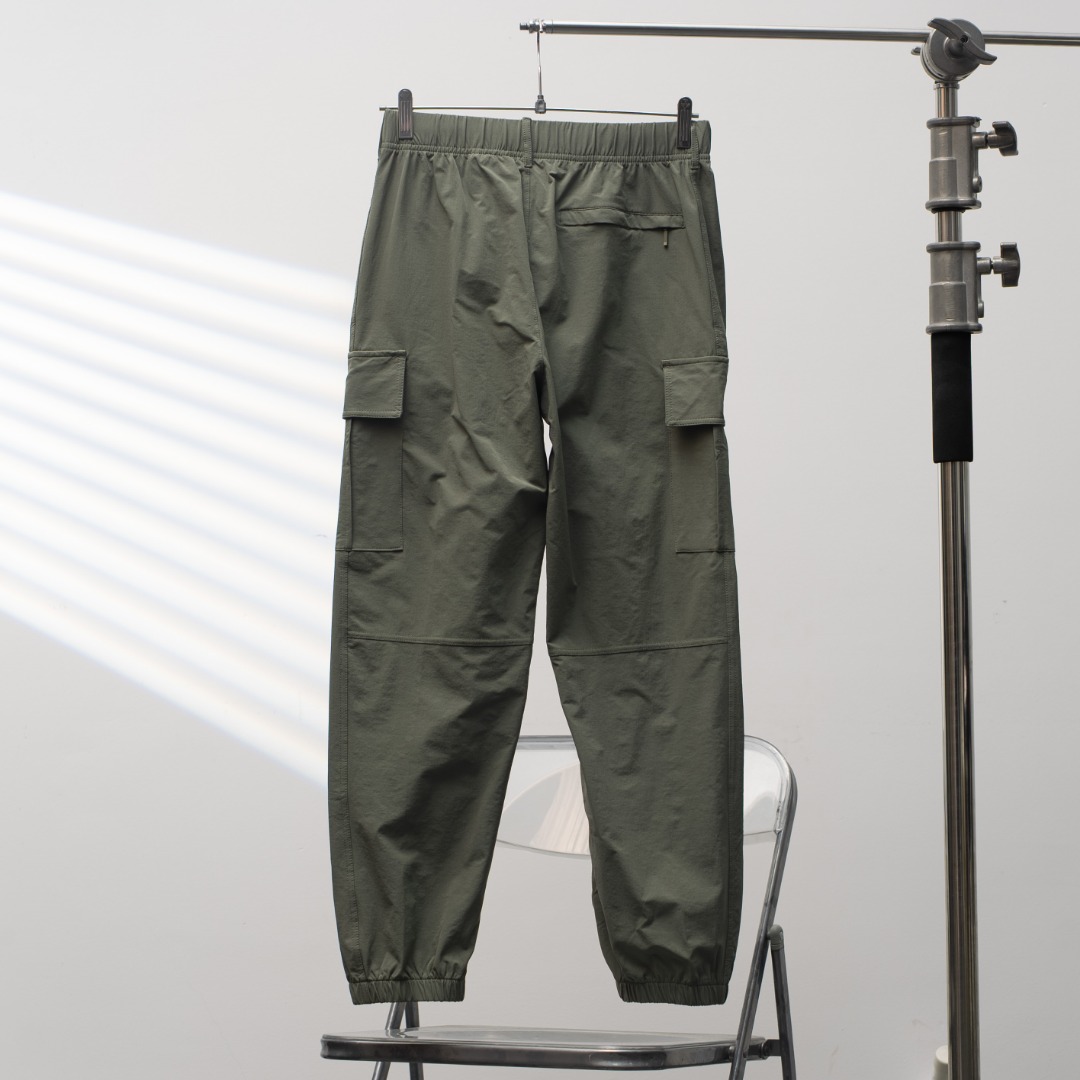 Details: Factory-direct cargo pants with an elastic waistband, available in army green.