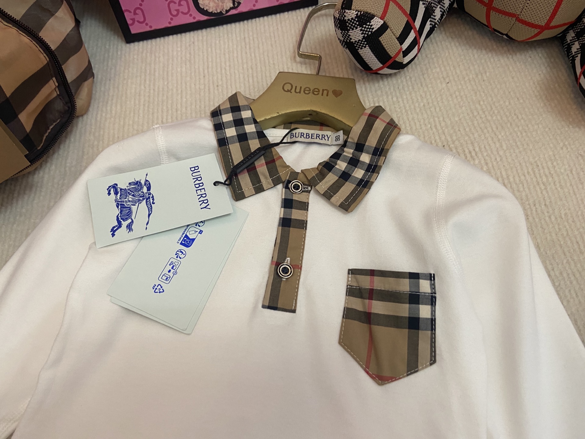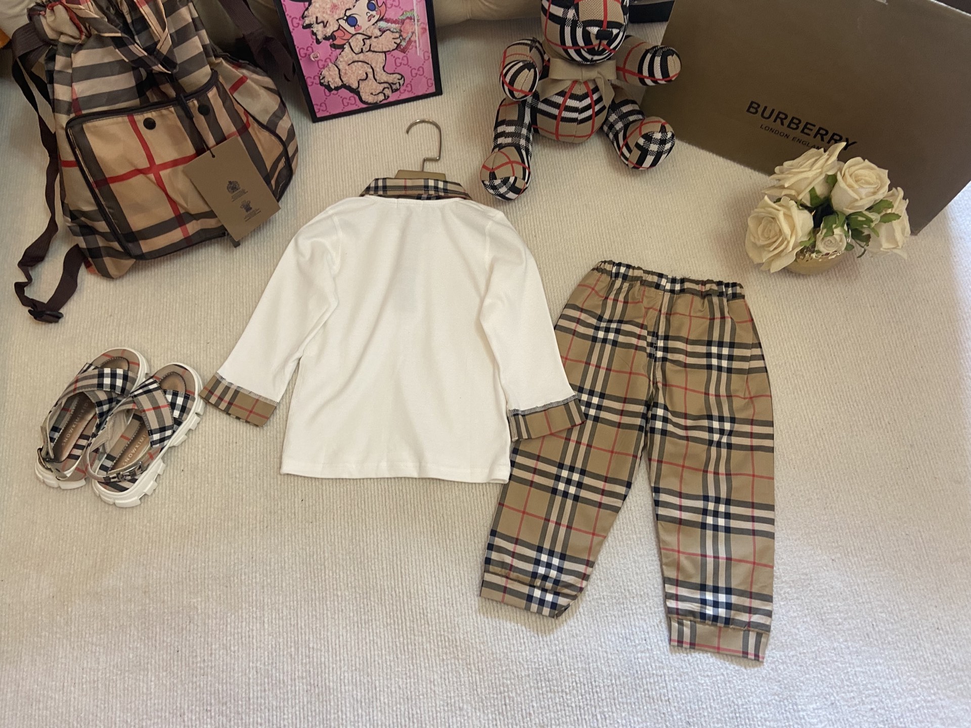 Details: Burberry Kids Suit with Long - sleeve Polo Top and Trousers, Class A Cotton