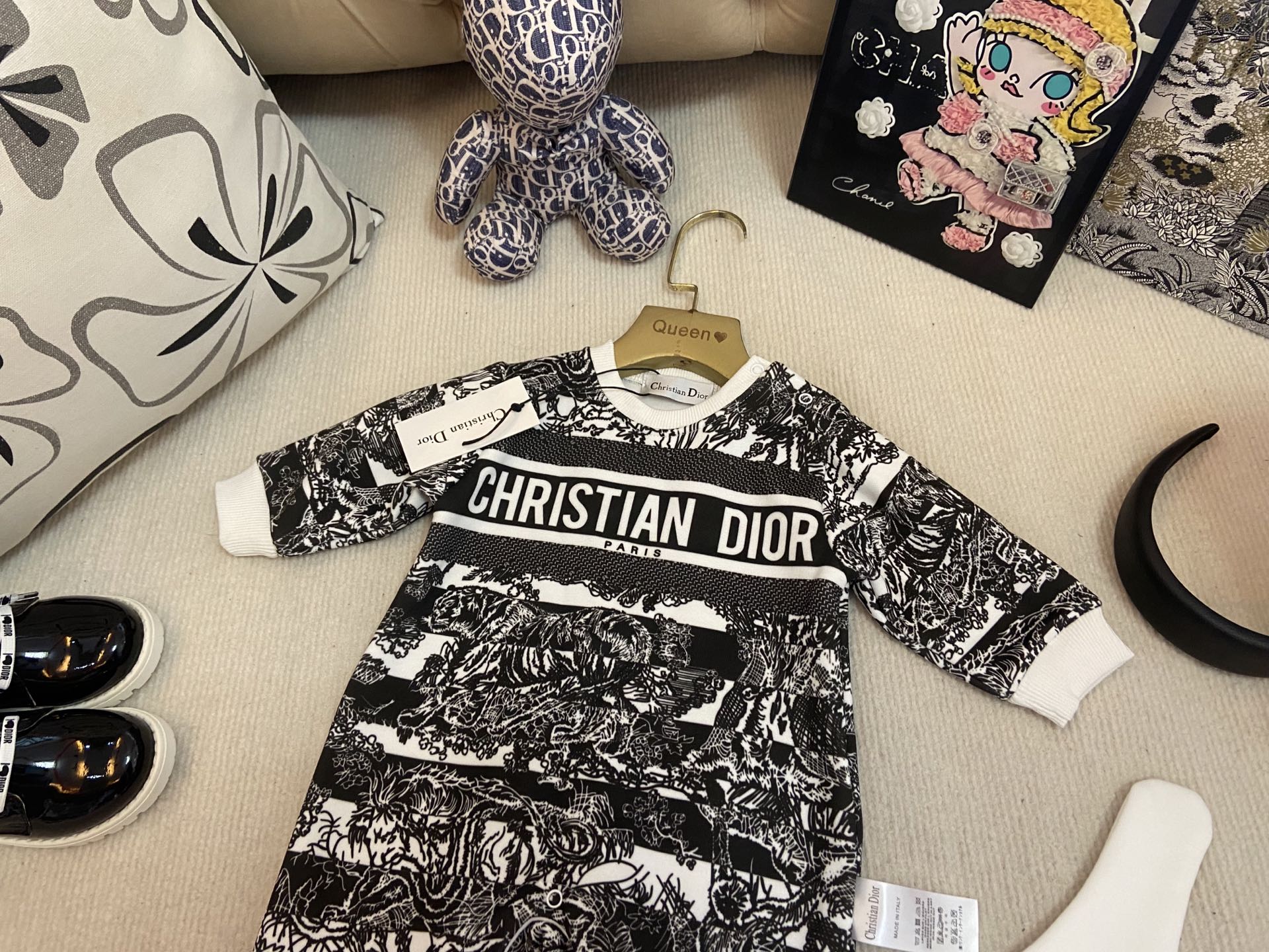 Details: Dior Kids Romper Set, Full of Printed Letters, Inner Lined with Fleece