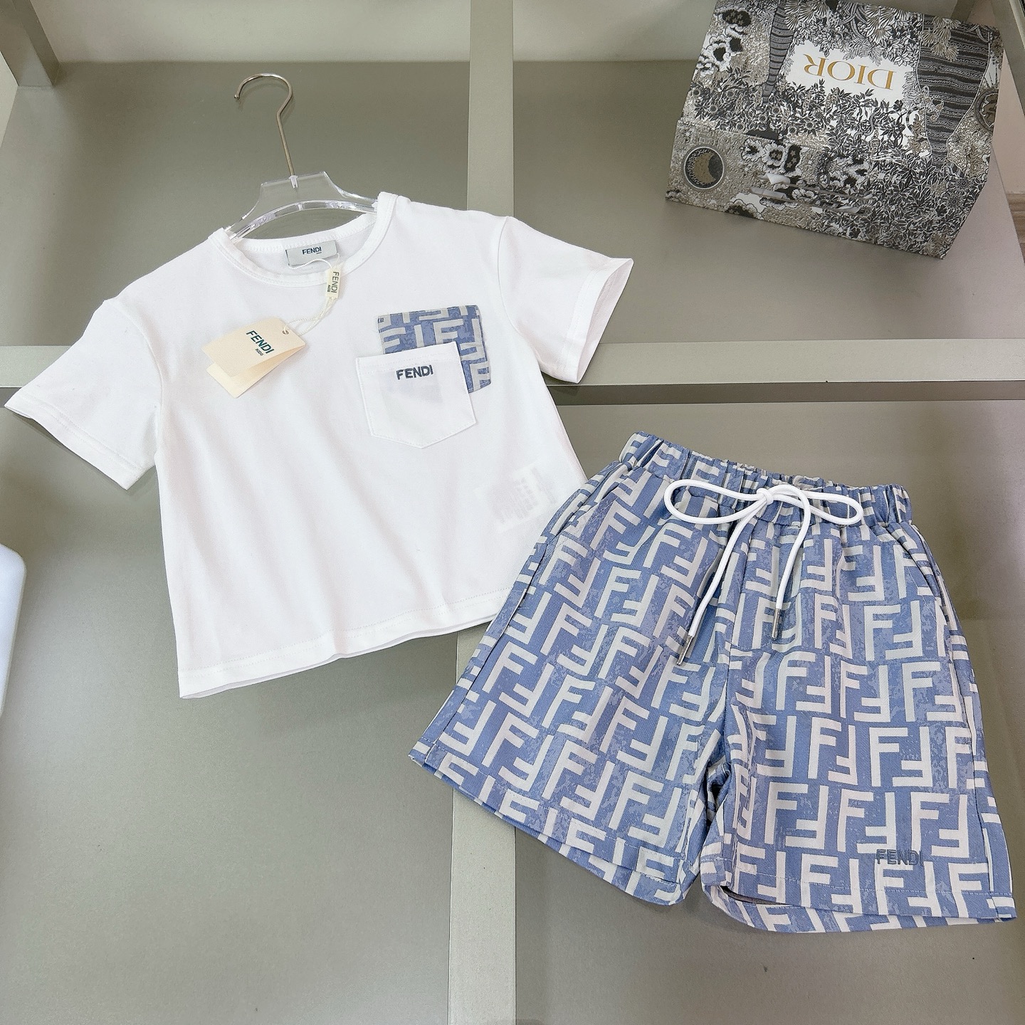Details: Fendi High-end Childrens Wear Set, Zhu Di Fabric, Breathable, Elastic and Comfortable
